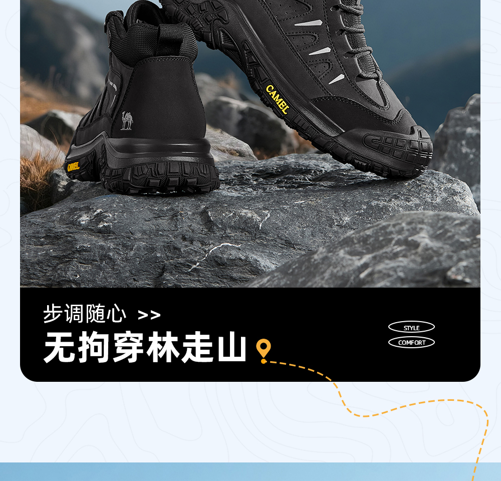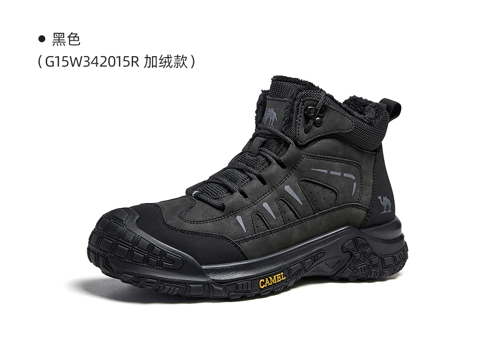 Camel Men's Shoes 2025 Winter New High-Top Fleece-Lined Non-Slip Waterproof Hiking Shoes Thick-Soled Height-Increasing Wear-Resistant Trekking Shoes