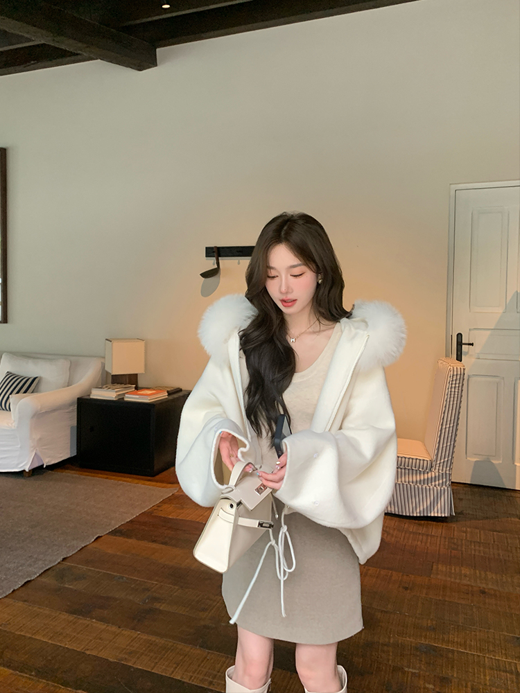 连帽设计 有点小斗篷的感觉 上身慵懒感满满