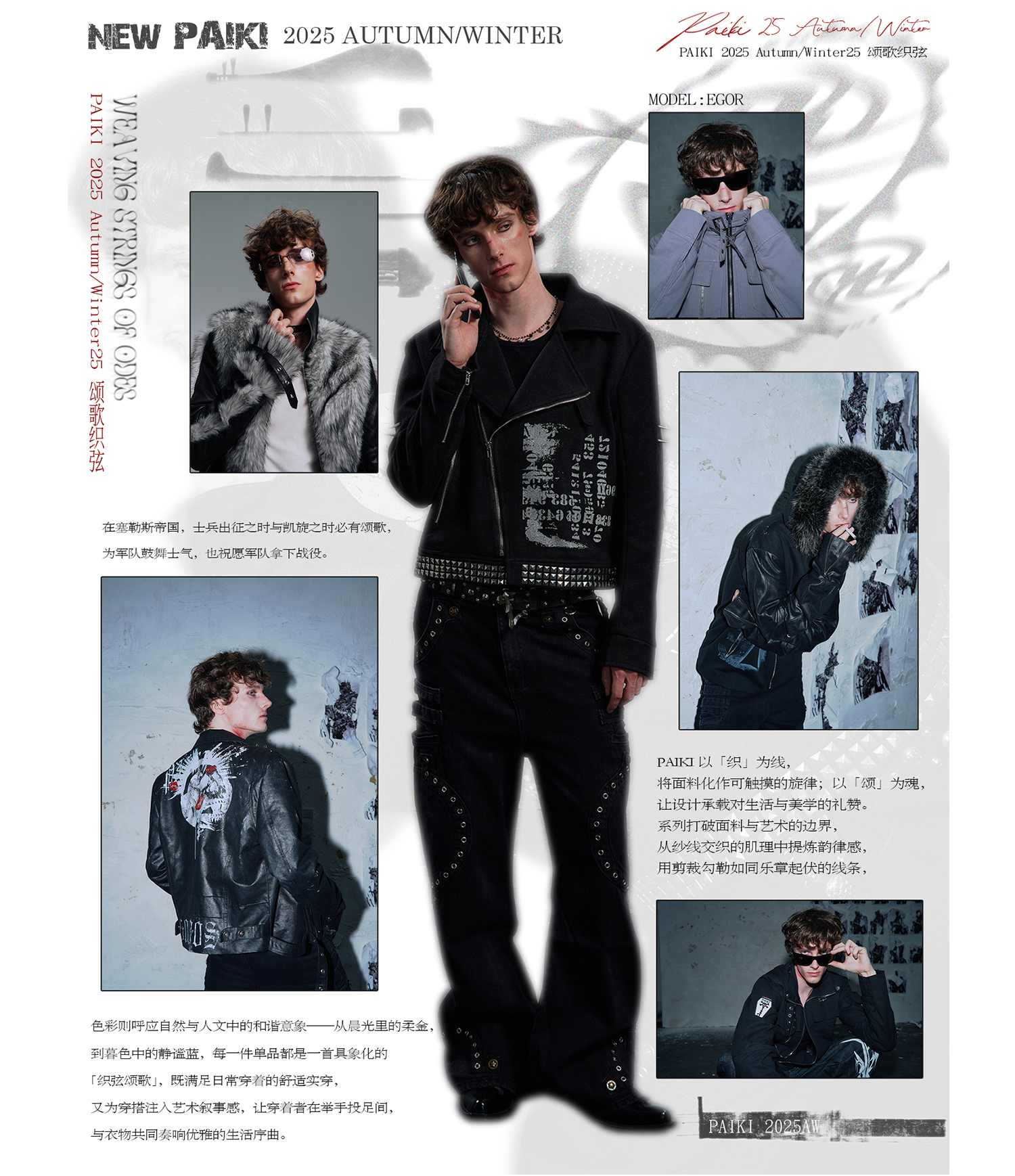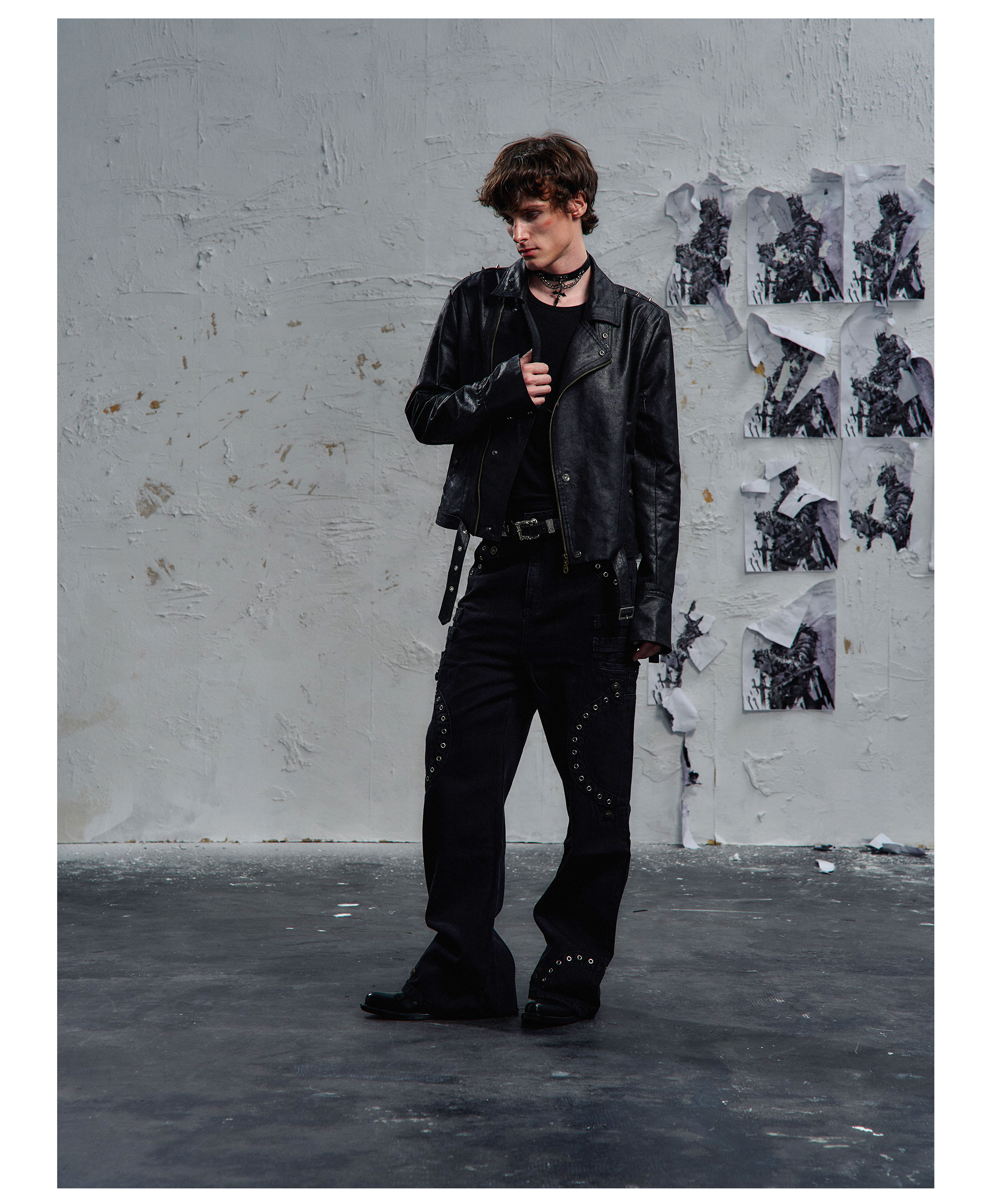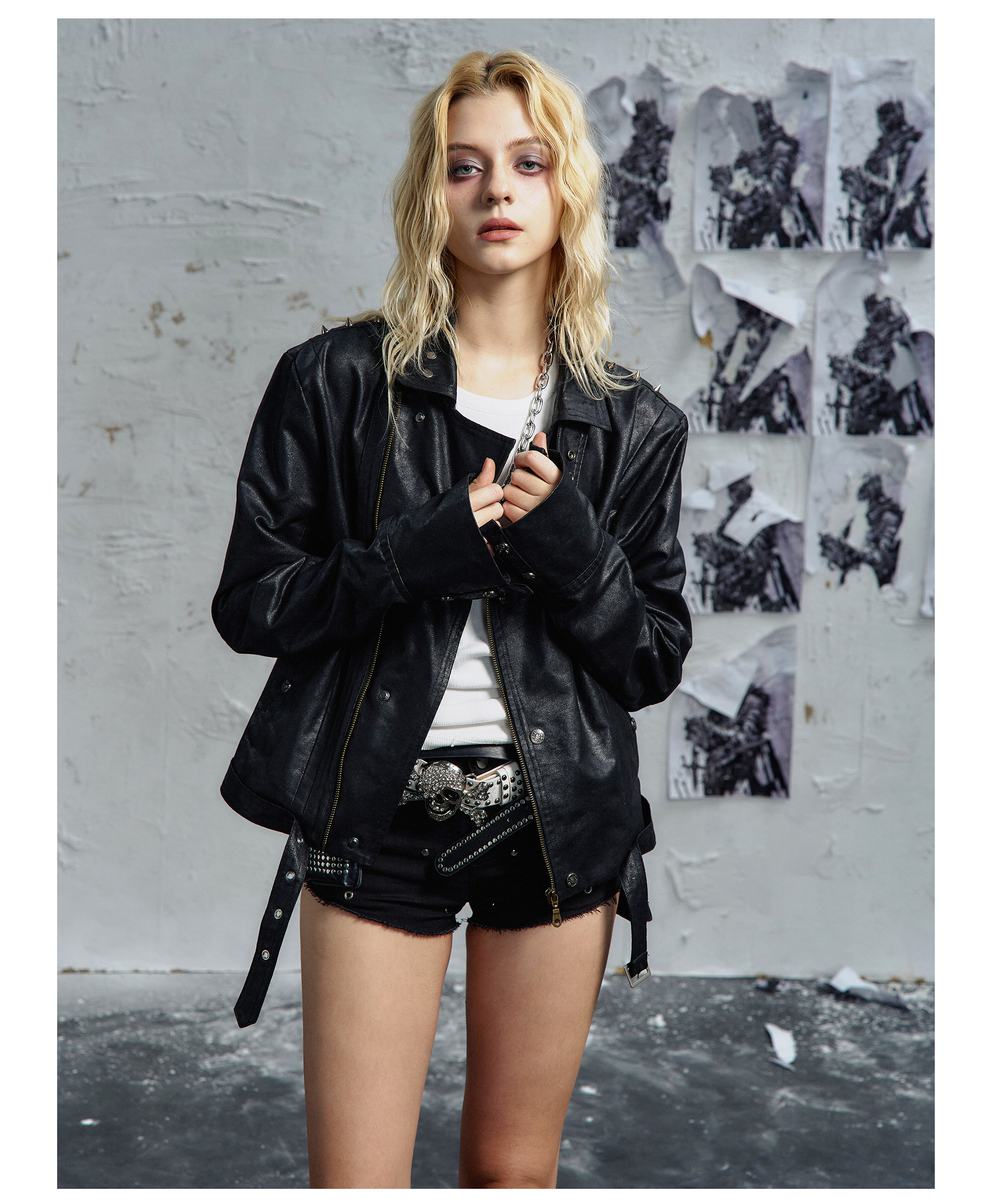 Paiki'Peace Chant' Kiss Mark Skull Headphone Leather Jacket Washed Visual Style Short Wide Autumn Winter Coat