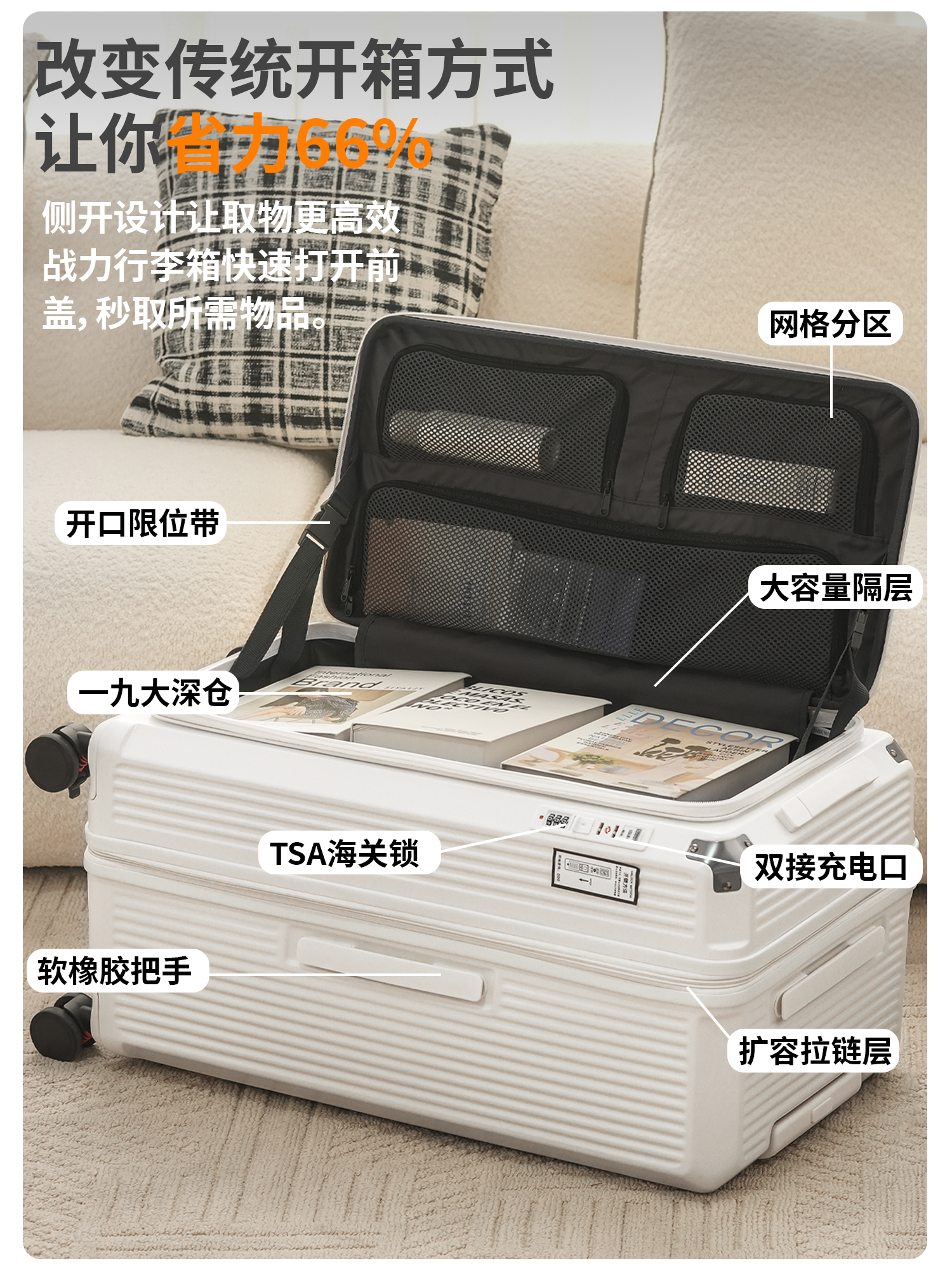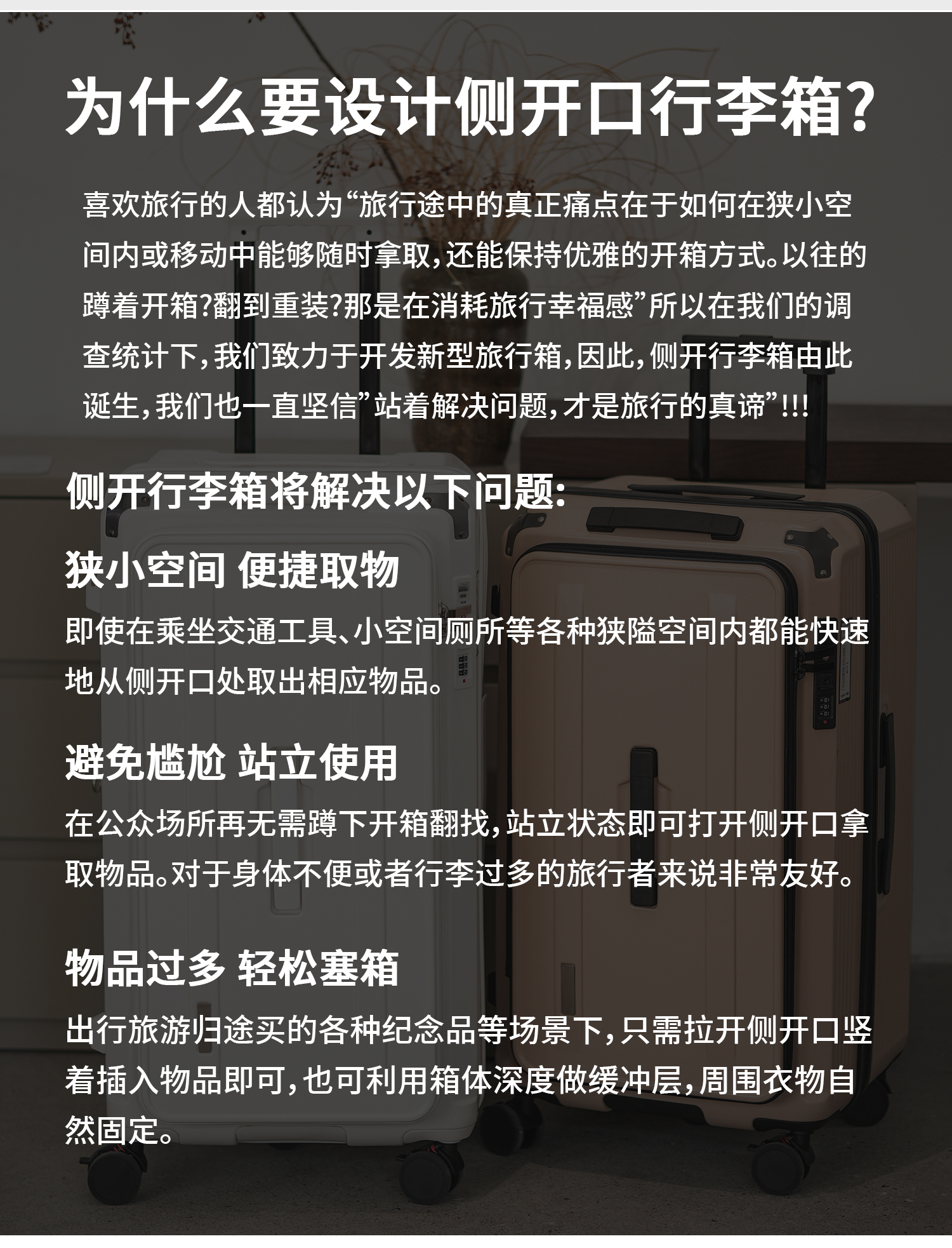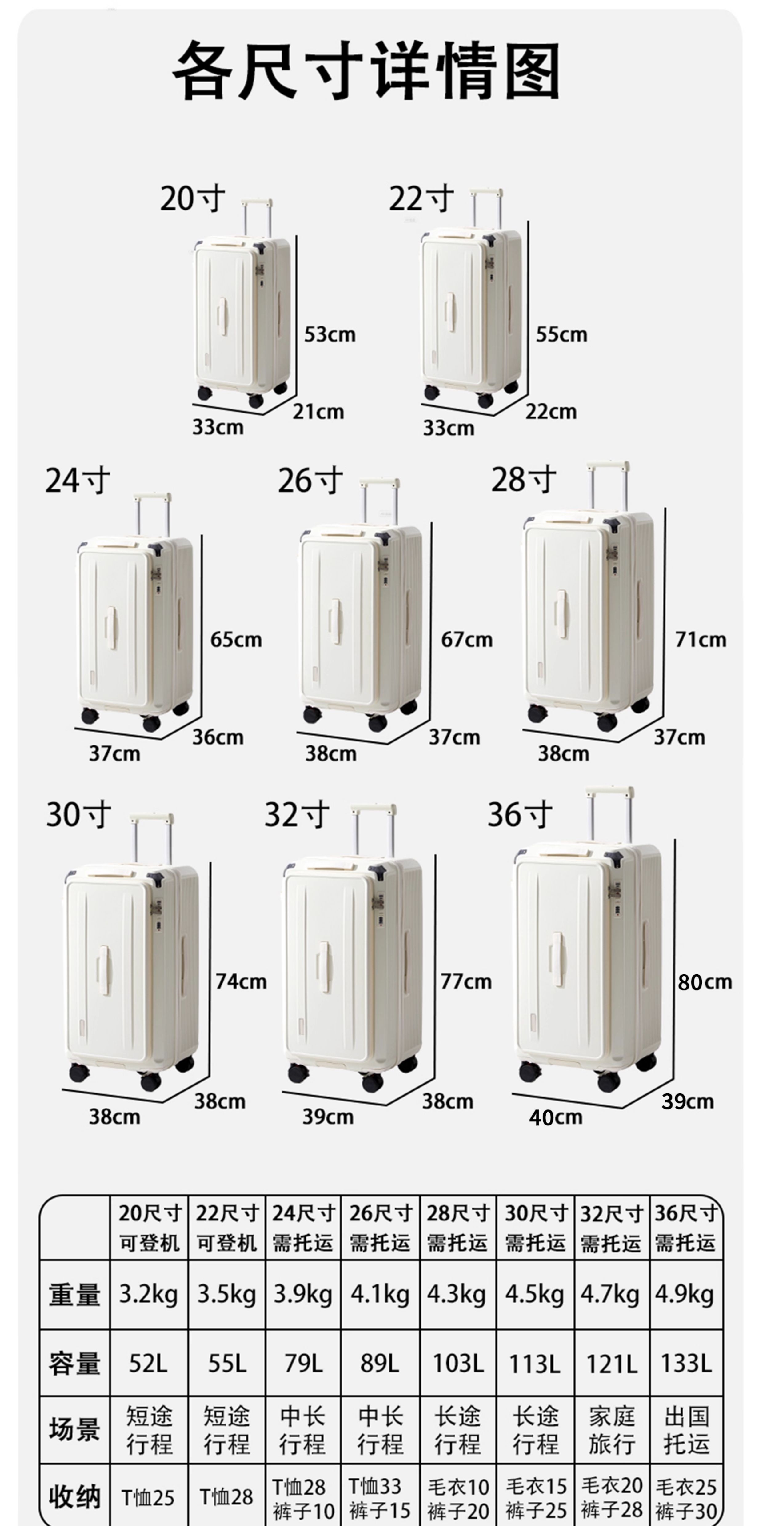 Side-Opening Lid Can Expand Capacity, Student Zipper Suitcase, Extra-Large Capacity Men's Travel Suitcase, Deep Compartment Women's Five-Wheel Trolley Case