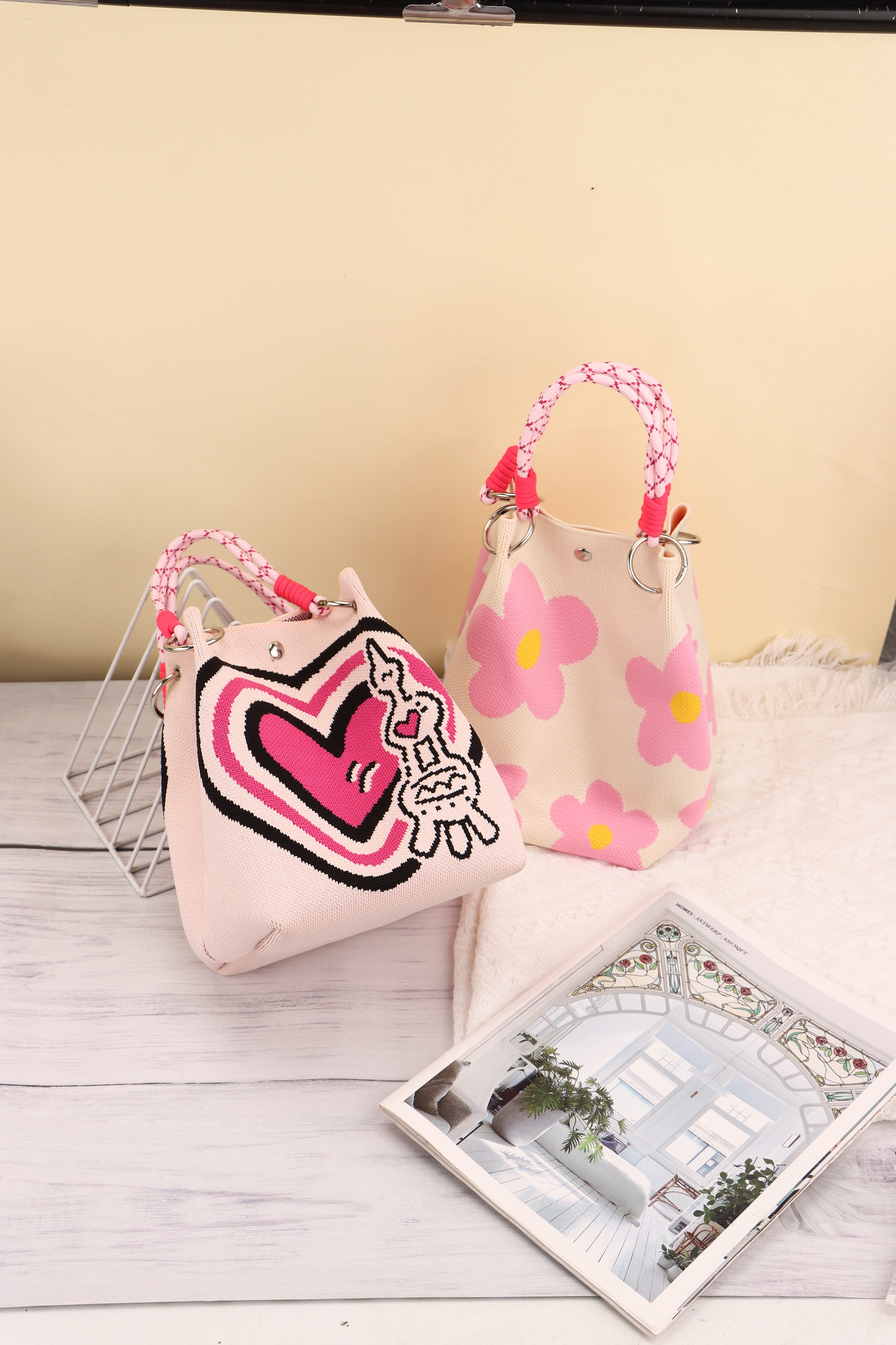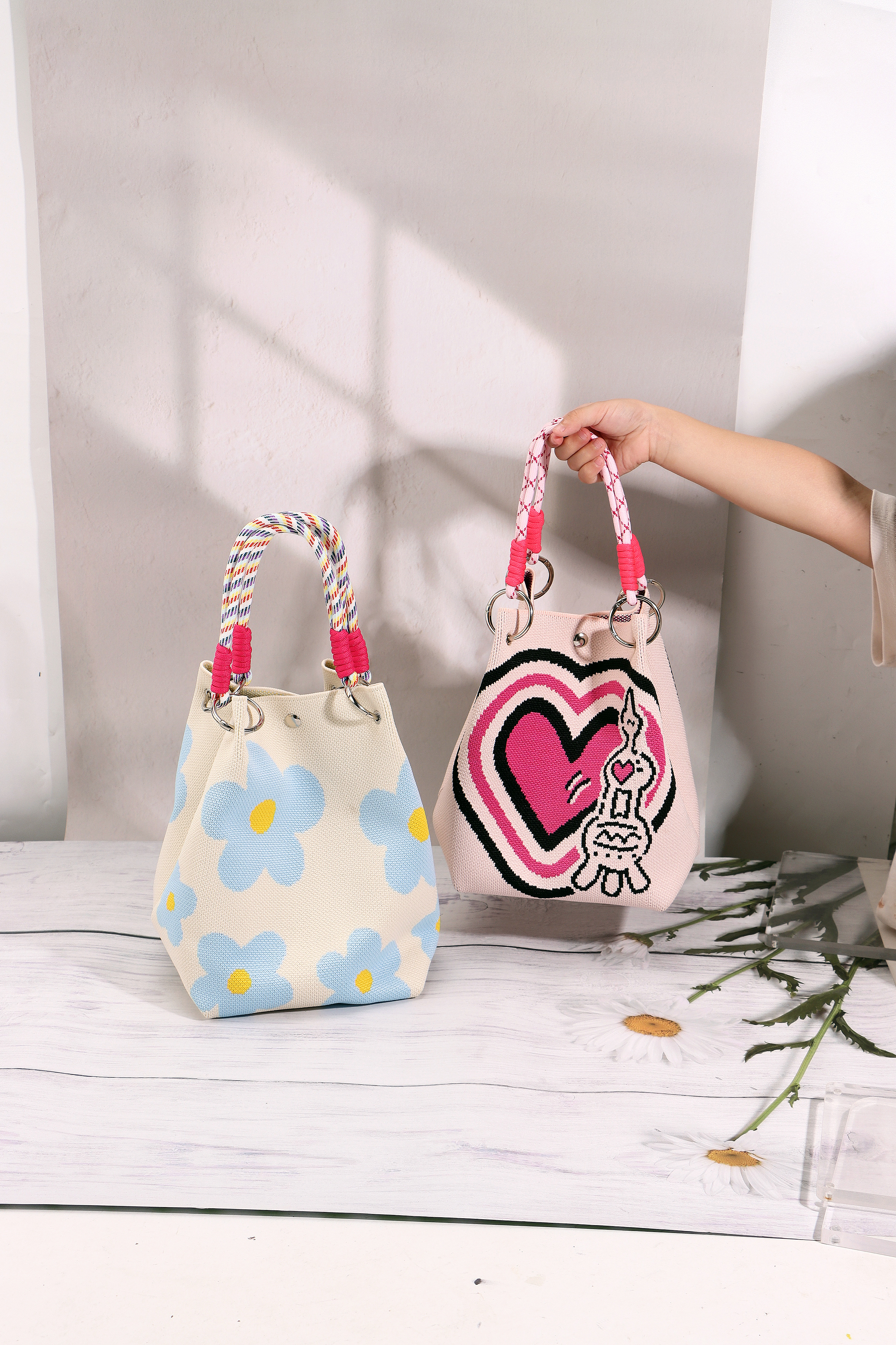 New ins Niche Cute Knitted Phone Bag Summer Travel Handbag Coin Purse Korean Style Street Style Bucket Bag