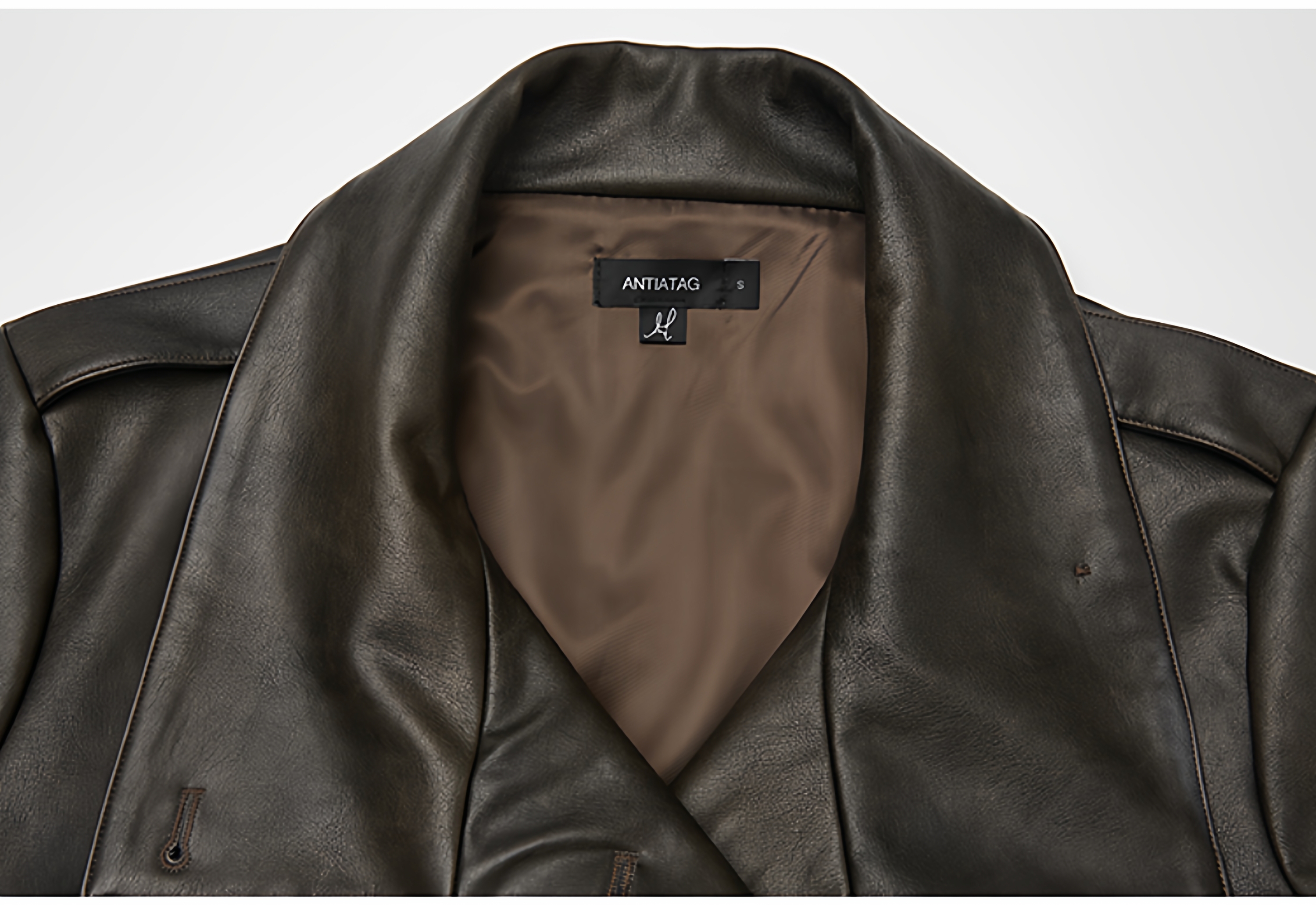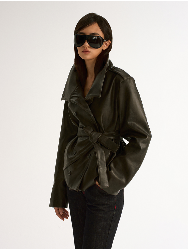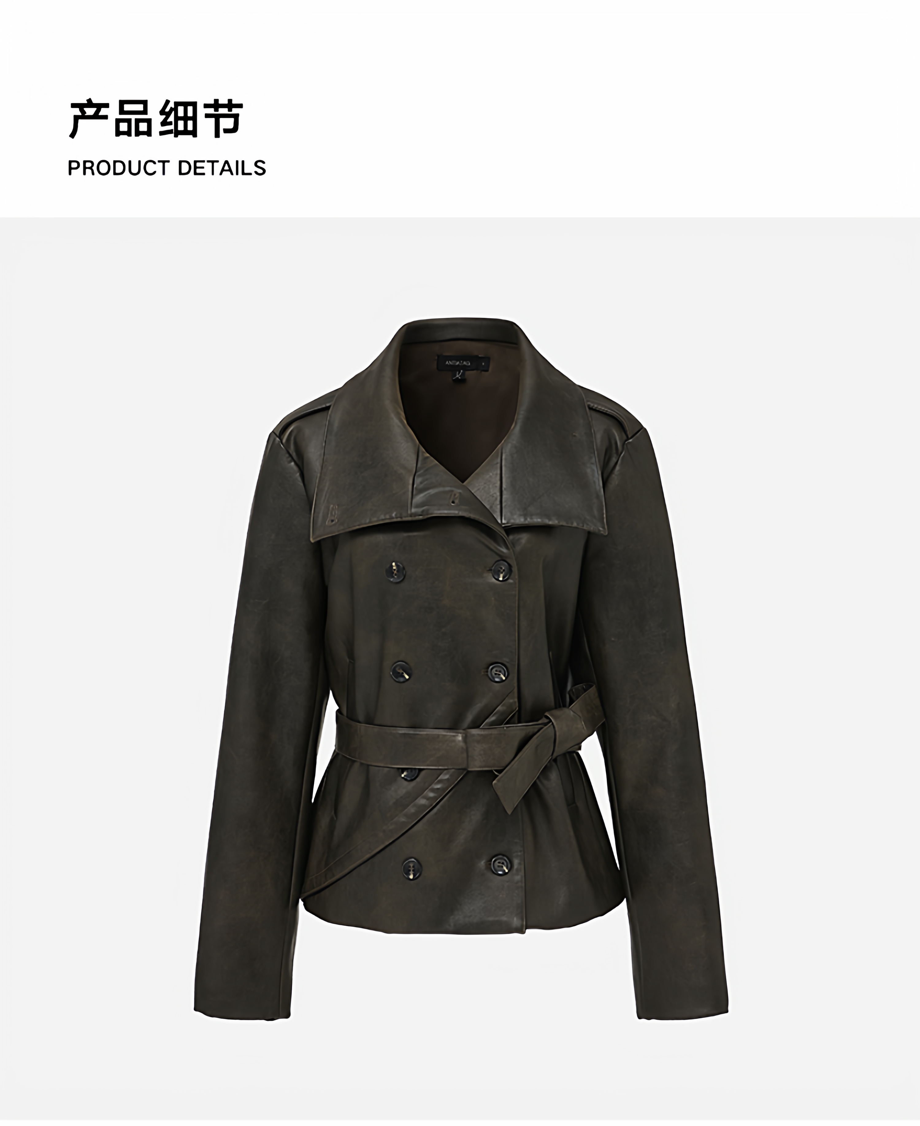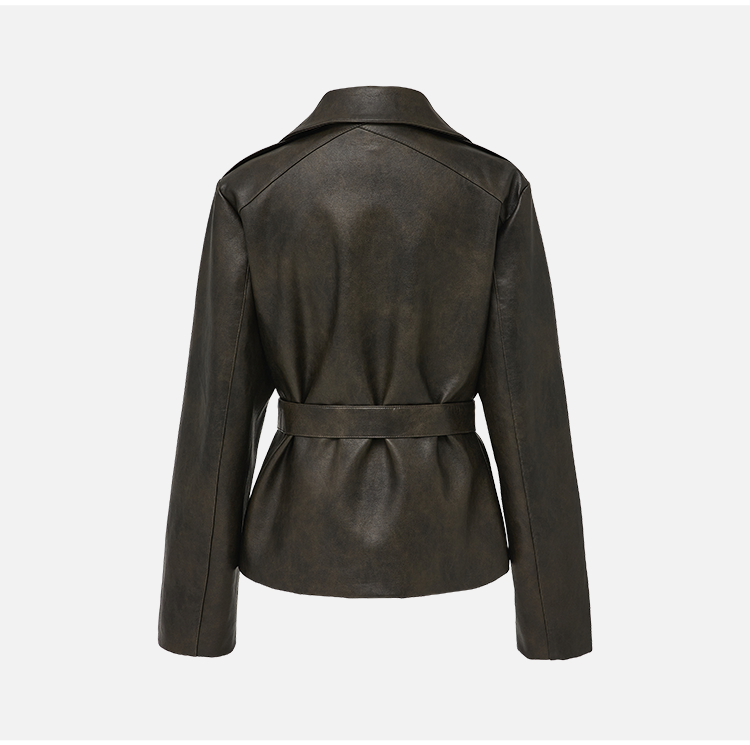 Antiatag Retro Cool-Toned Double-Breasted Silhouette Autumn and Winter Leather Jacket