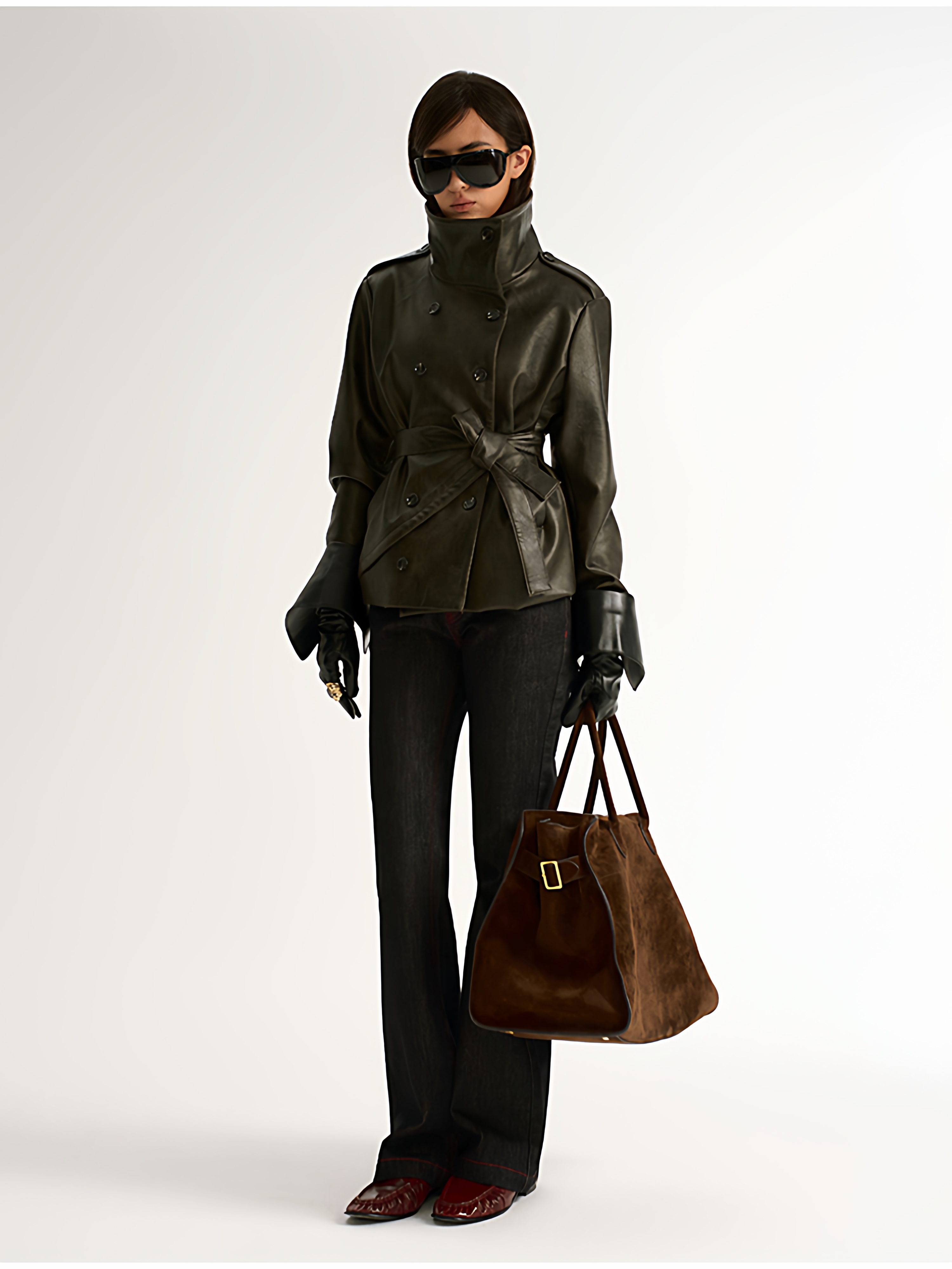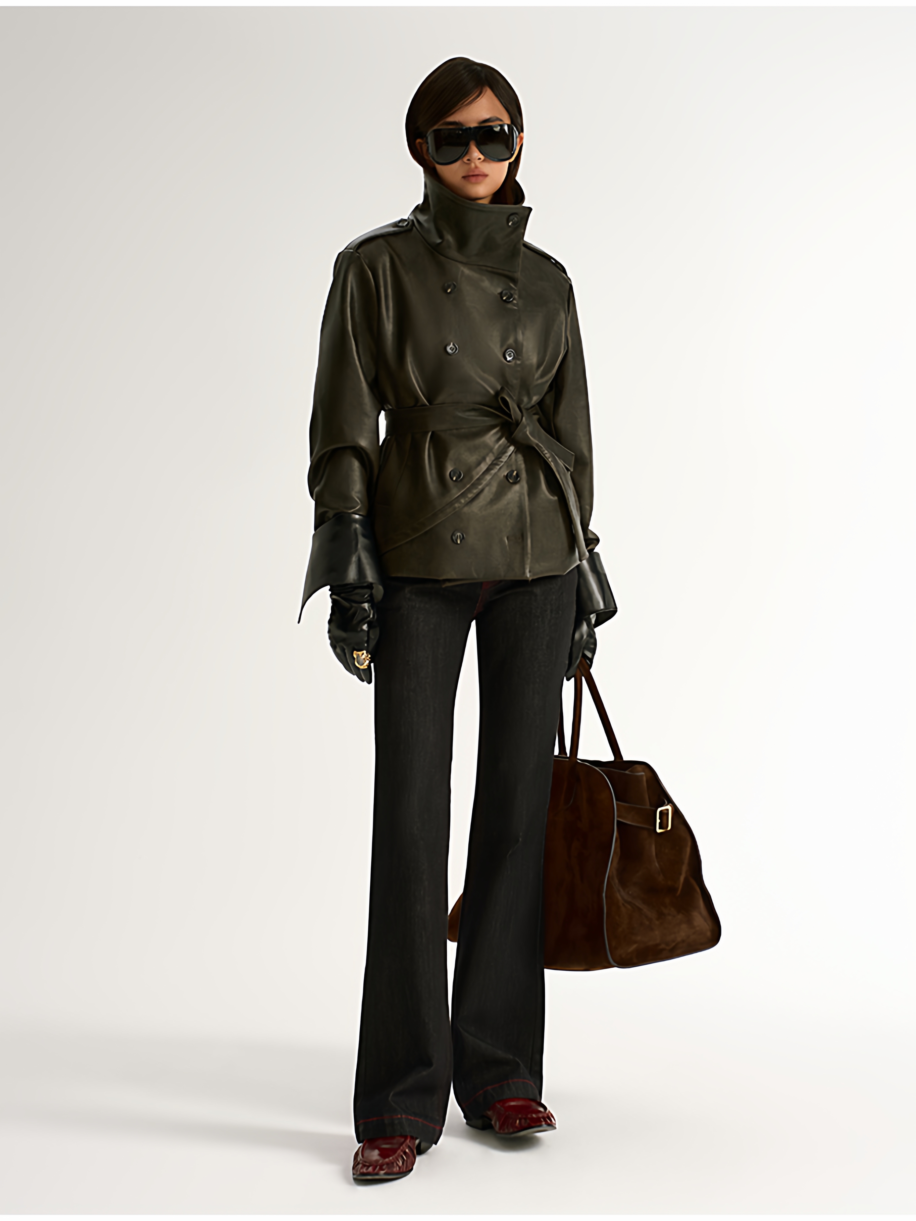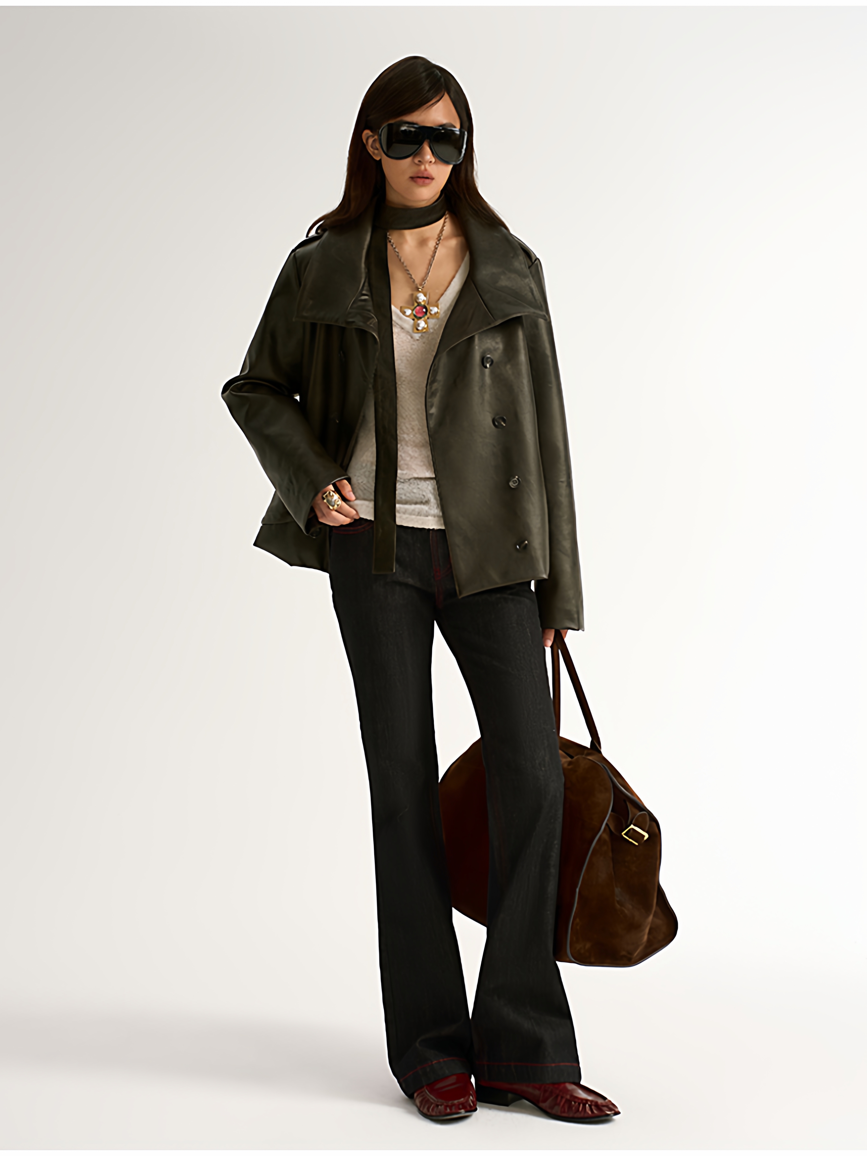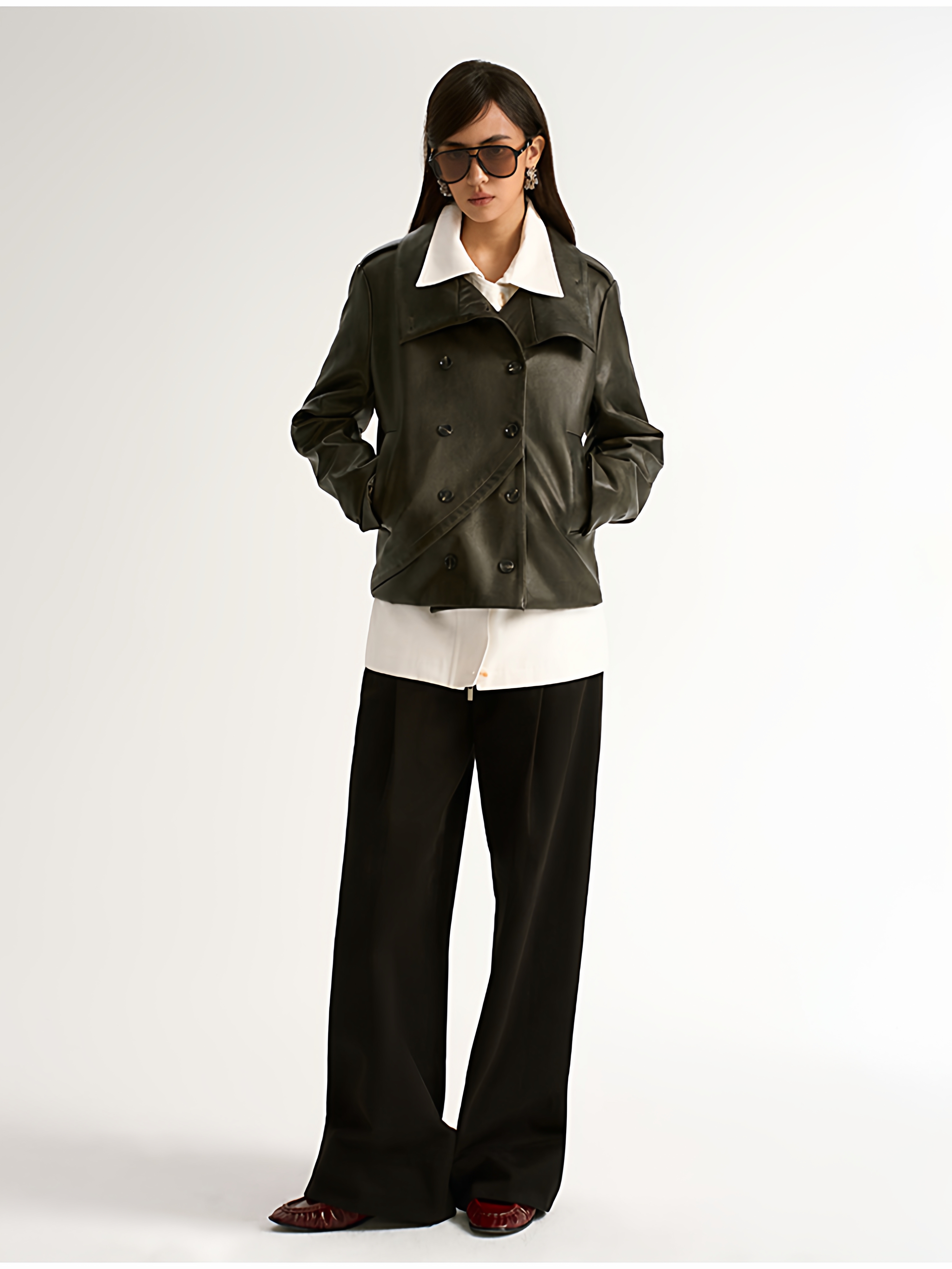 Antiatag Retro Cool-Toned Double-Breasted Silhouette Autumn and Winter Leather Jacket