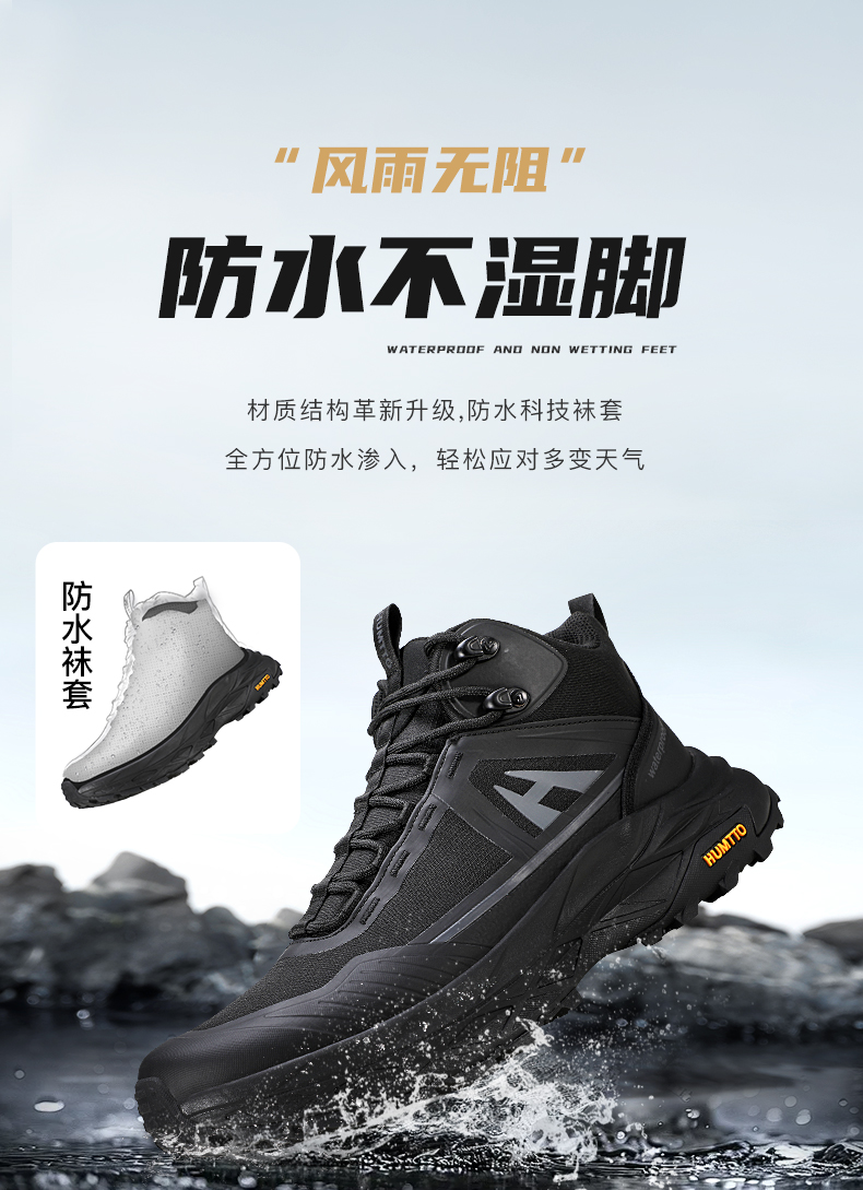 Haitu Rainstorm-Grade Waterproof Shoes for Men in Autumn and Winter, Lightweight, Breathable, Thick-Soled, Non-Slip, Shock-Absorbing Sports Shoes, Outdoor Hiking Shoes