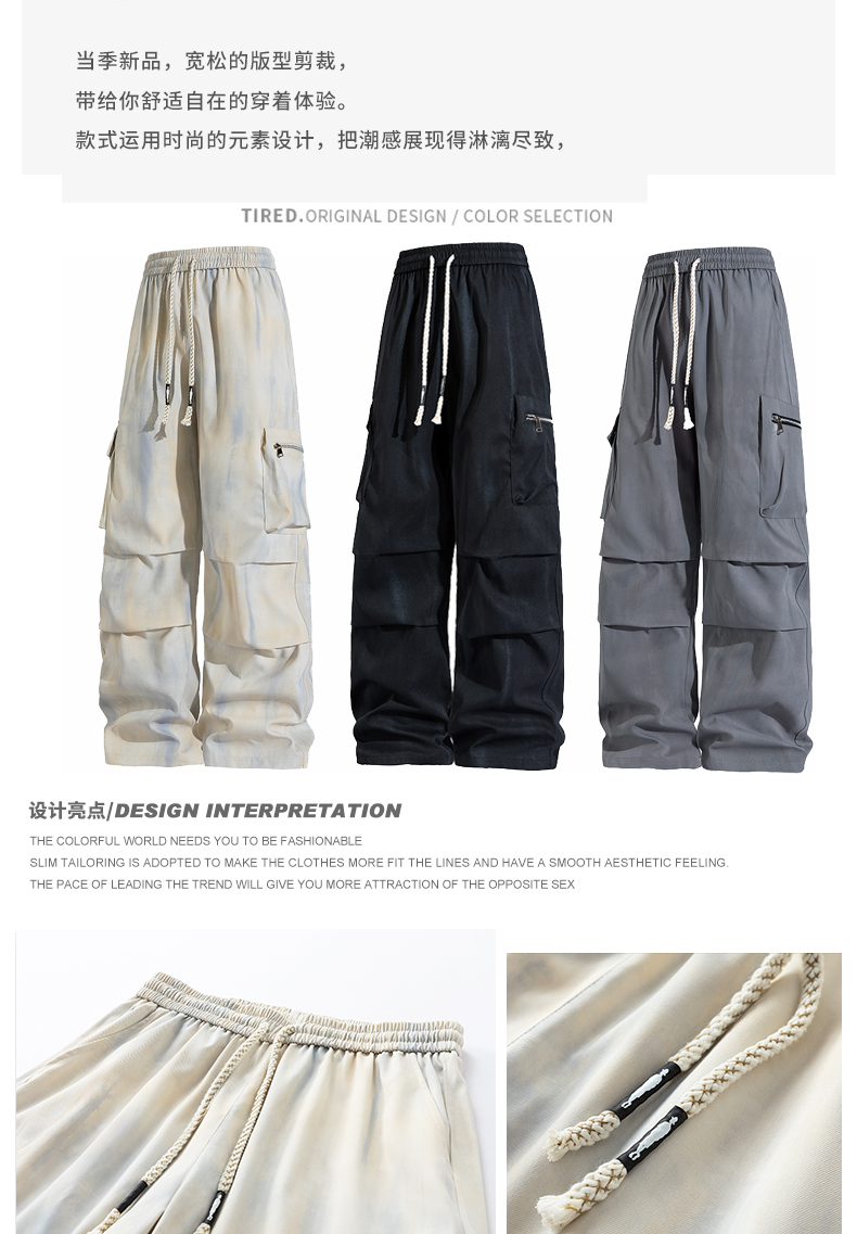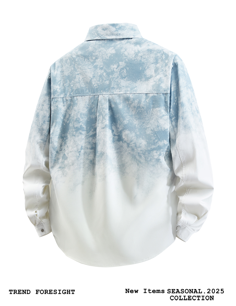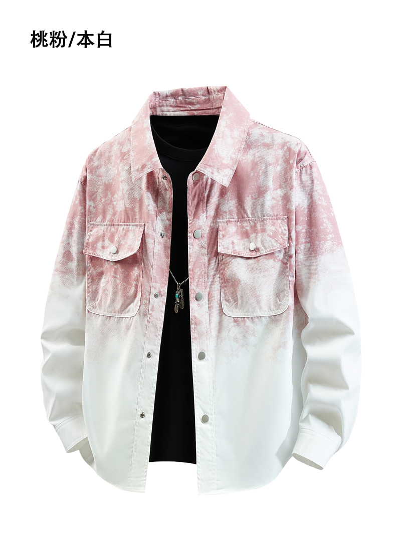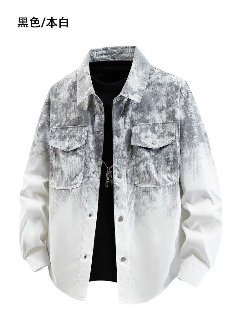 Wassup Line Trendy American-Style Long-Sleeve Suit for Men, Tie-Dye Gradient Shirt, Men's Shirt, Loose Cargo Pants