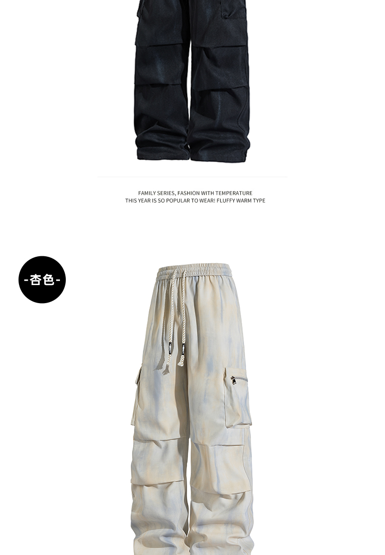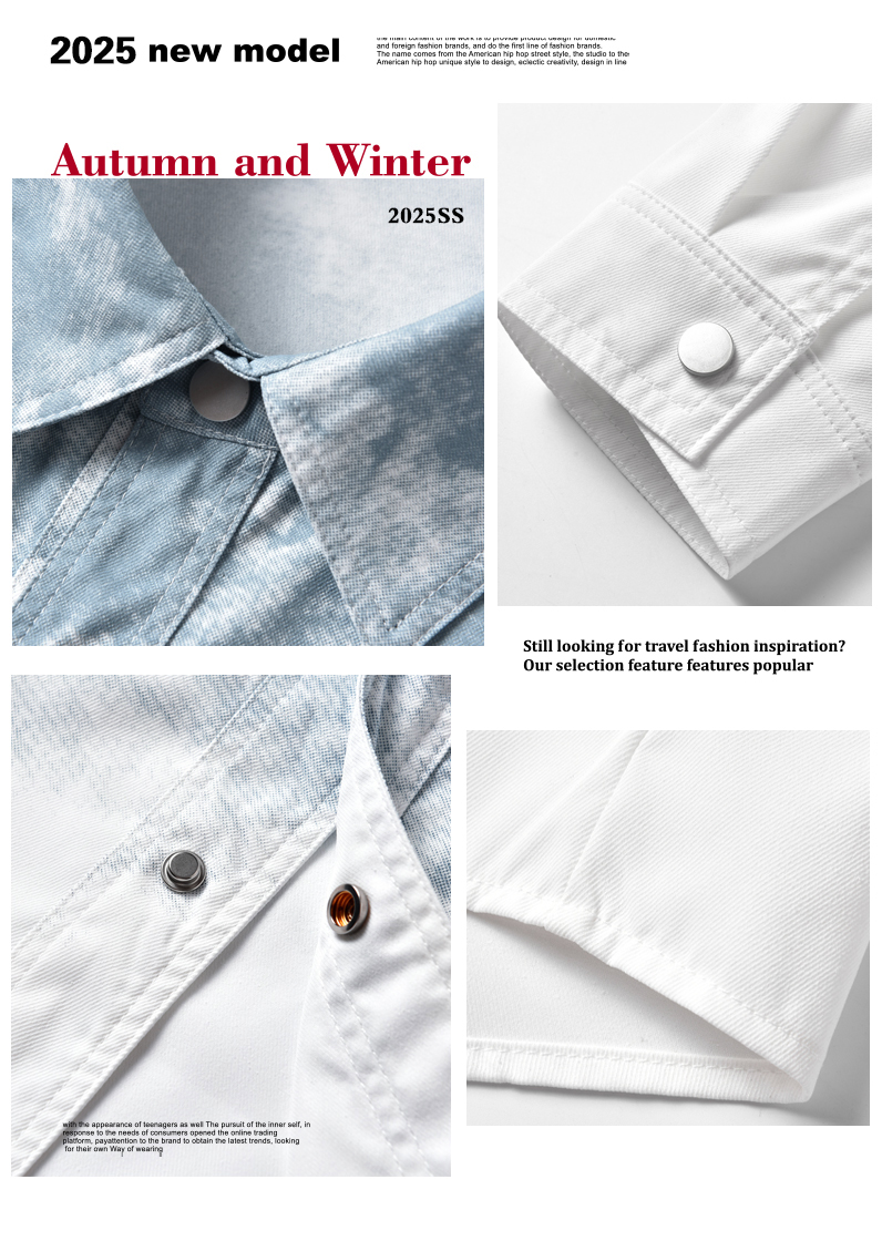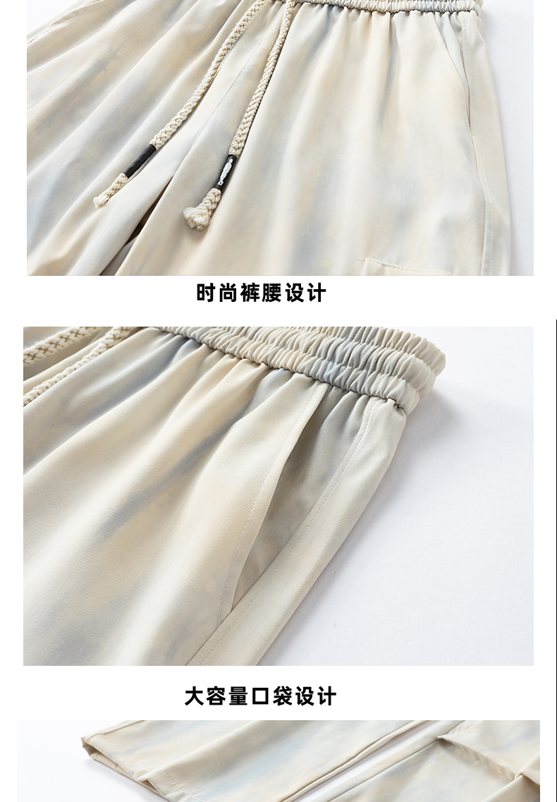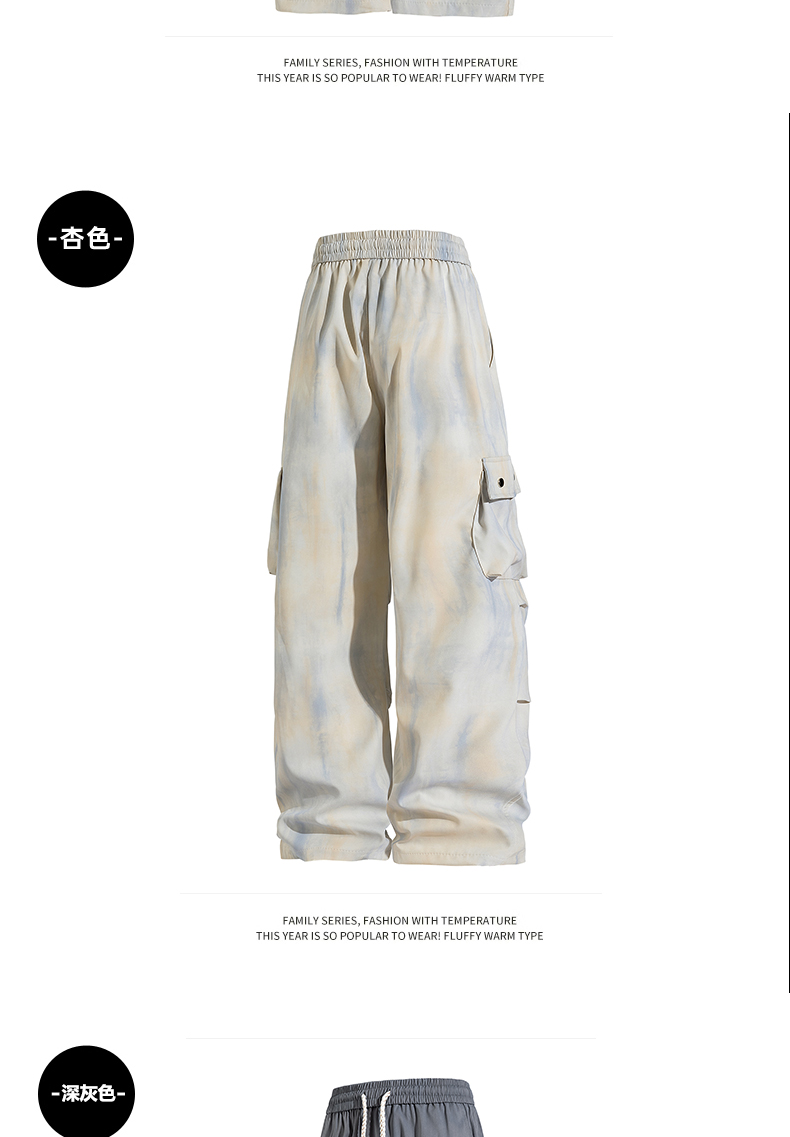 Wassup Line Trendy American-Style Long-Sleeve Suit for Men, Tie-Dye Gradient Shirt, Men's Shirt, Loose Cargo Pants