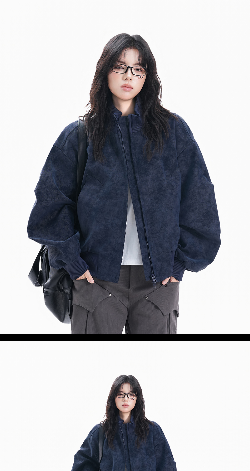 【Sit and Eat and the Mountain Will Empty】Koala-Style American Street Design Leather Jacket for Women, Loose-Fitting Flight Jacket for Autumn
