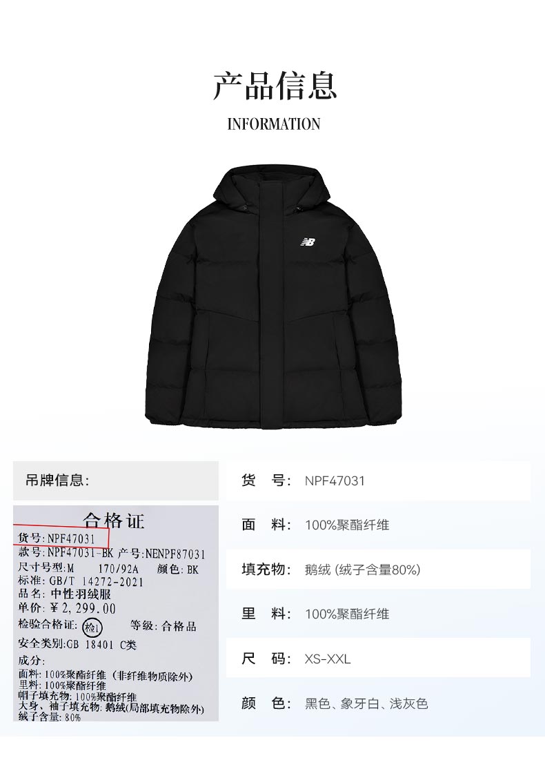 New Balance Nb Official Authentic 25-Year New Model Men's and Women's Couple Winter Goose down Jacket Npf47031