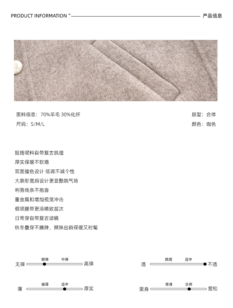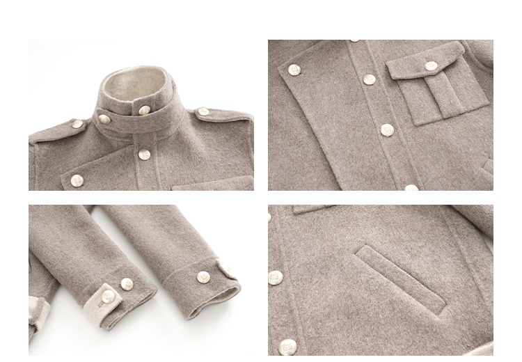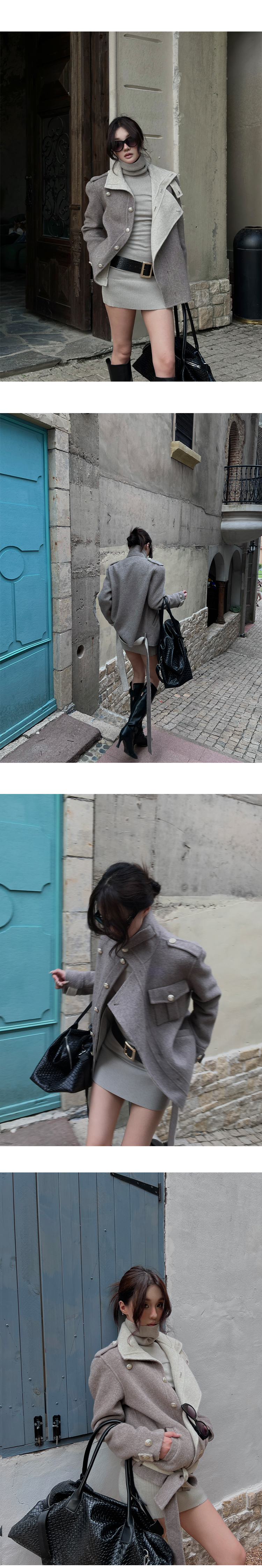 Hytemoly Wool Blend Color-Blocked Double-Sided Woolen Jacket Retro Wide Shoulder Structured Cool Loose Woolen Short Coat
