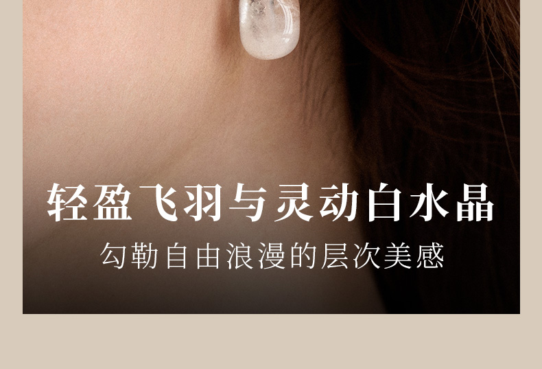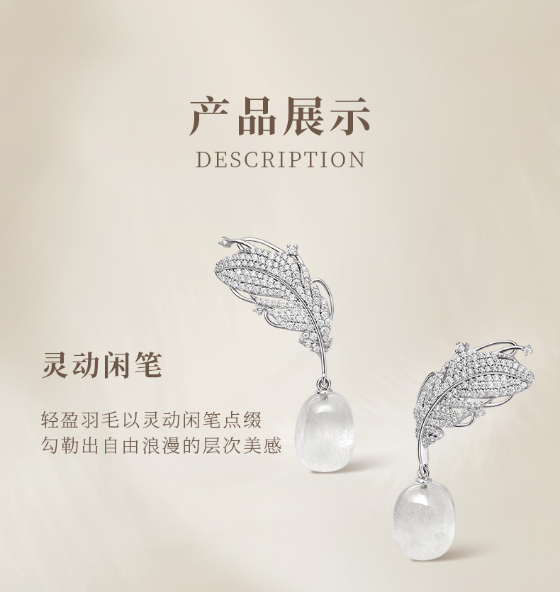 [Double 11] [New Product] Hefang He Fang Jewelry White Crystal Feather Earrings Studs Light Luxury Earrings Birthday Gift