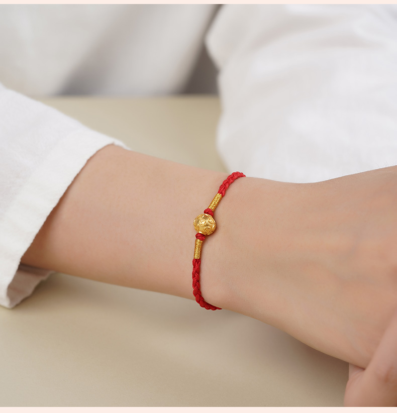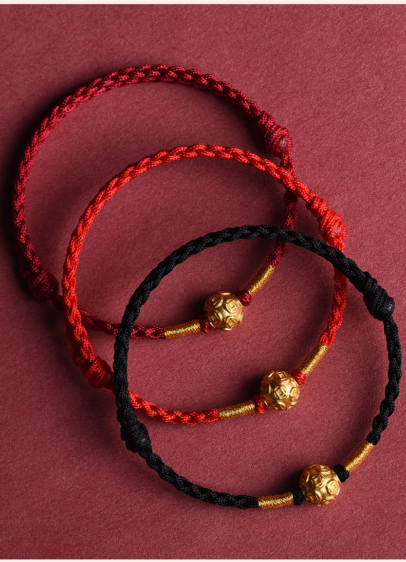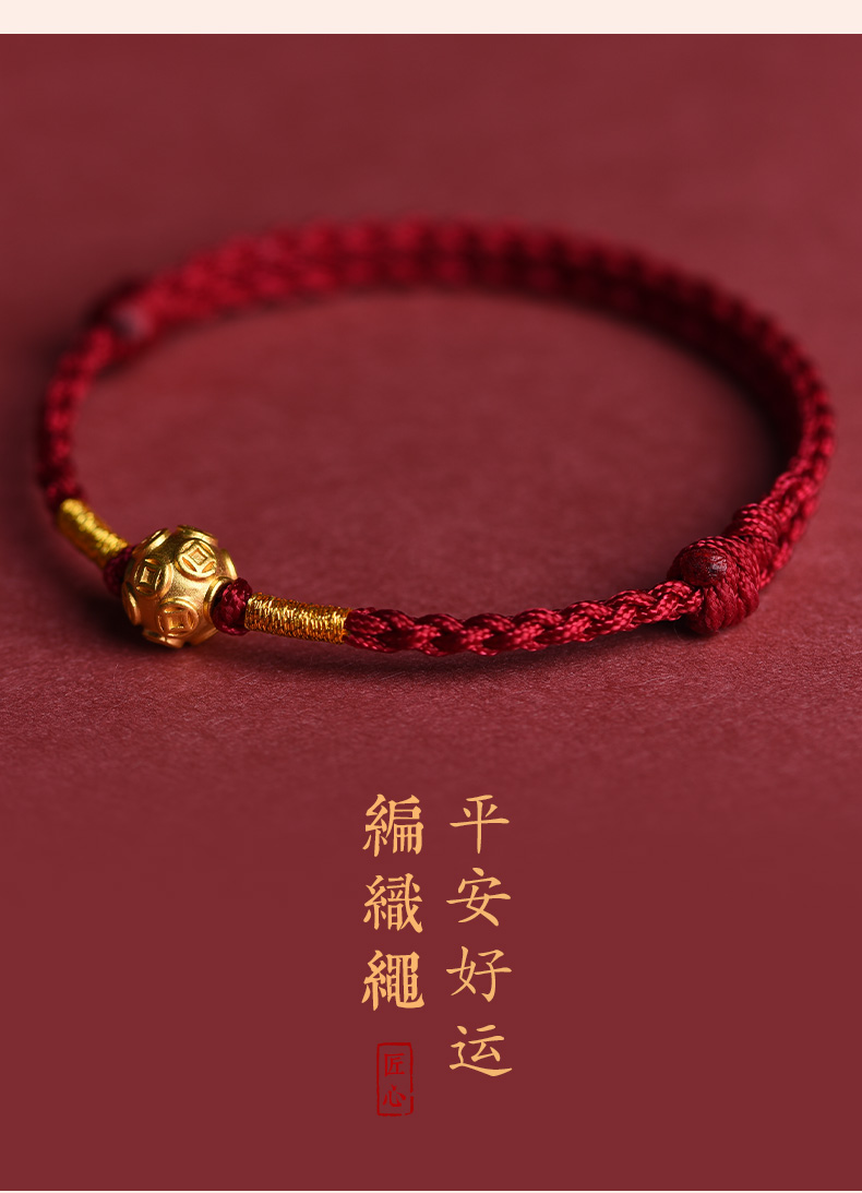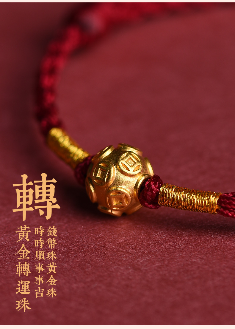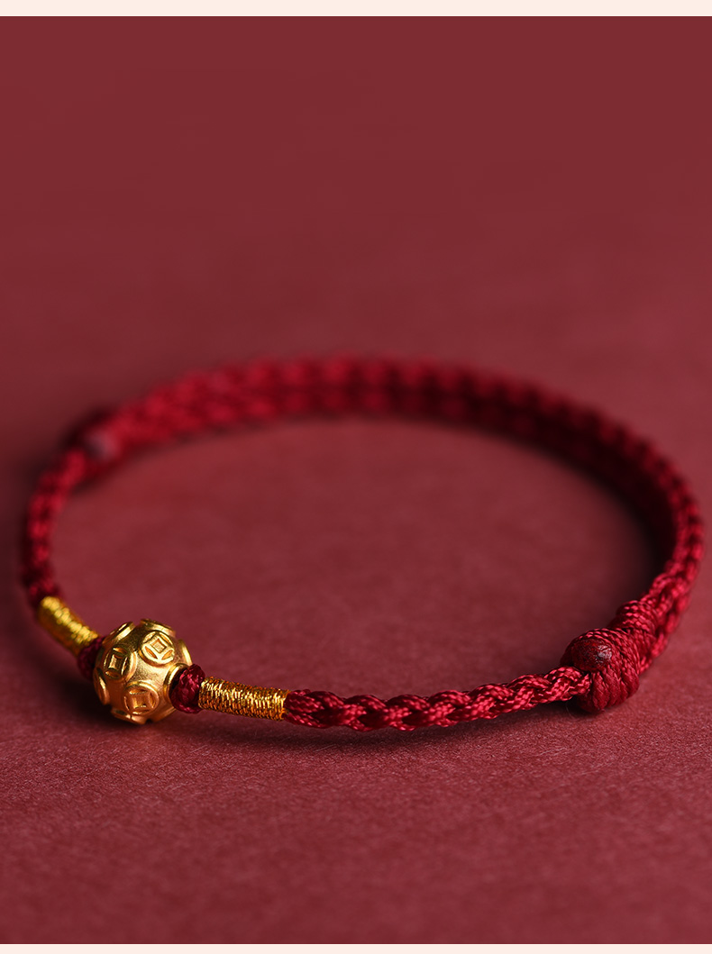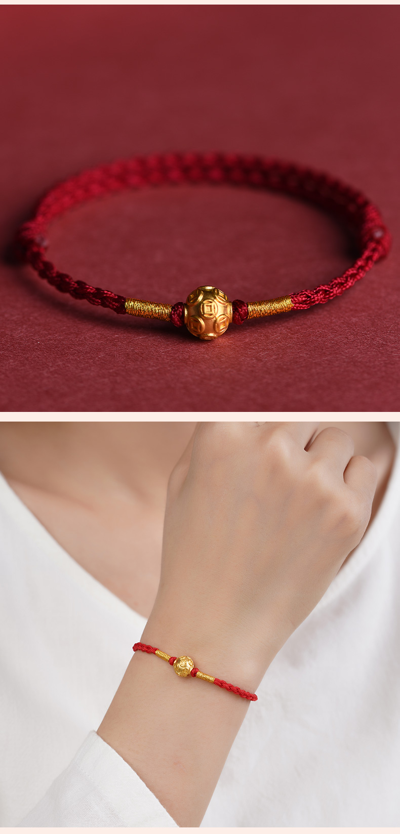 999 Pure Gold Money Coin Red String Bracelet for Men and Women, Snake, Horse, Sheep Zodiac Year, Peace and Luck Bead Woven Bracelet