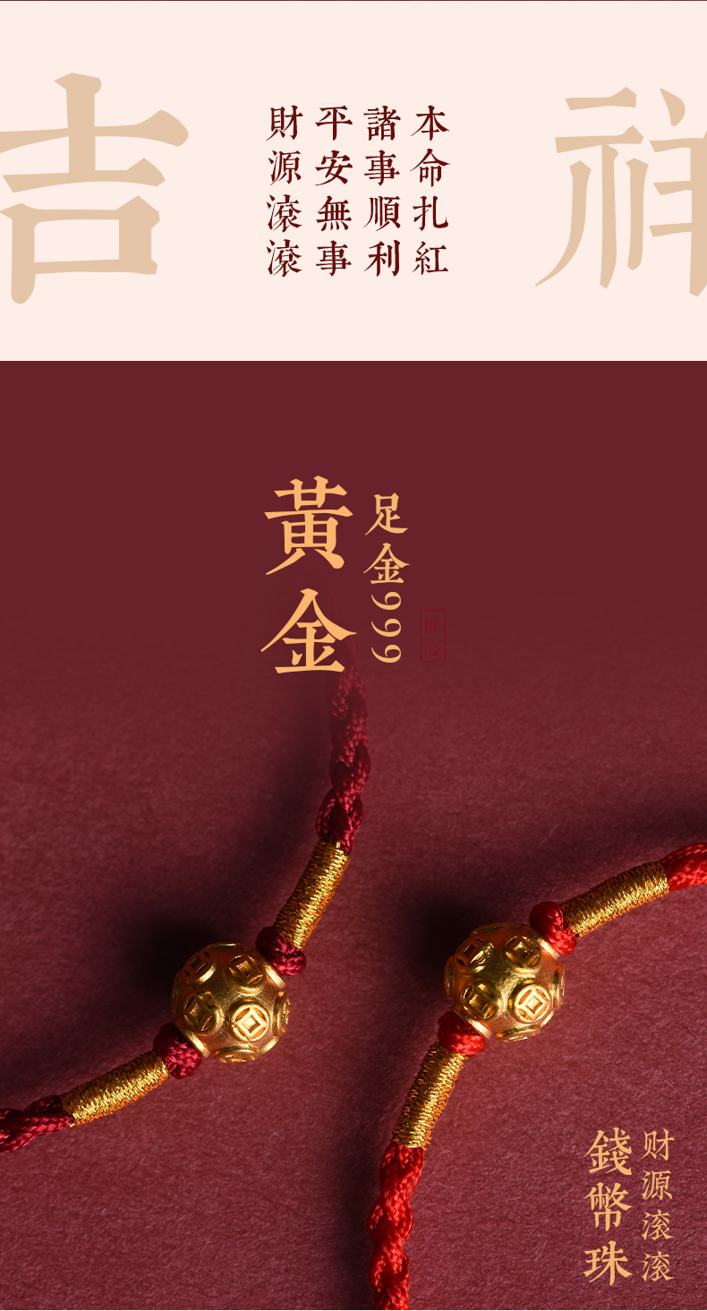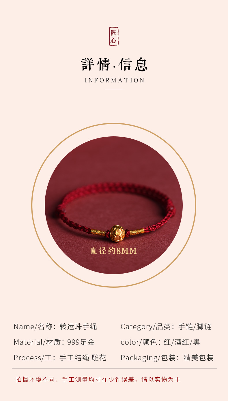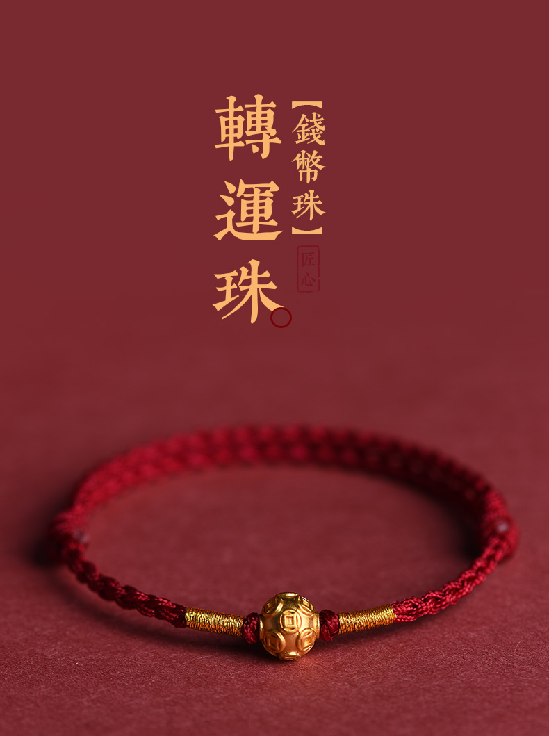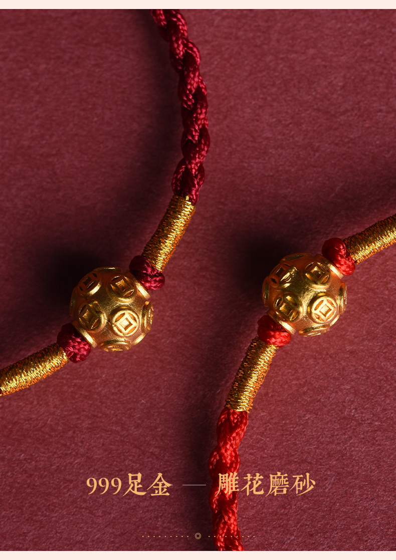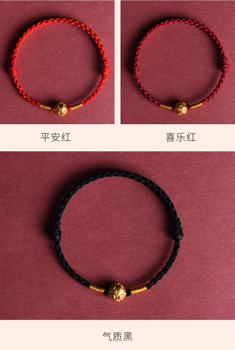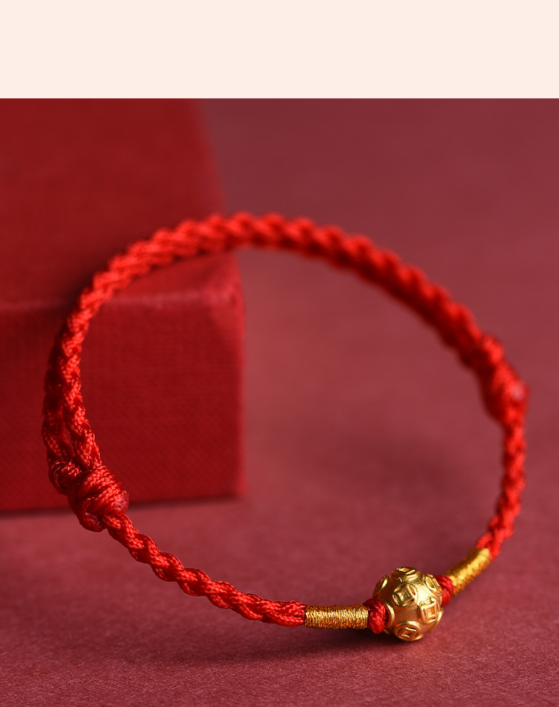 999 Pure Gold Money Coin Red String Bracelet for Men and Women, Snake, Horse, Sheep Zodiac Year, Peace and Luck Bead Woven Bracelet