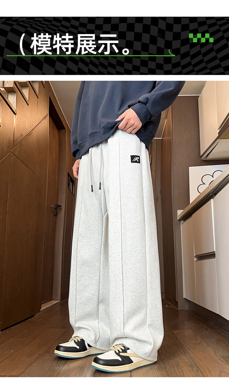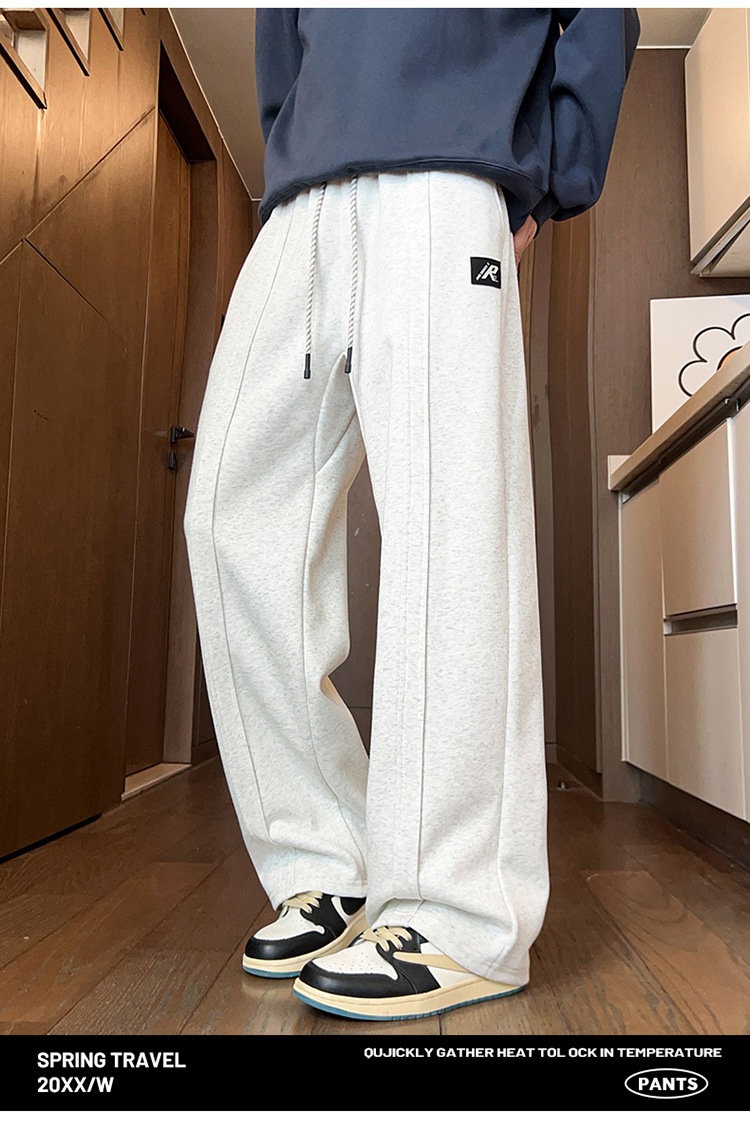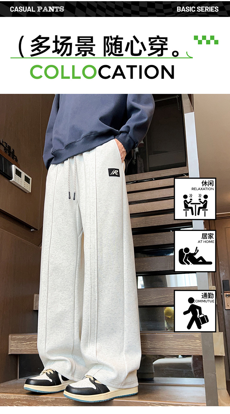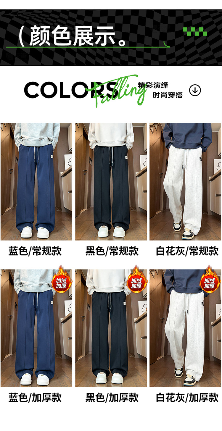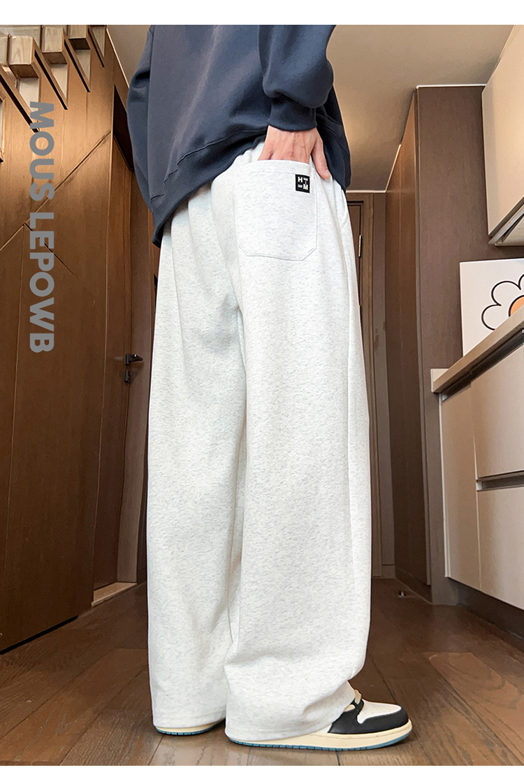 Men's Casual Pants Plus Size, Extra Large, Heavy-Duty, Loose Straight-Leg Sweatpants, Spring, Autumn, and Winter, Fleece-Lined, Leaf-Shaped Crotch Long Pants