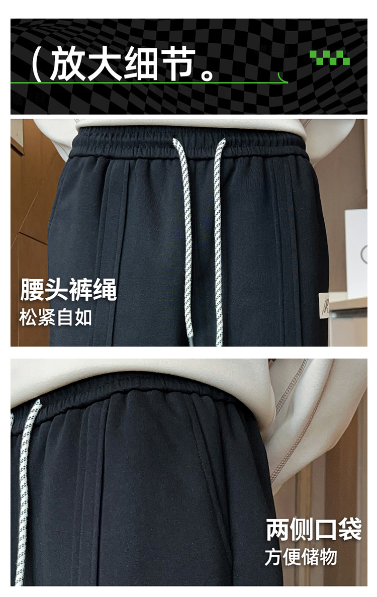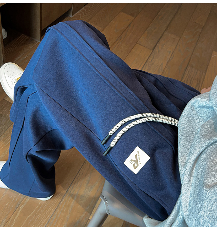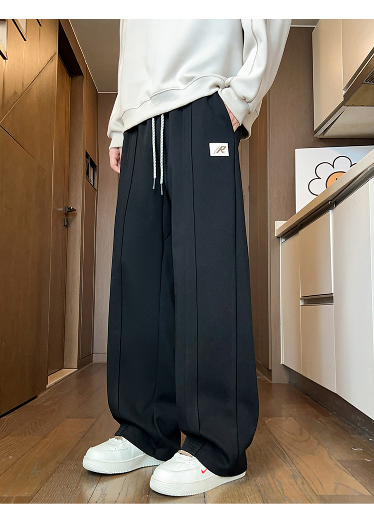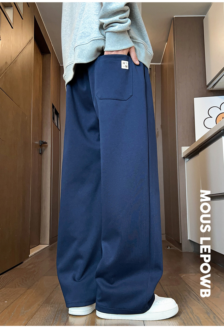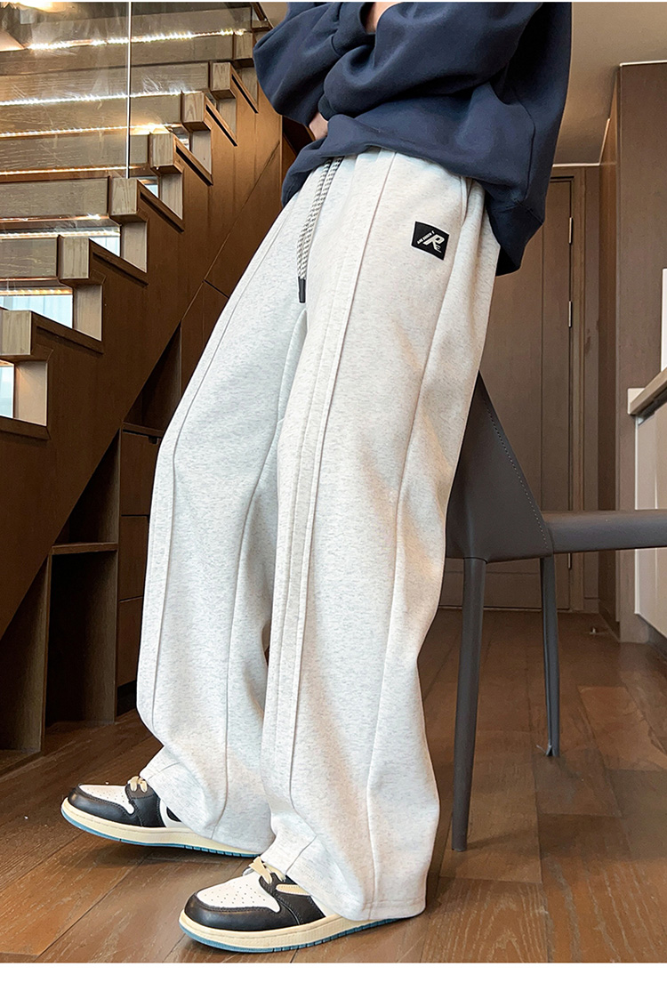 Men's Casual Pants Plus Size, Extra Large, Heavy-Duty, Loose Straight-Leg Sweatpants, Spring, Autumn, and Winter, Fleece-Lined, Leaf-Shaped Crotch Long Pants