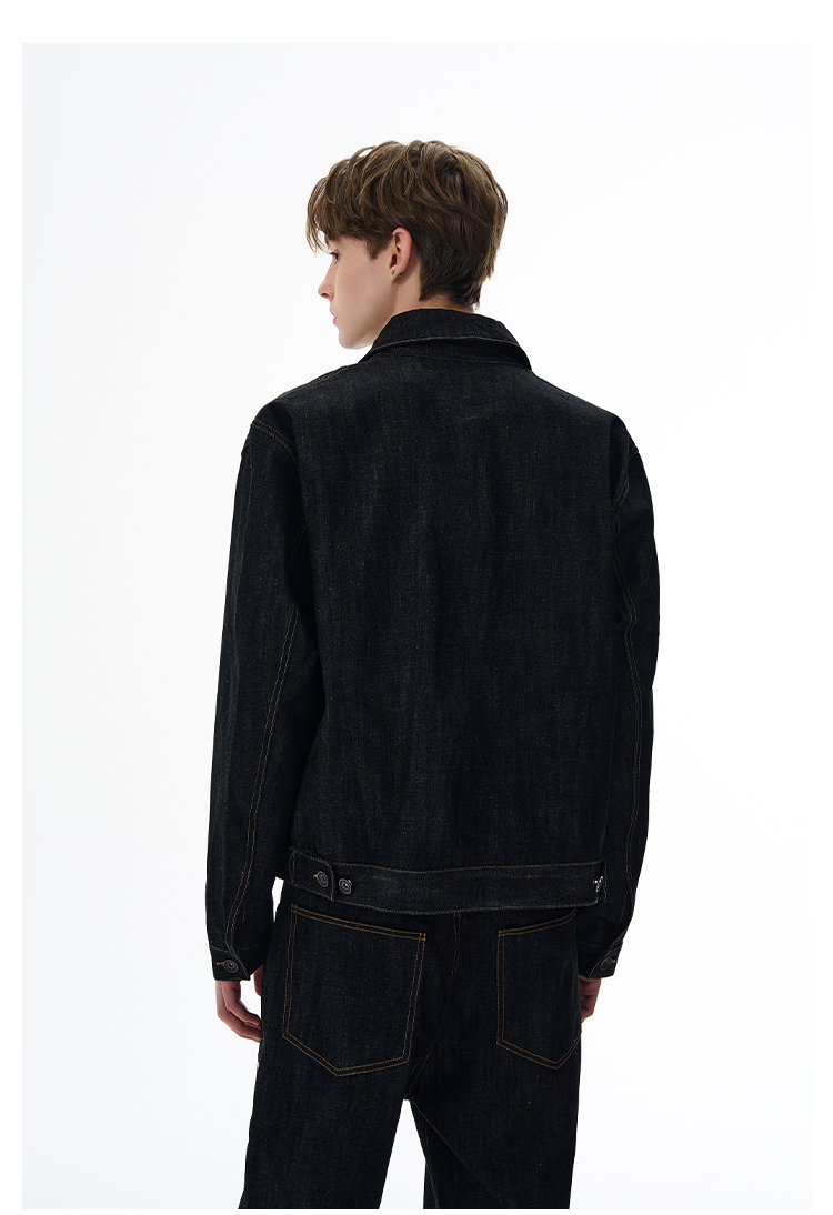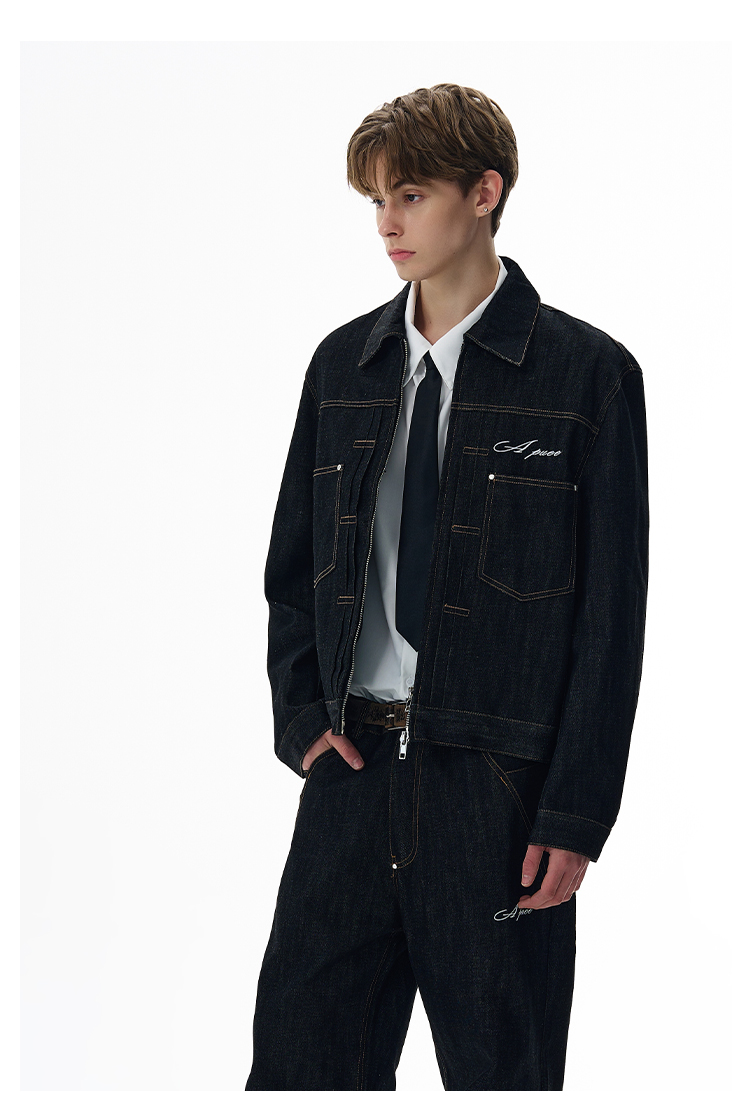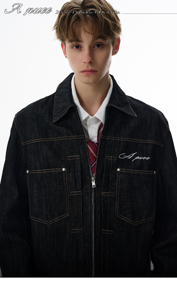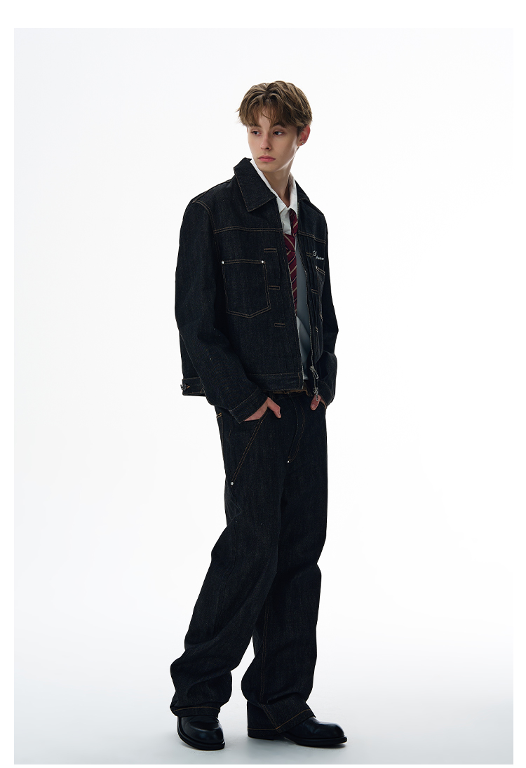 A Puee American Retro Silhouette Denim Original Color Jacket Set Cleanfit Cool Loose Coat Trendy
