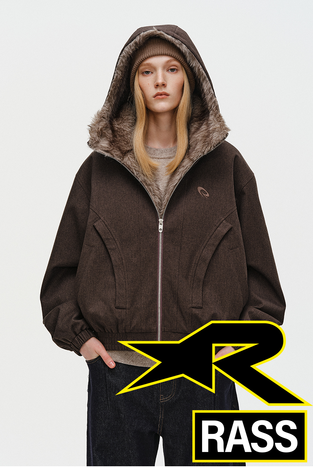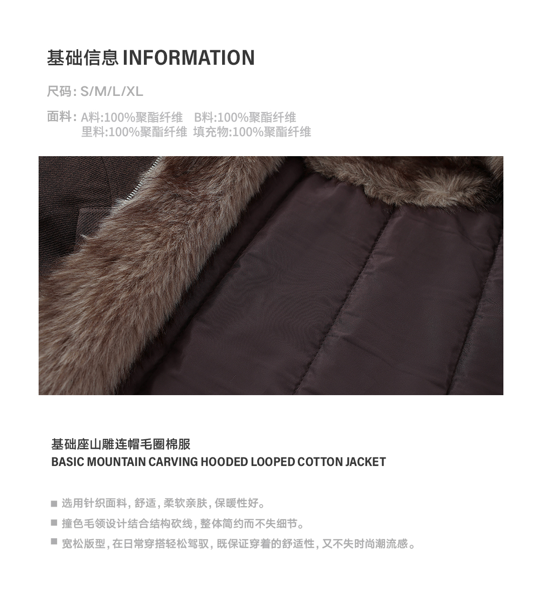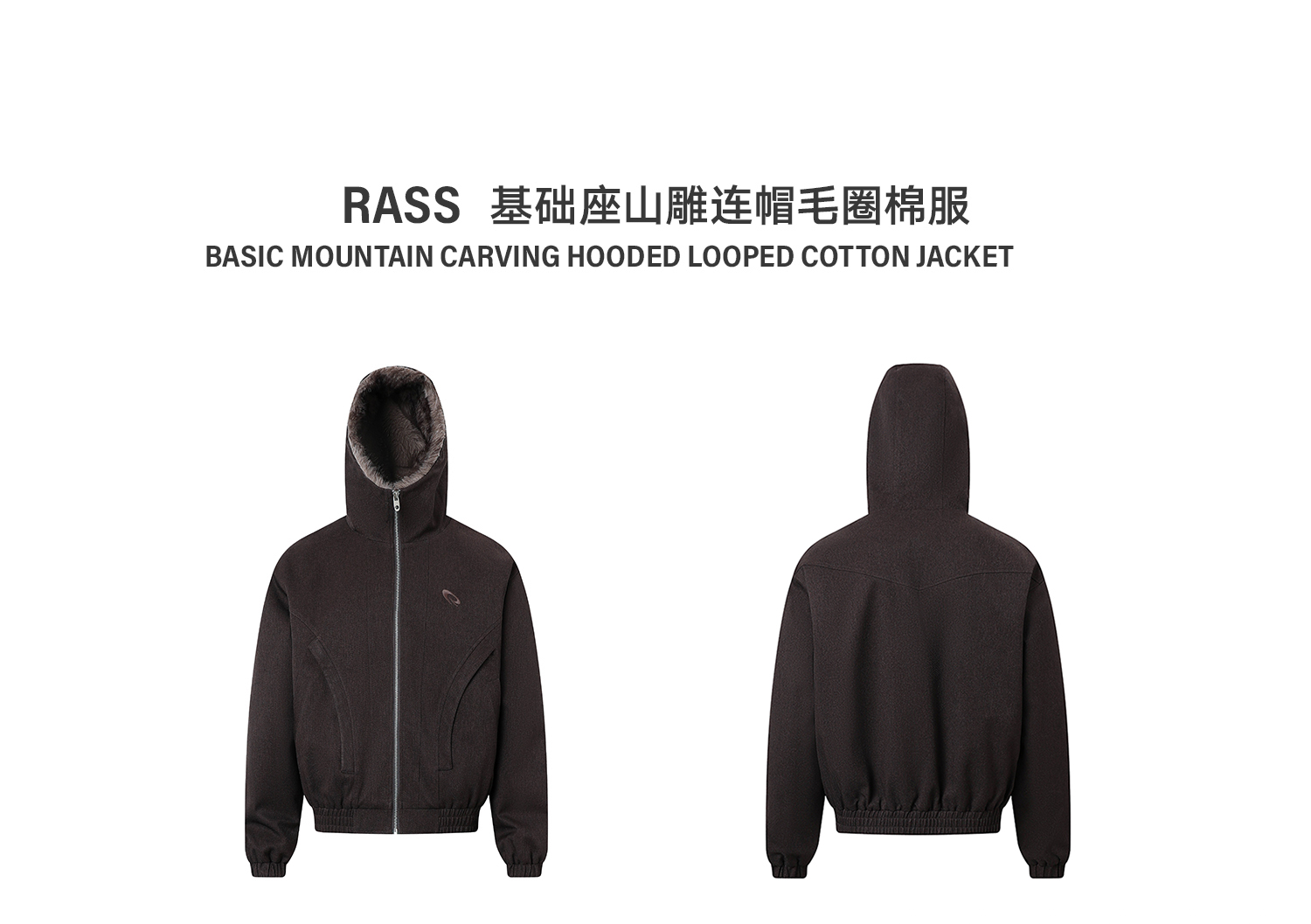 Rass Basic Mountain Carving Hooded Terry Cotton Jacket Trendy Brand New Winter Cold-Resistant Warm Zipper Cotton Coat