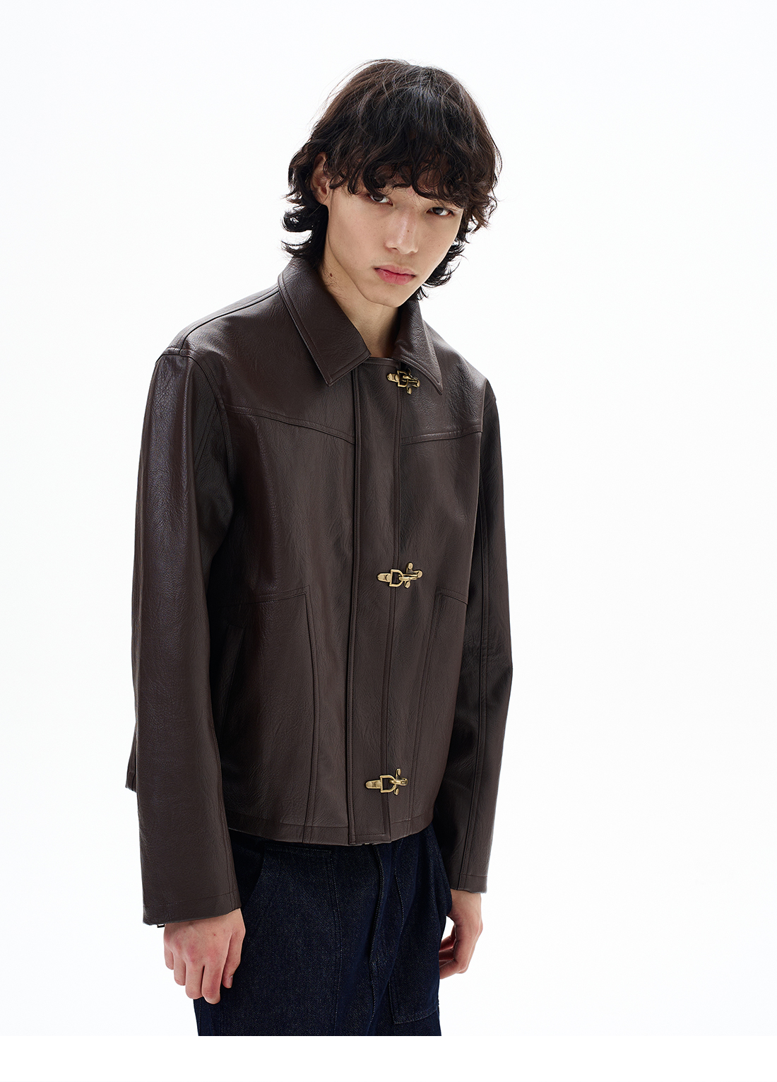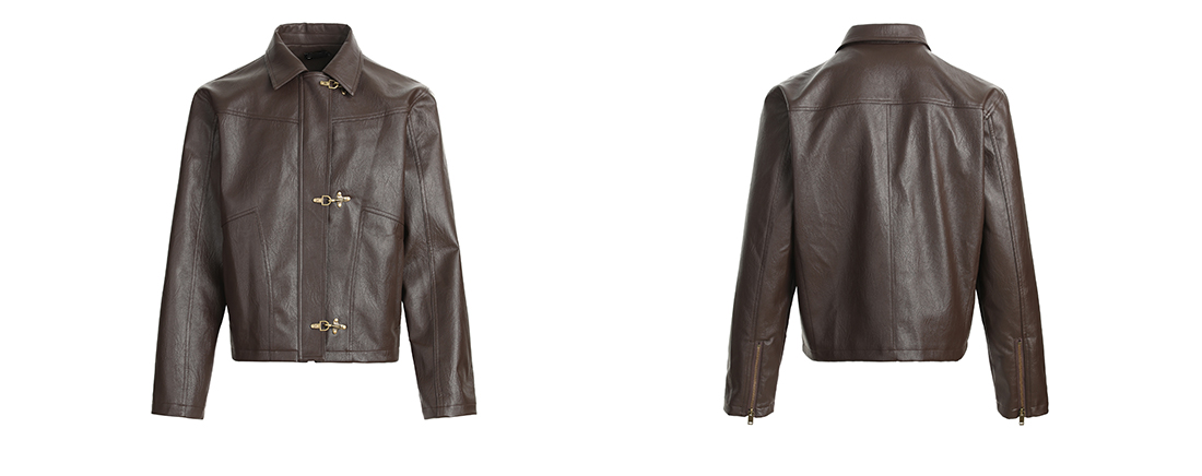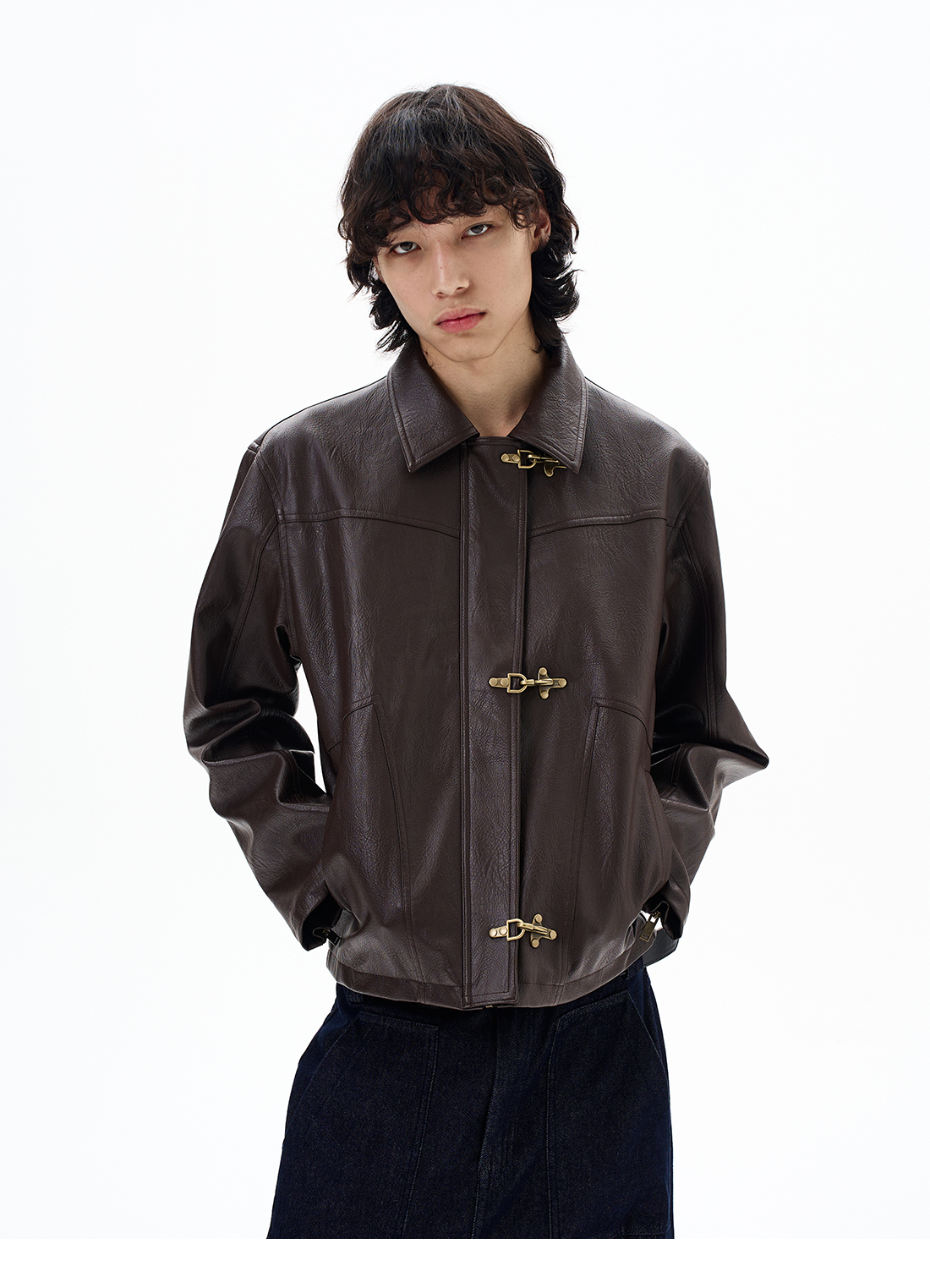 Tailang's Shop Autumn American-Style Short Brown Leather Jacket for Men with a High-End Feel, Niche Design, and Airplane Buckle Closure