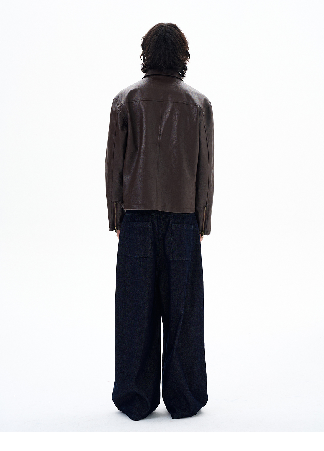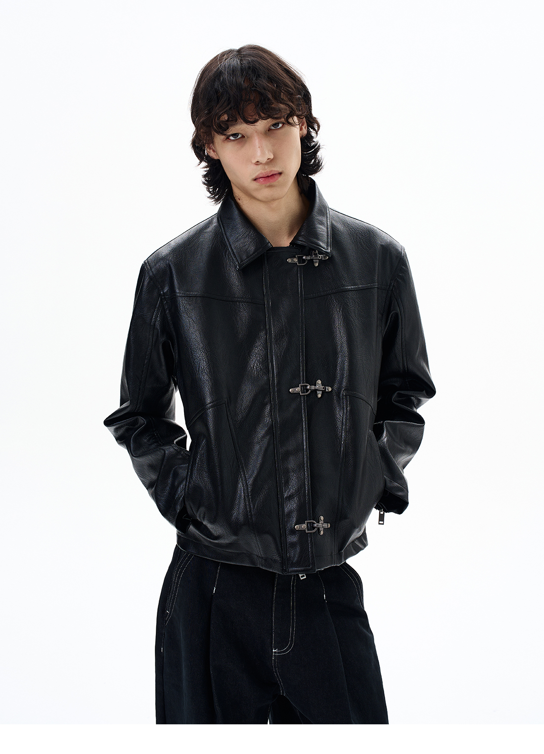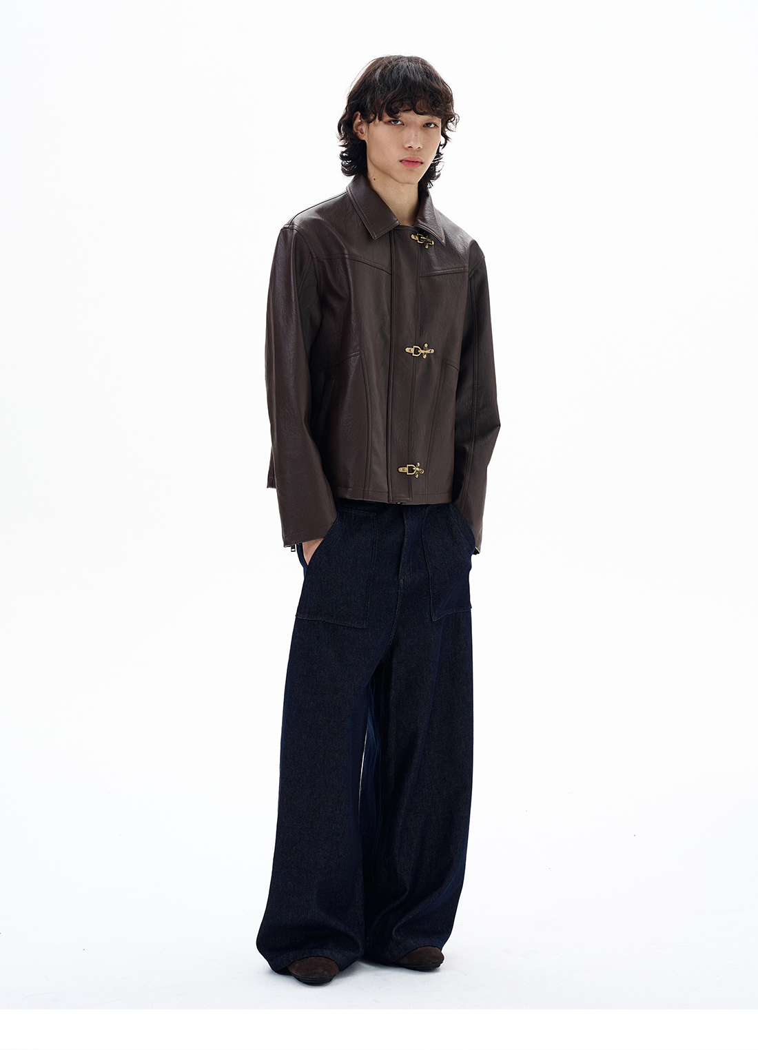 Tailang's Shop Autumn American-Style Short Brown Leather Jacket for Men with a High-End Feel, Niche Design, and Airplane Buckle Closure
