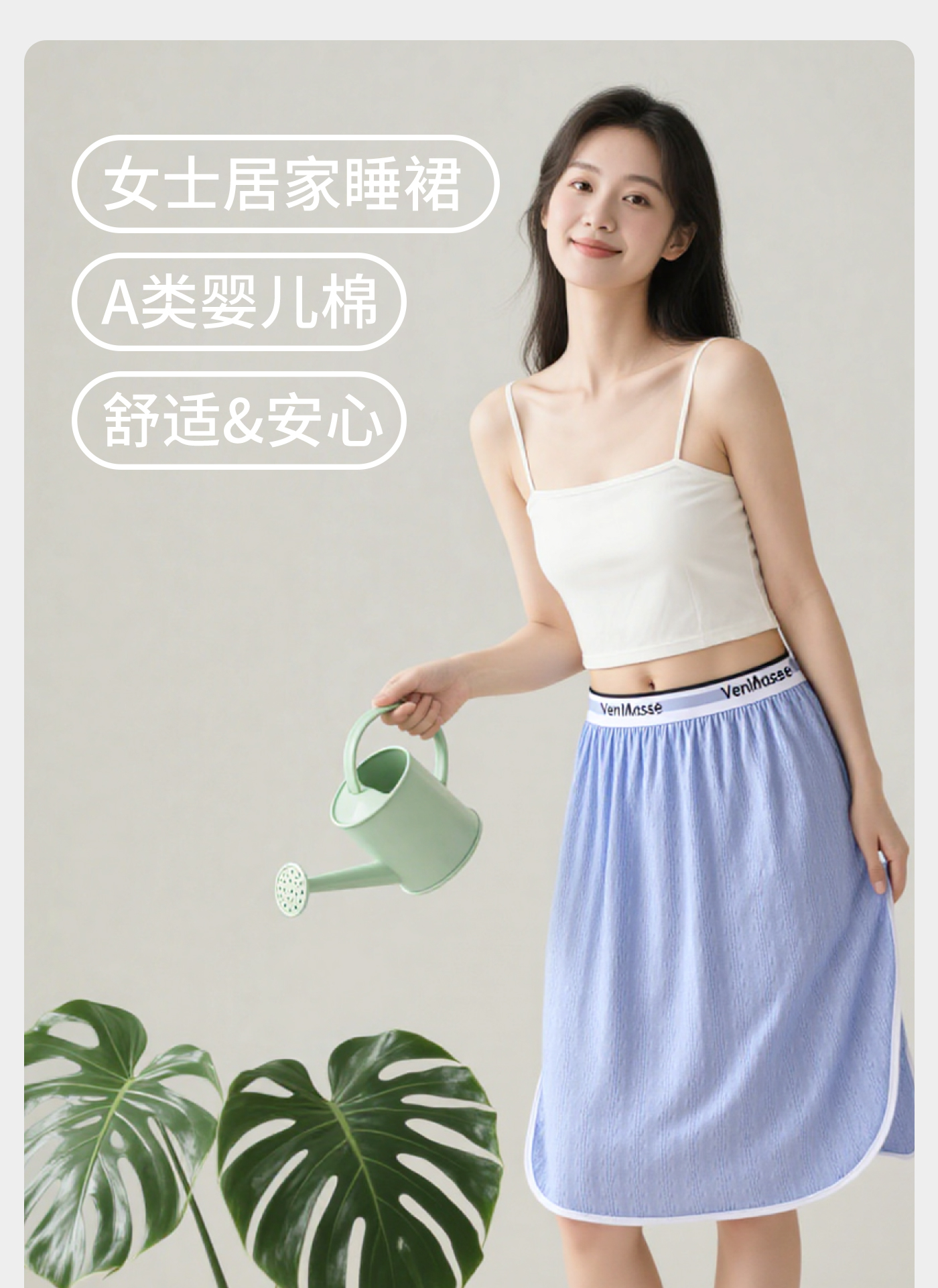 Nude Sleeping Essential: Women's Half-Body Nightgown, Pure Cotton 7A Antibacterial, Loose Crotchless Skirt Pants, Comfortable for Home, Thin and Seamless Sleep Pants