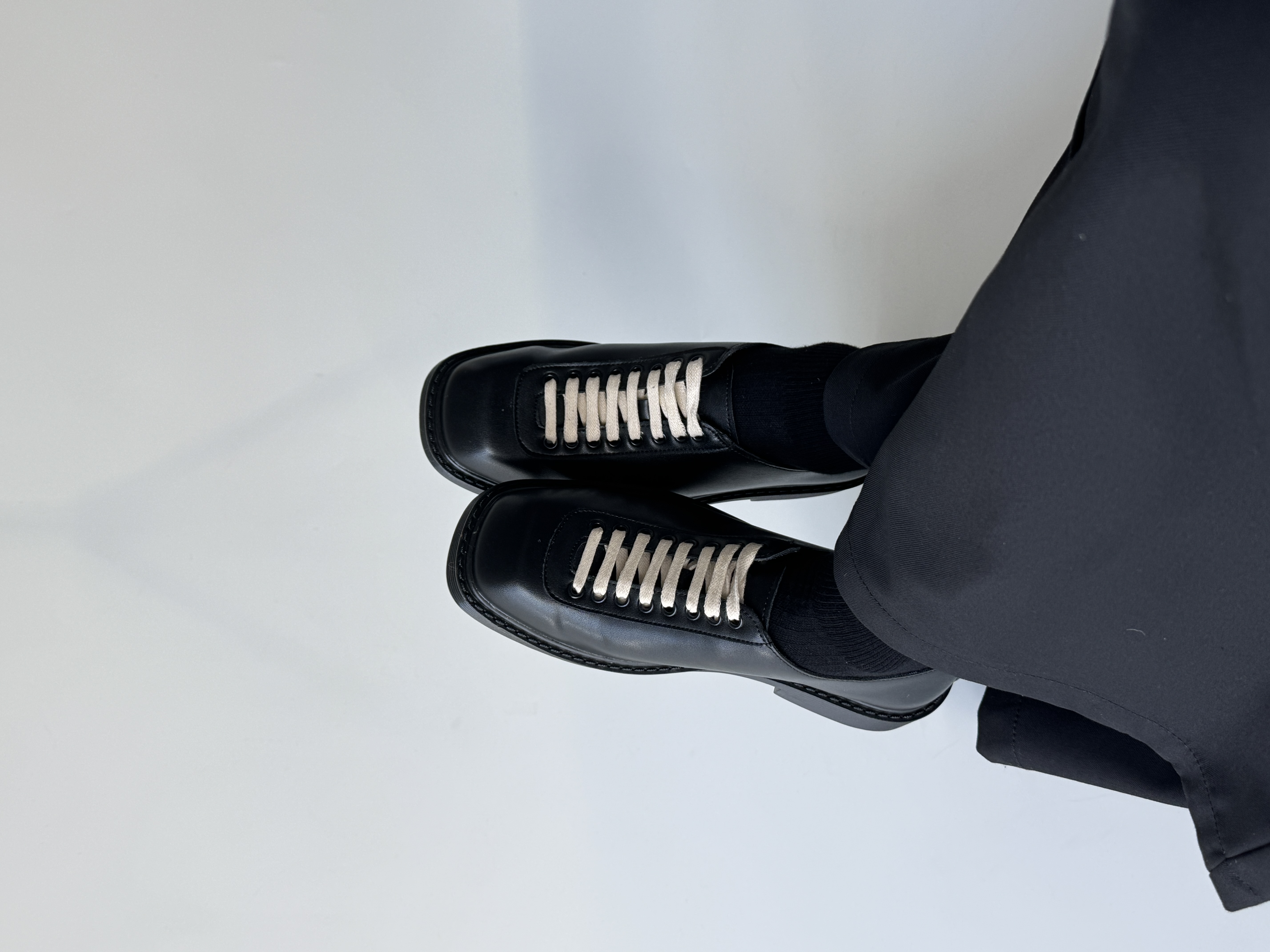 Square-Toe Black Leather Shoes for Men, Trendy Commuter Lace-Up Derby Shoes, Stylish British Style Formal Business Casual Men's Shoes