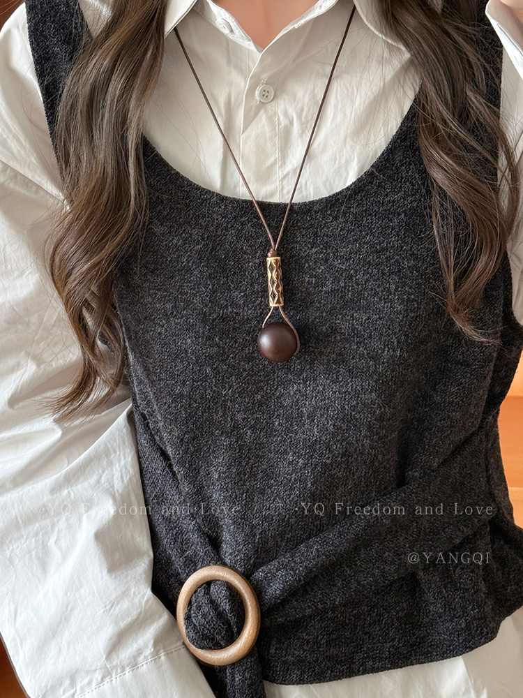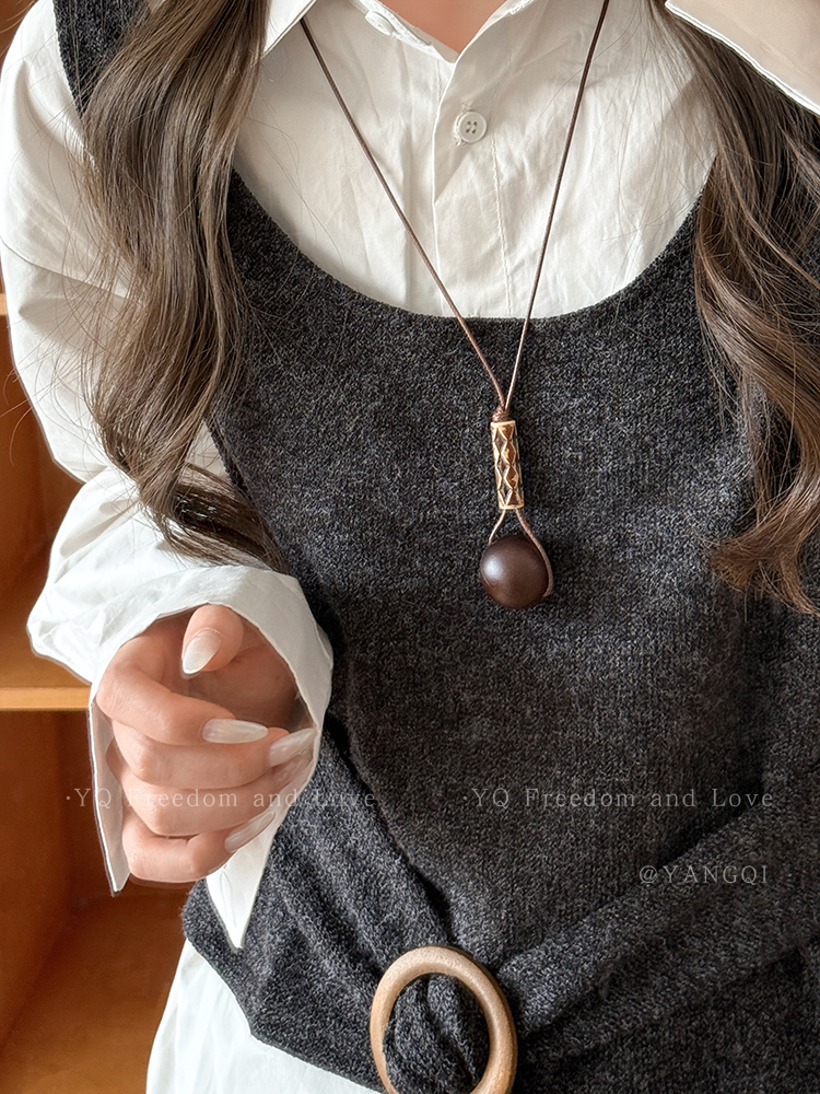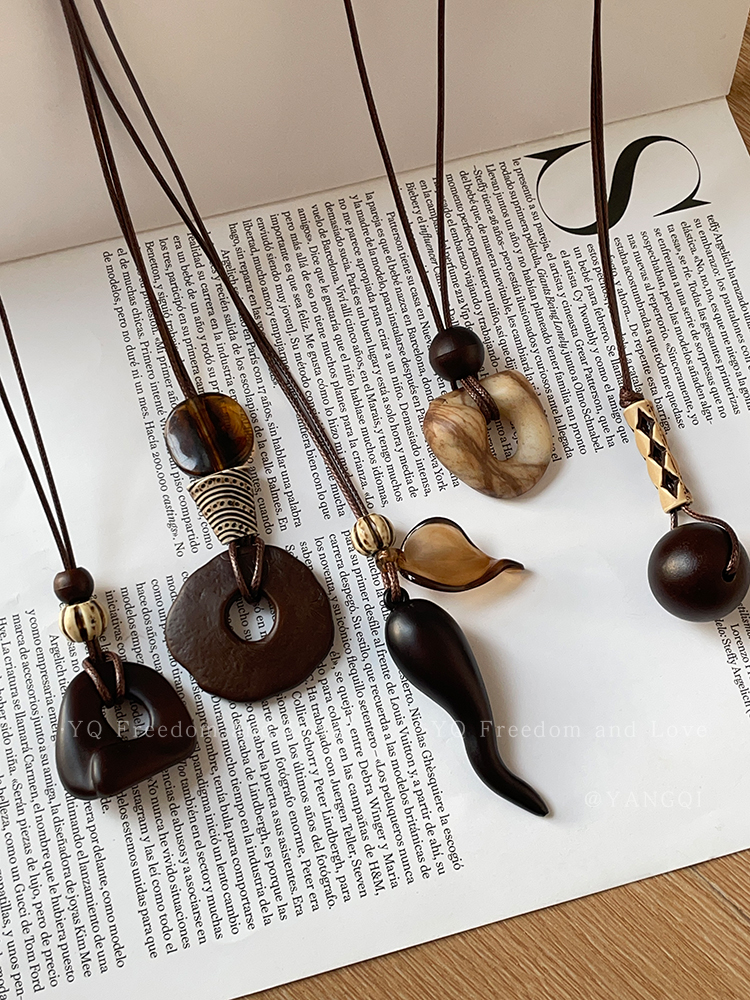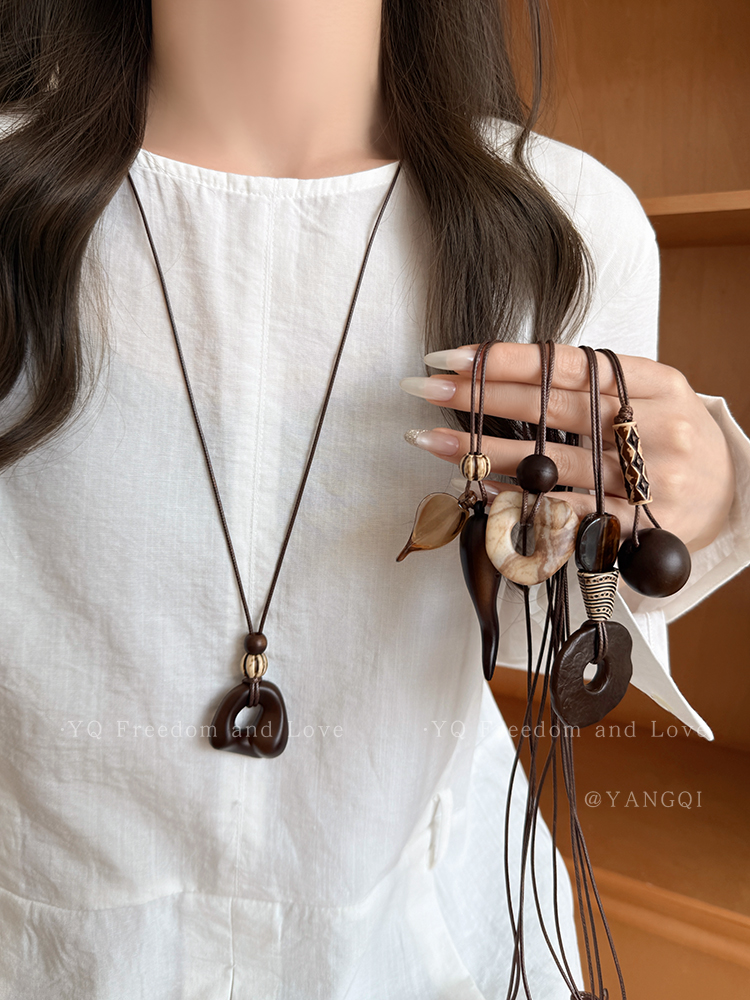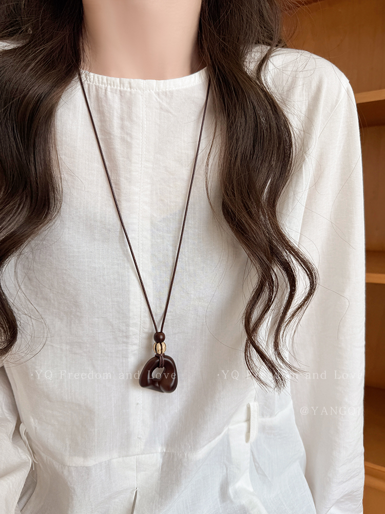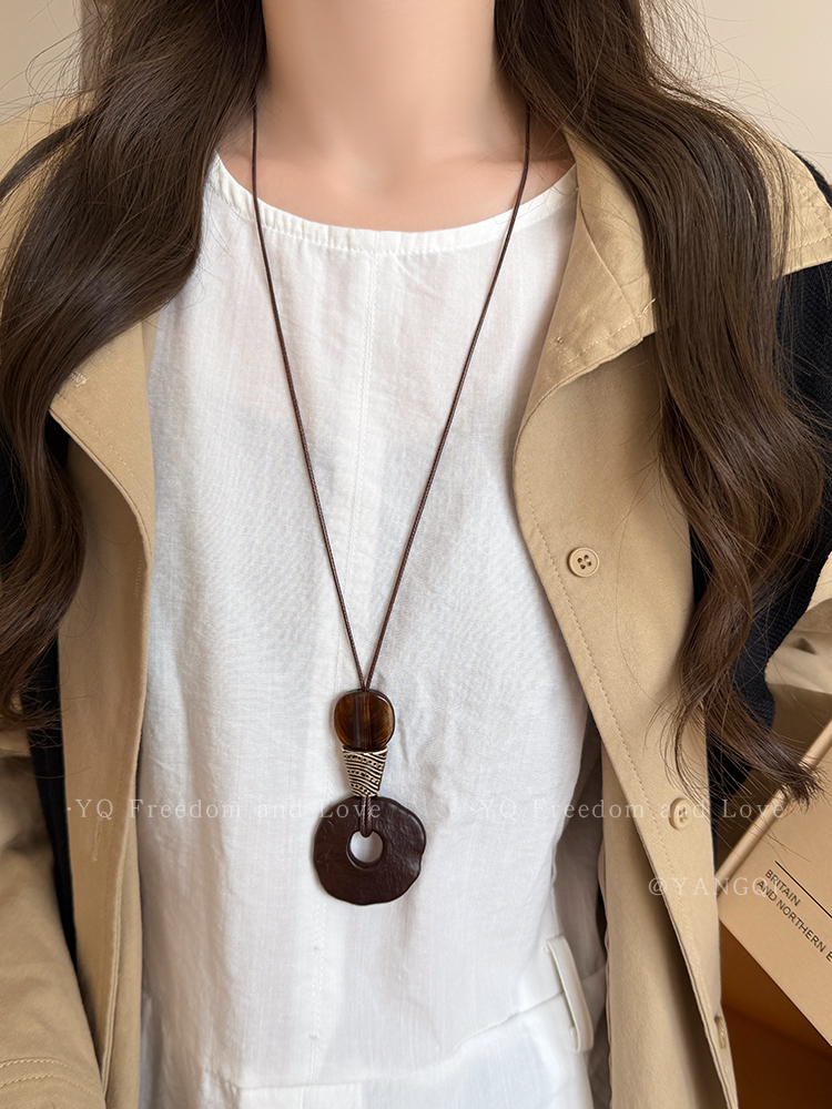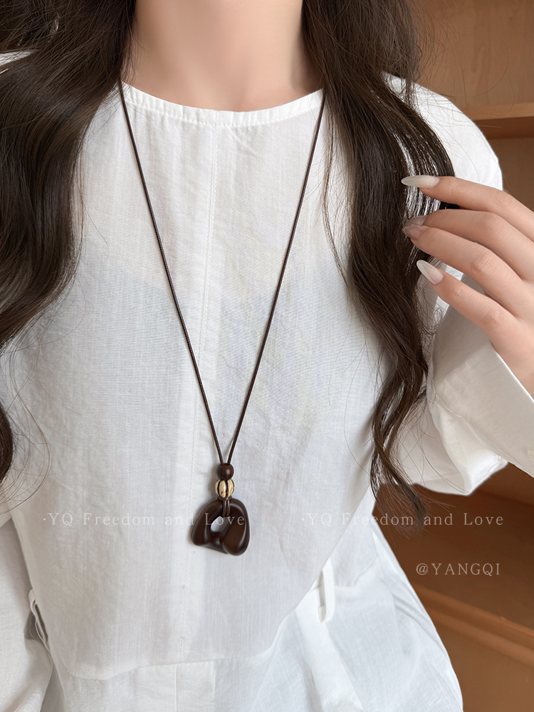 Vintage Coffee-Colored Pendant Necklace for Women, Autumn and Winter, Long Sweater Chain with a High-End Feel, Suitable for Pairing with Clothes, Neck Accessory