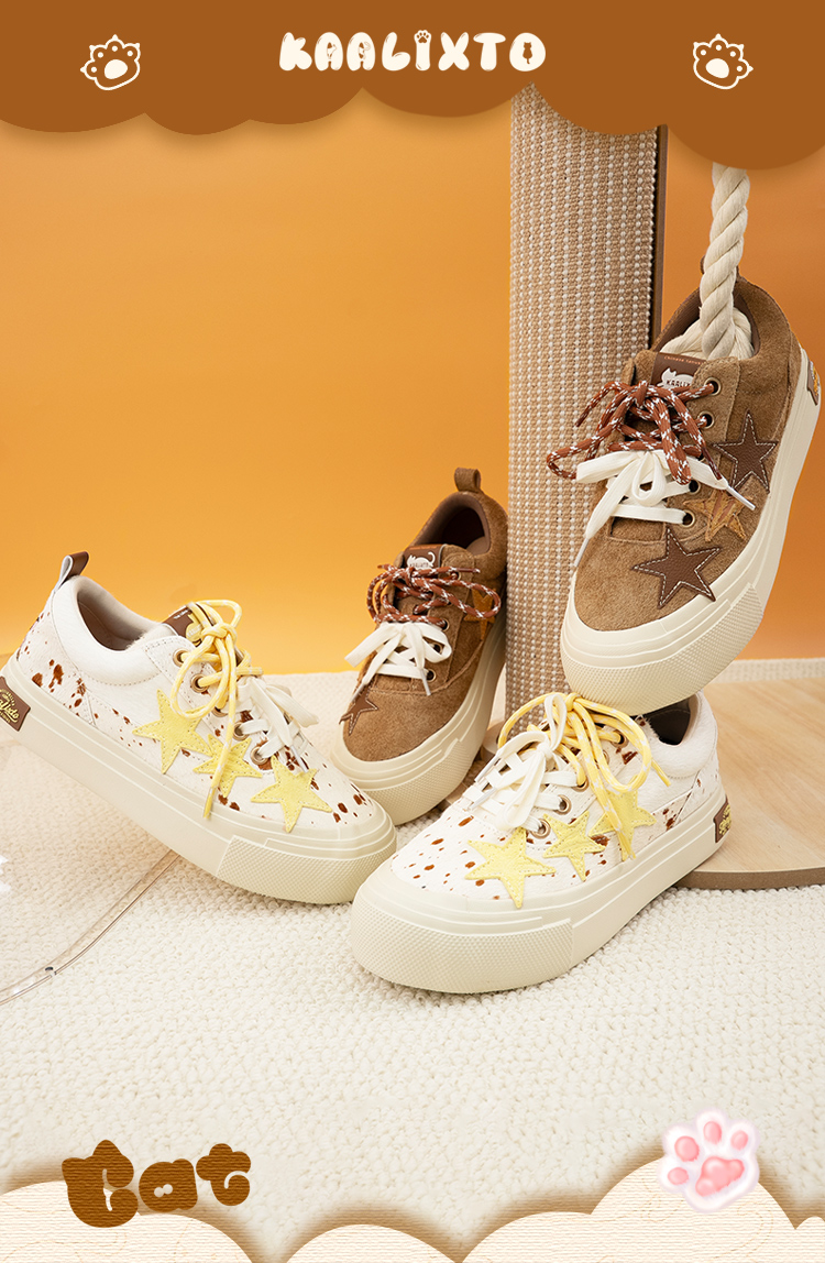 Kaalixto Animal Series Cat Style Star Shoes Canvas Shoes Thick Sole Height Increasing Lightweight Canvas Shoes Breathable Versatile