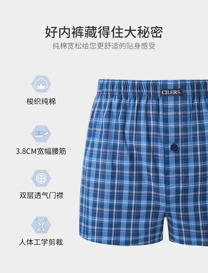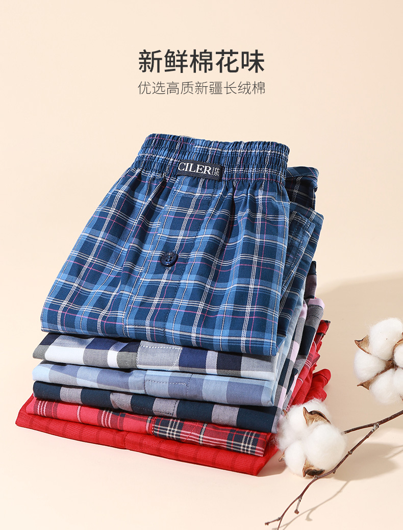 Three-Pack of Shile Men's Pure Cotton Boxer Briefs, Summer Thin Underwear, Loose Fit, Large Size, Four-Corner Shorts, Pure Cotton Boxer Briefs