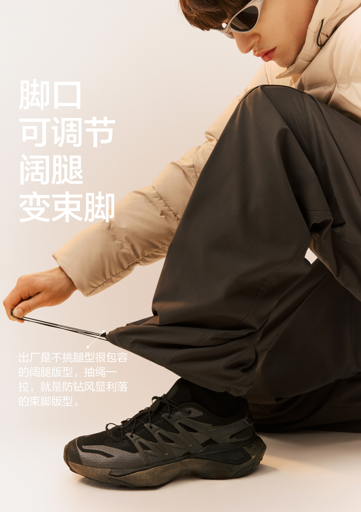 【Wang Yibo's Style】Jiao Nei Heat Leather 505+++ Men's Fleece-Lined Three-Proof Wide-Leg Functional Pants Outdoor Work Pants