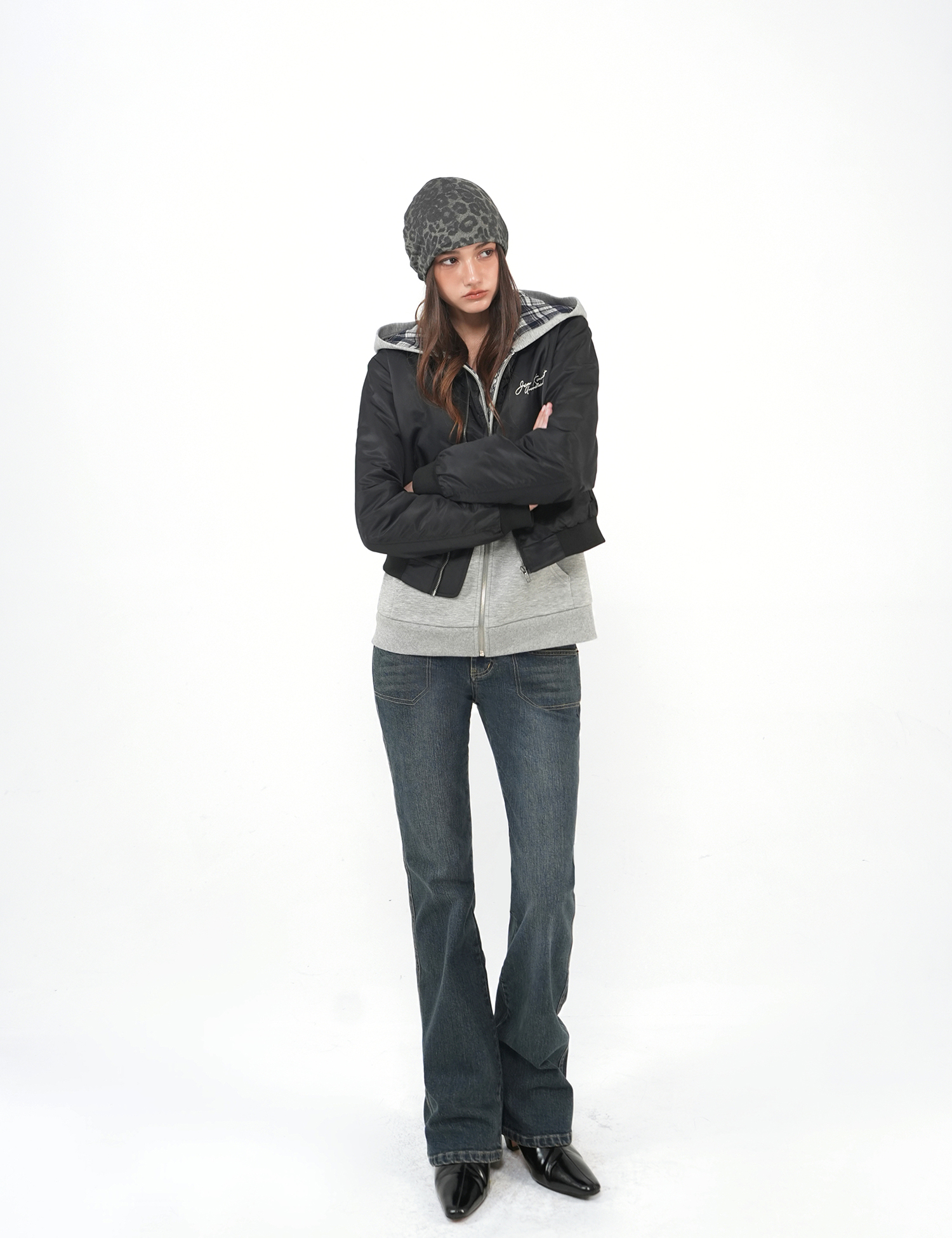 Jim Kennet Plaid Patchwork Hooded Straight Sweatshirt Jacket