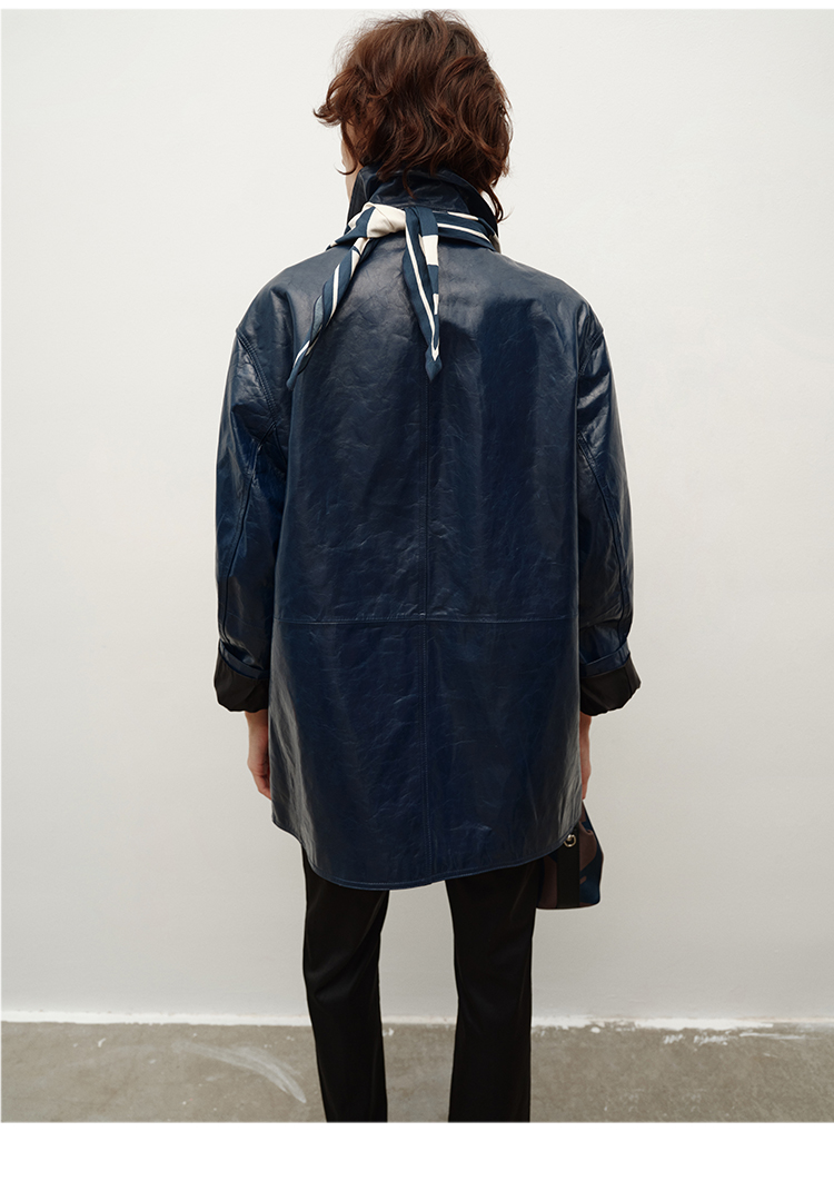 Hidemi Imported Spanish Heavy Waxed Leather Loose Coat, Vintage Lapel Trench Coat, Oversized Leather Jacket