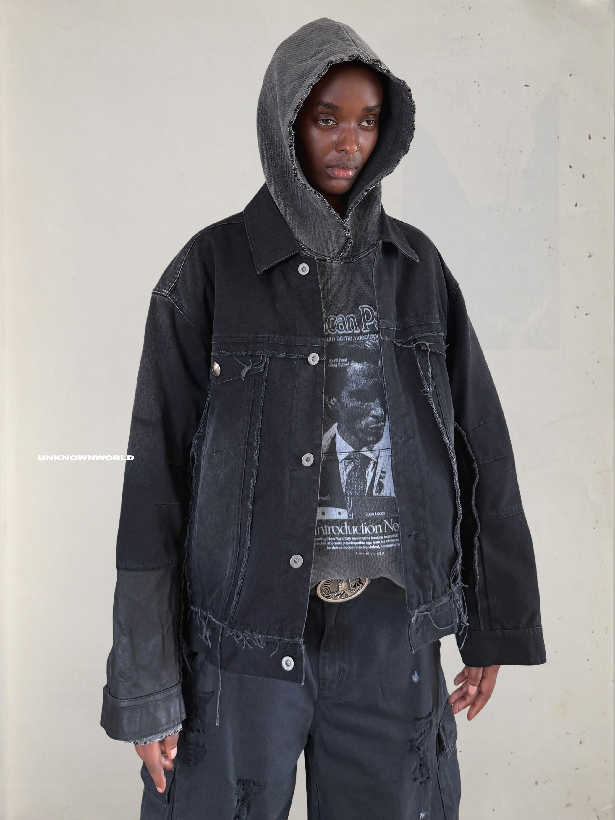 Unknownworld 25Fw Demon Season Silhouette Cut Deconstructed Raw Edge Prosthetic Leather Patchwork Washed Jacket