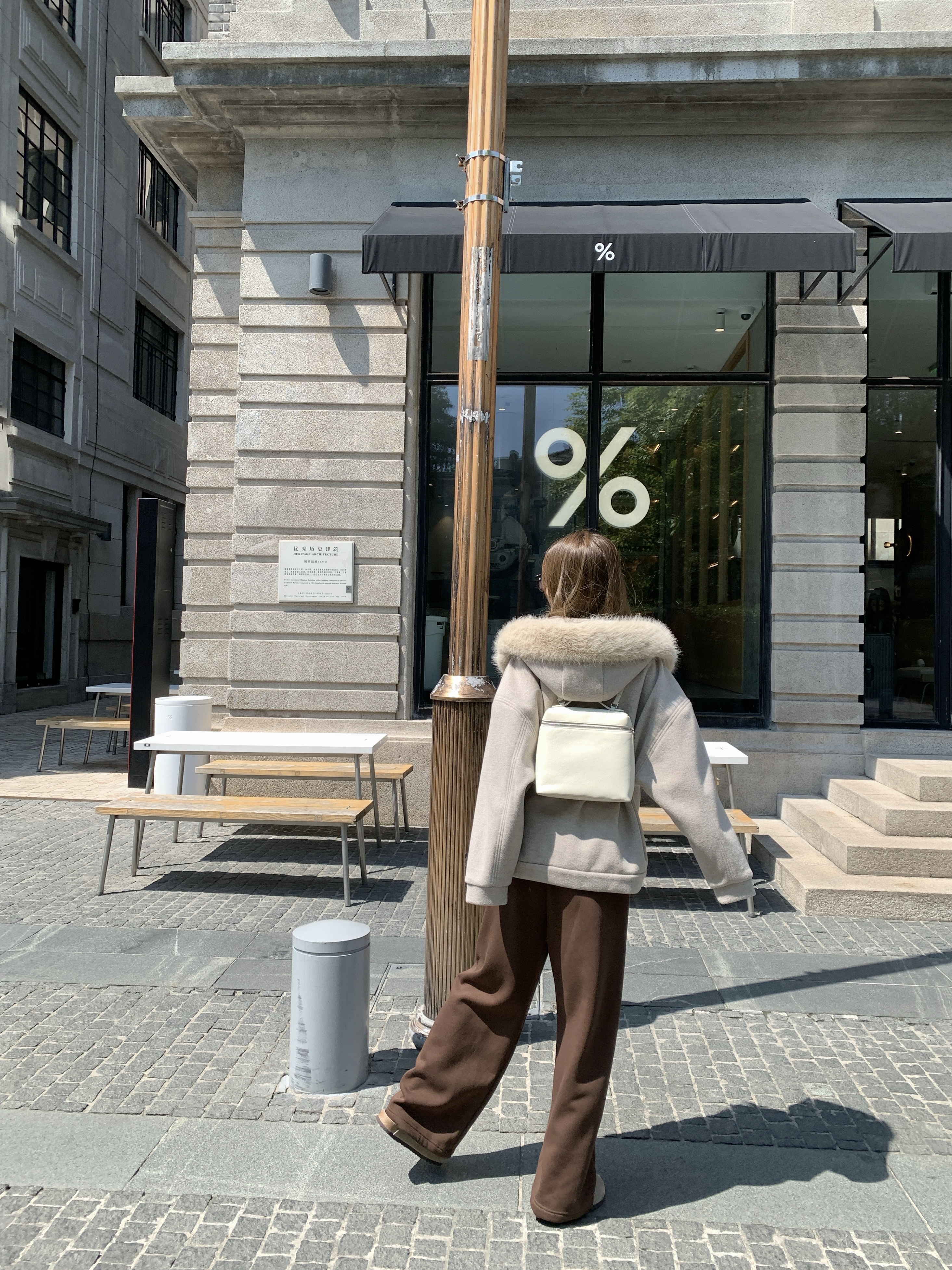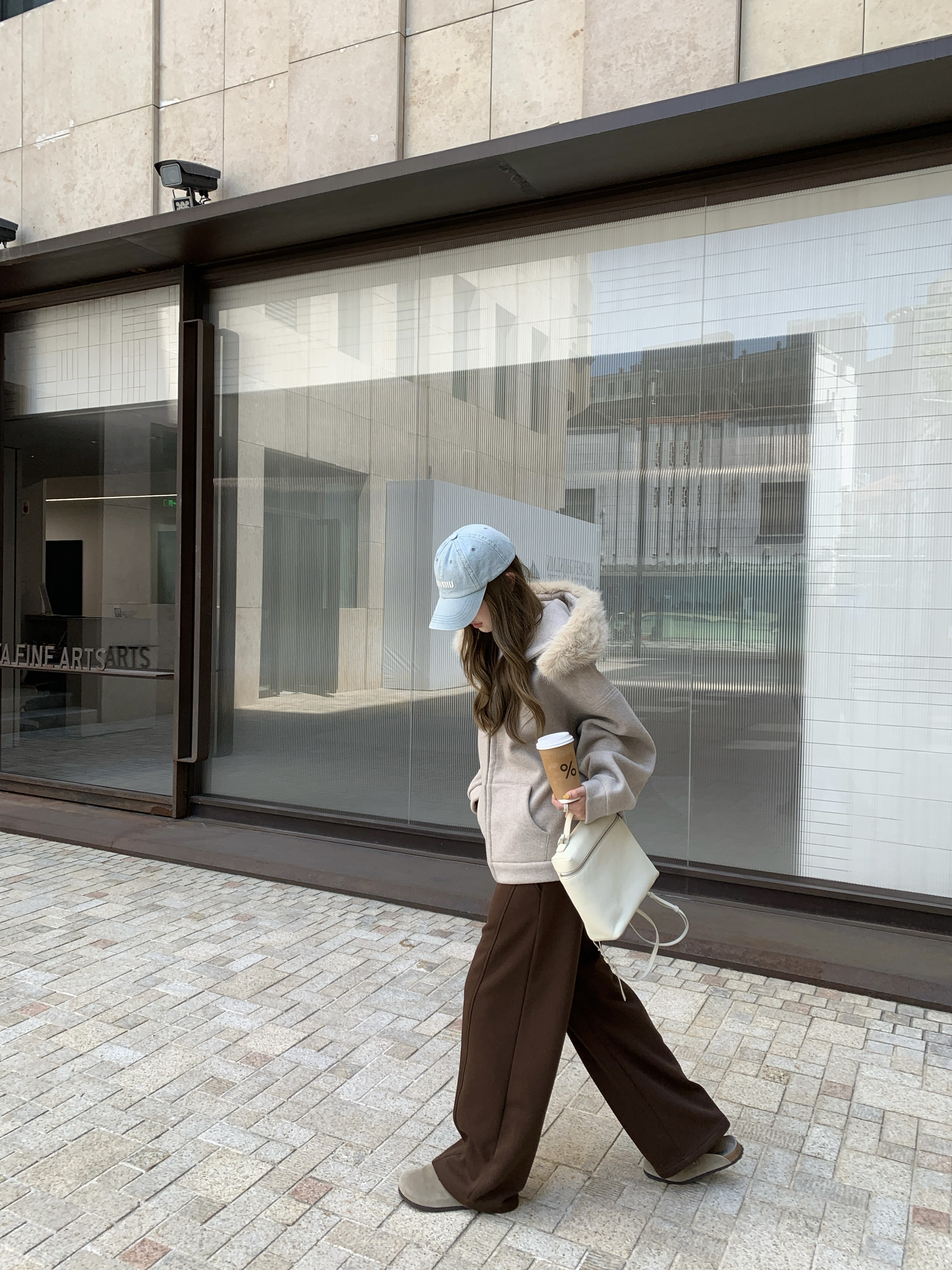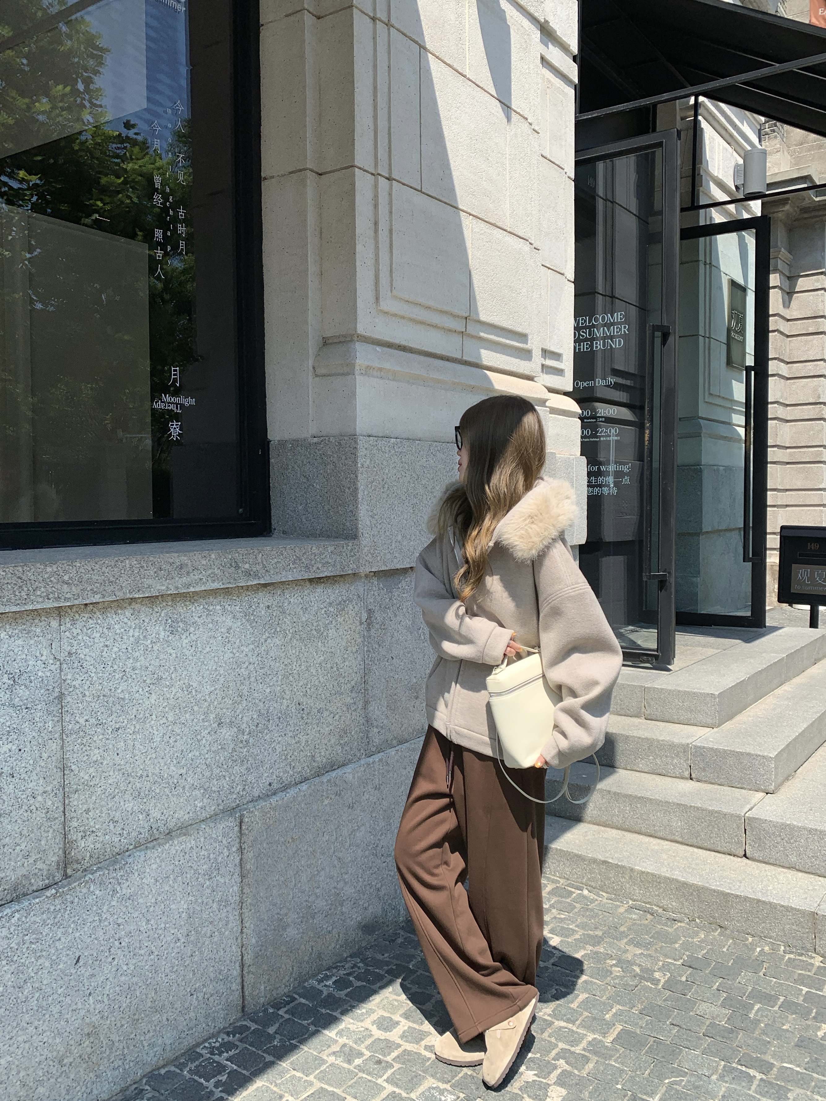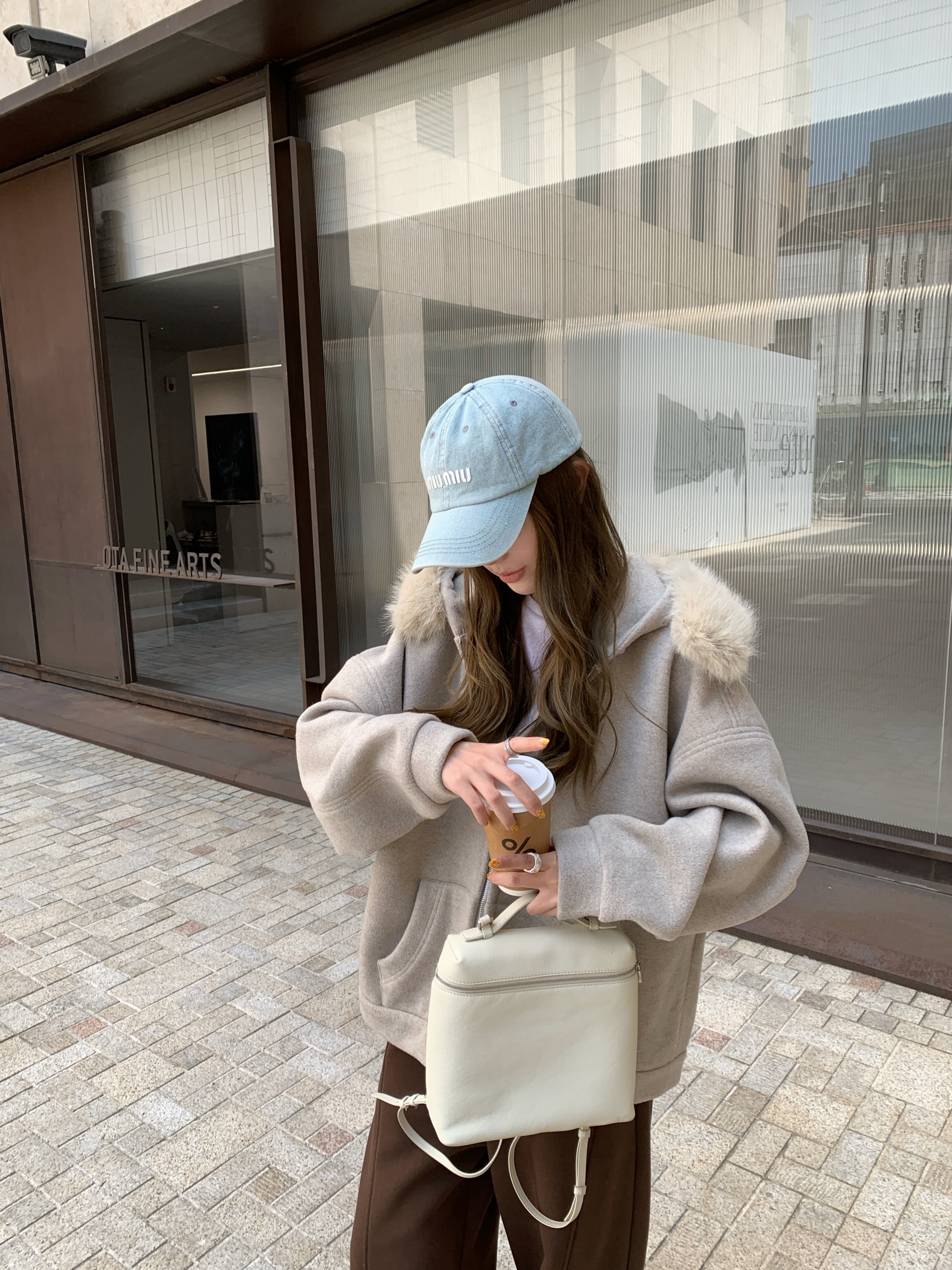 Suniriror Oatmeal Color Hooded Detachable Fur Collar Double-Sided Woolen Jacket Women's Autumn and Winter Casual Sweatshirt Cardigan