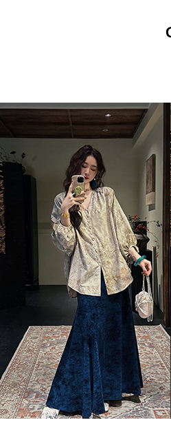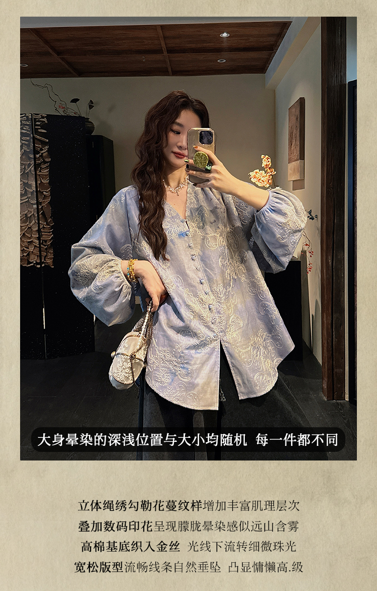 Sanzhi Heihua [Xiaoheshan] New Chinese Style Lantern Sleeve Embroidered Shirt Jacket 2025 Early Autumn Light Luxury Top
