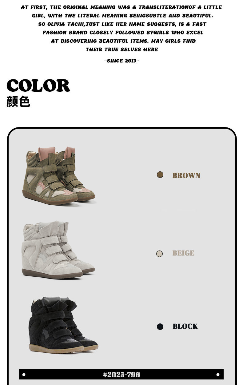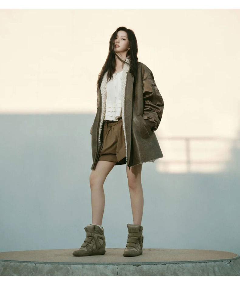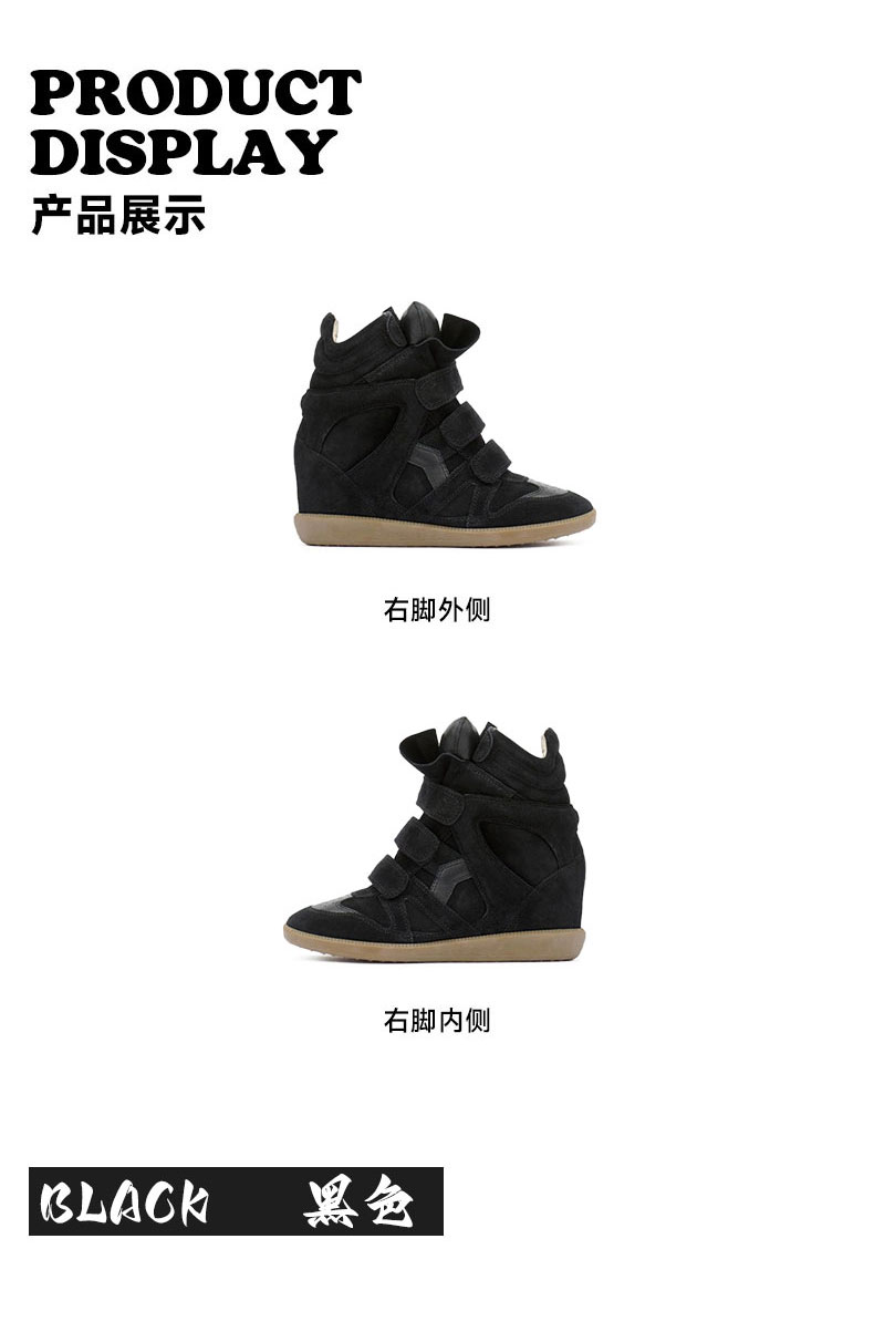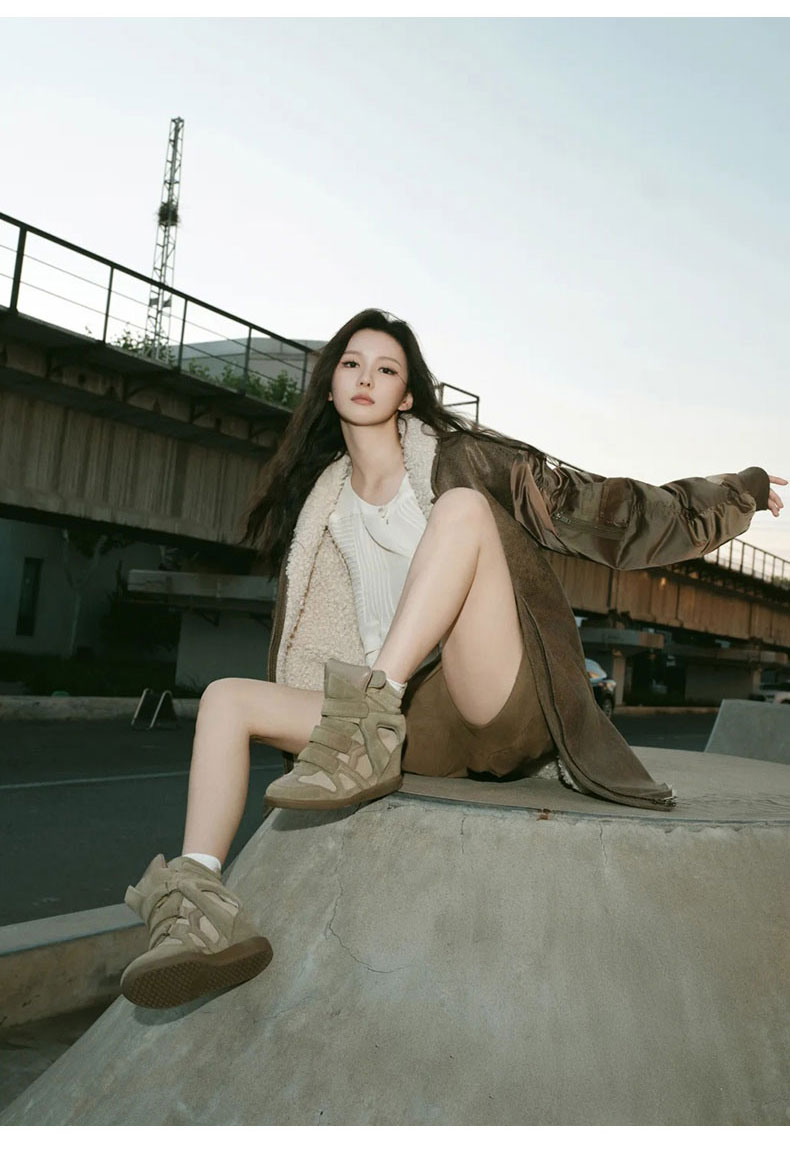 Song Yanfei's Same Style Sports Casual Shoes for Women 2025 Autumn and Winter New Retro Wedge Heel Velcro Genuine Leather High-Top Shoes
