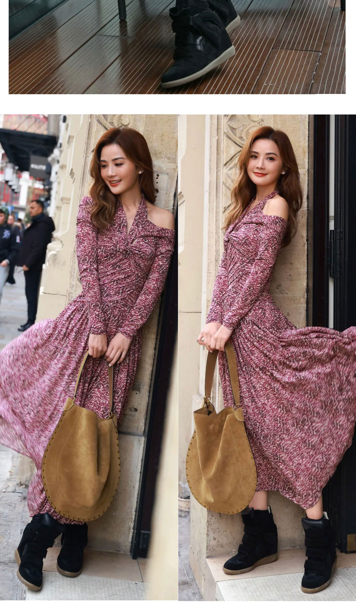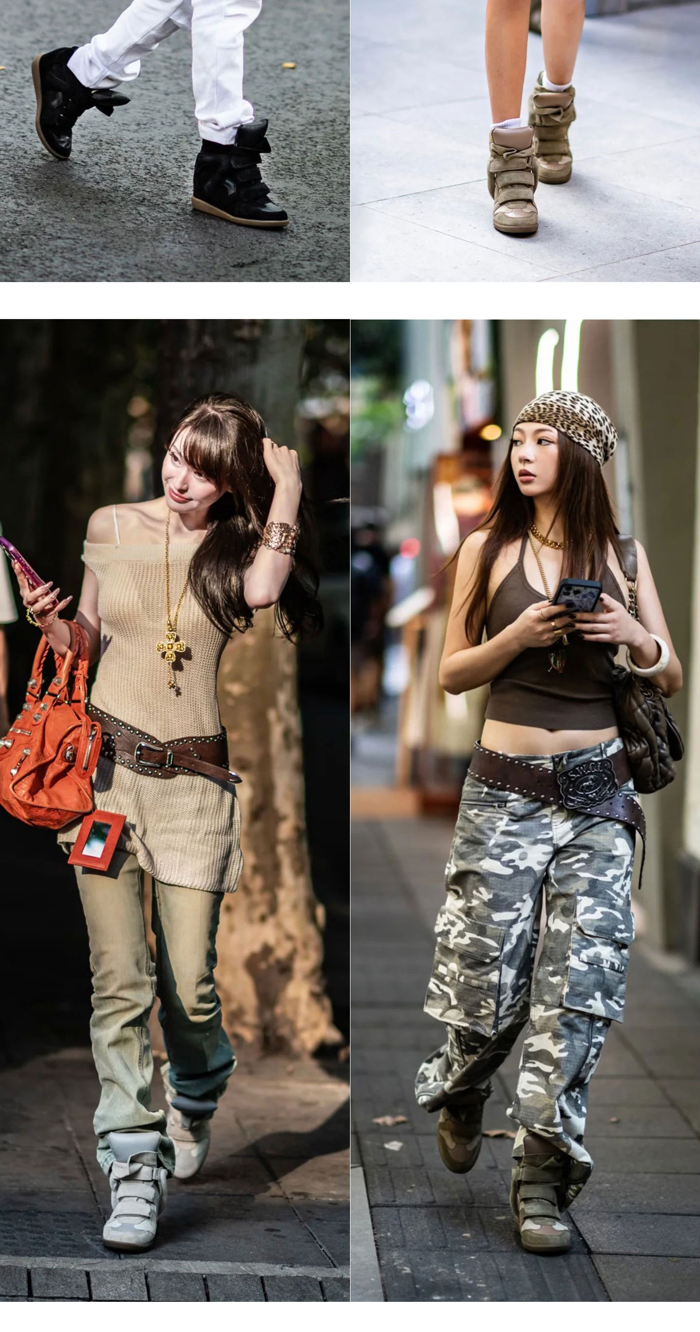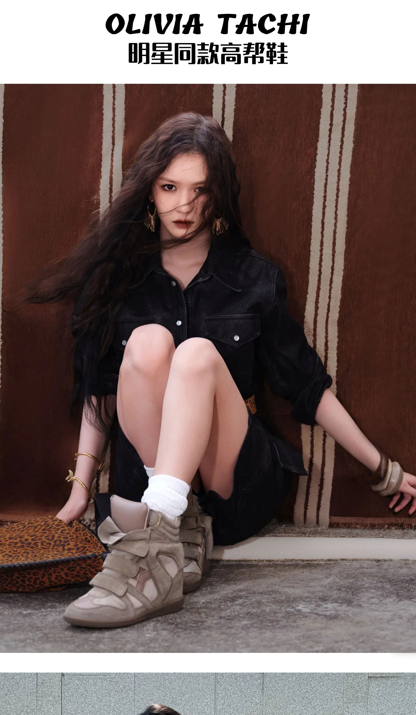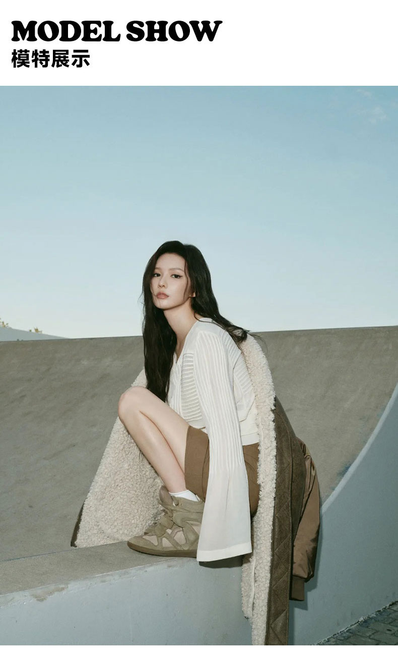 Song Yanfei's Same Style Sports Casual Shoes for Women 2025 Autumn and Winter New Retro Wedge Heel Velcro Genuine Leather High-Top Shoes