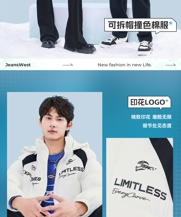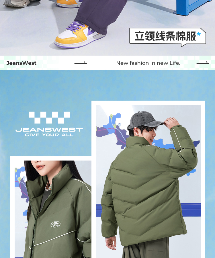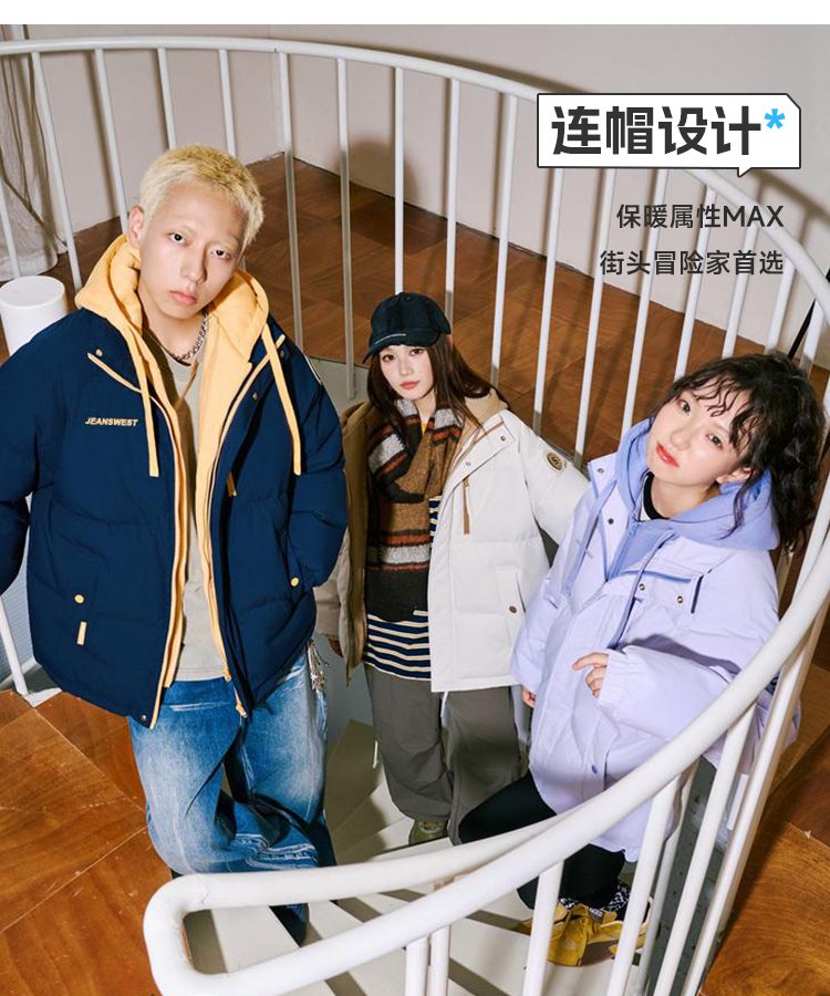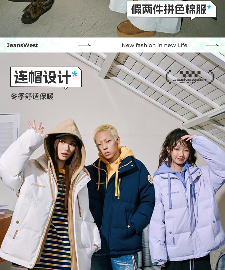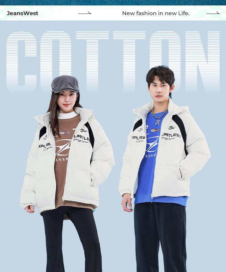 【Wang Yibo's Style】Jeanswest Faux Two-Piece Cotton Jacket for Men and Women, 2025 Winter New American-Style Color-Blocked Coat