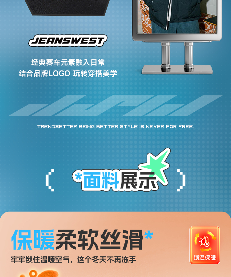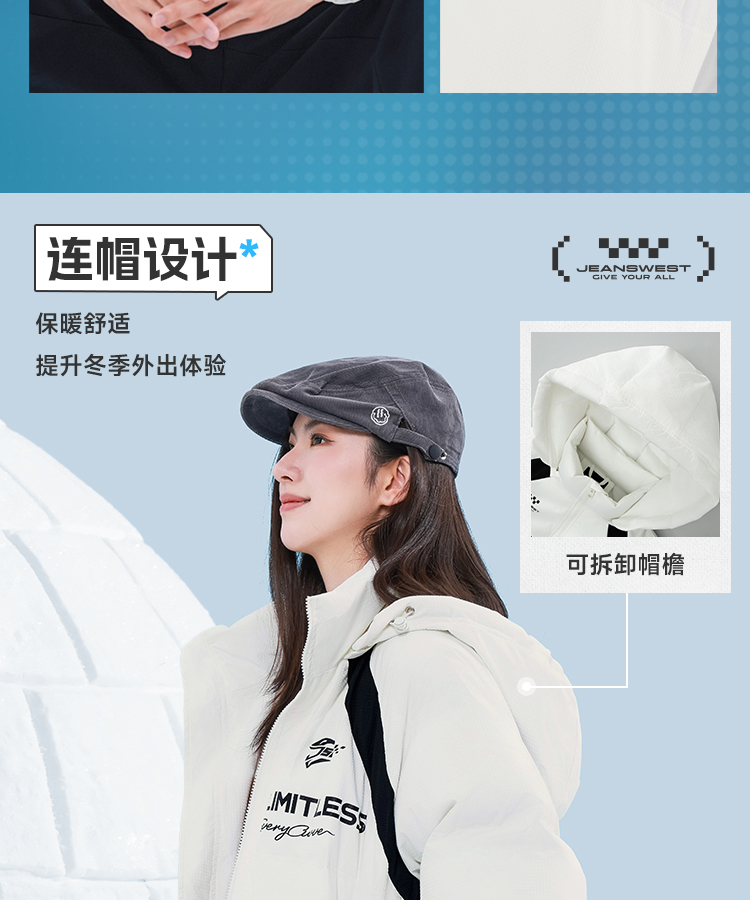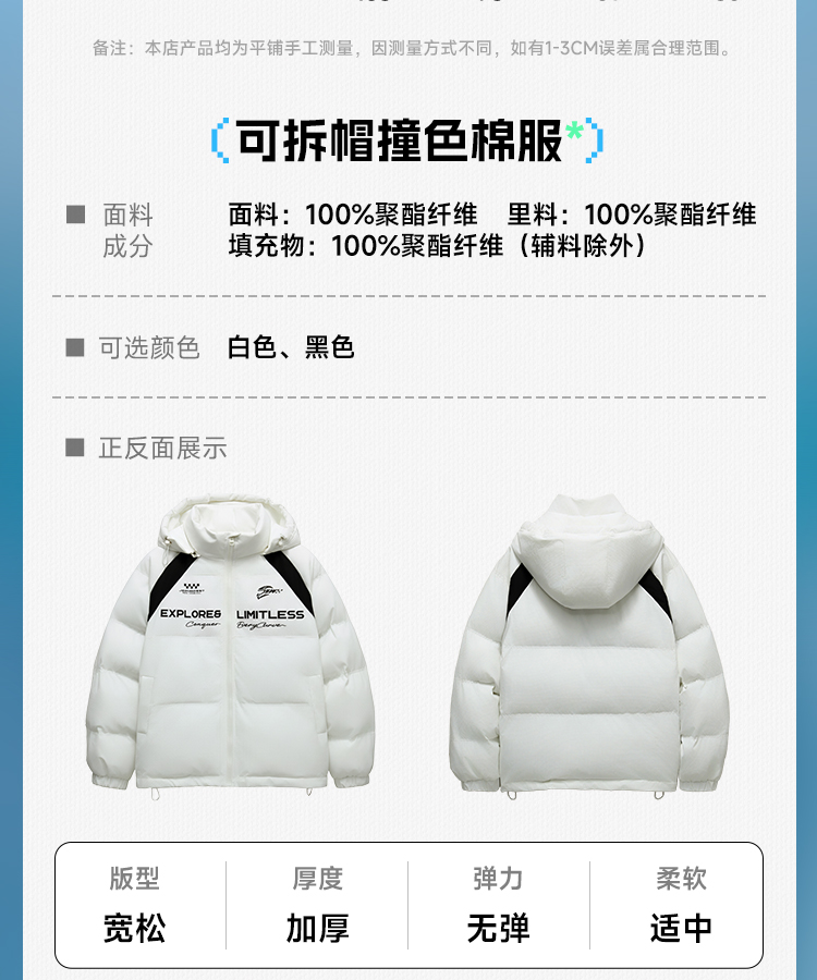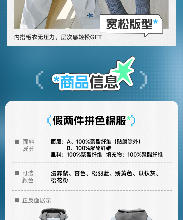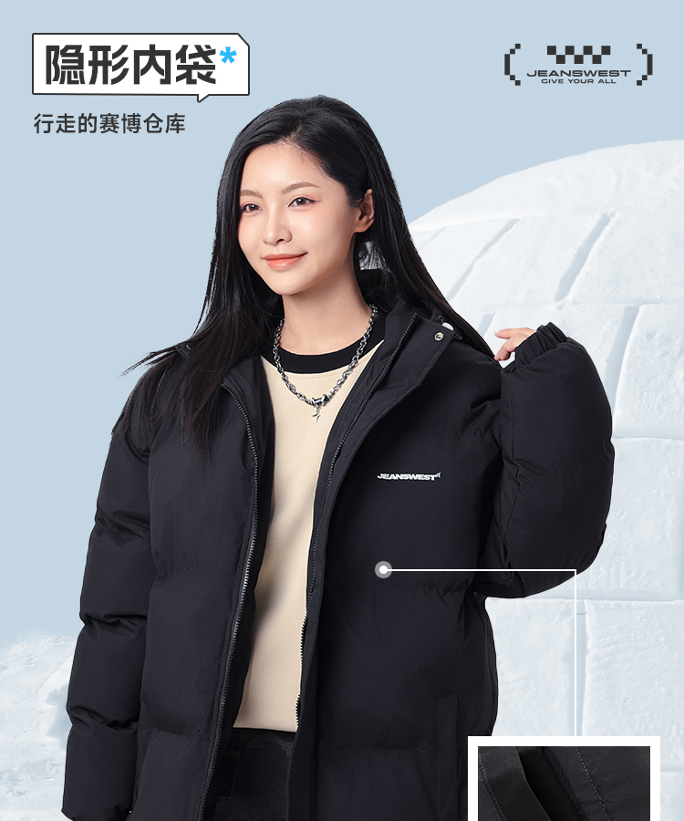 【Wang Yibo's Style】Jeanswest Faux Two-Piece Cotton Jacket for Men and Women, 2025 Winter New American-Style Color-Blocked Coat