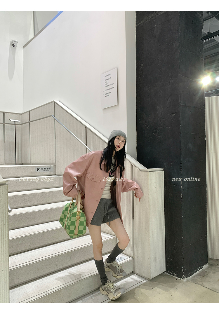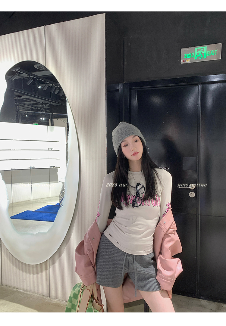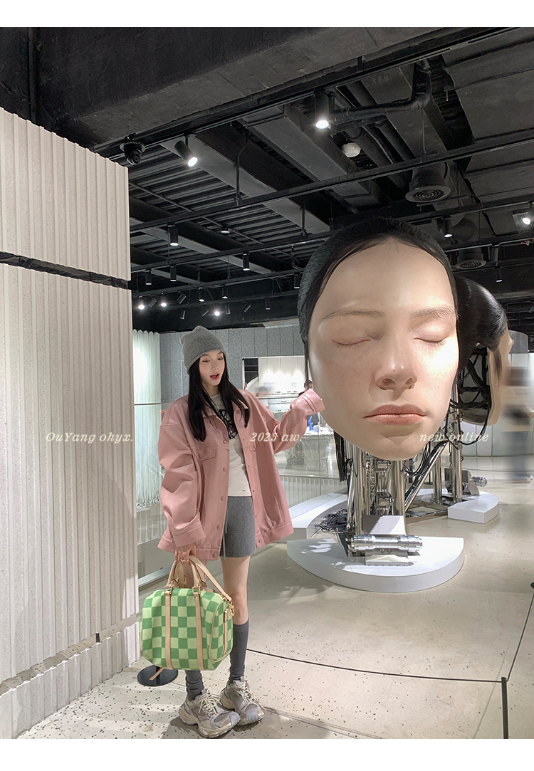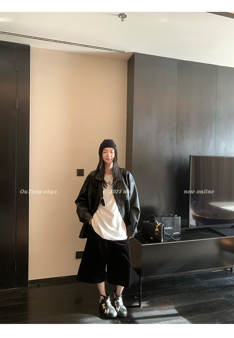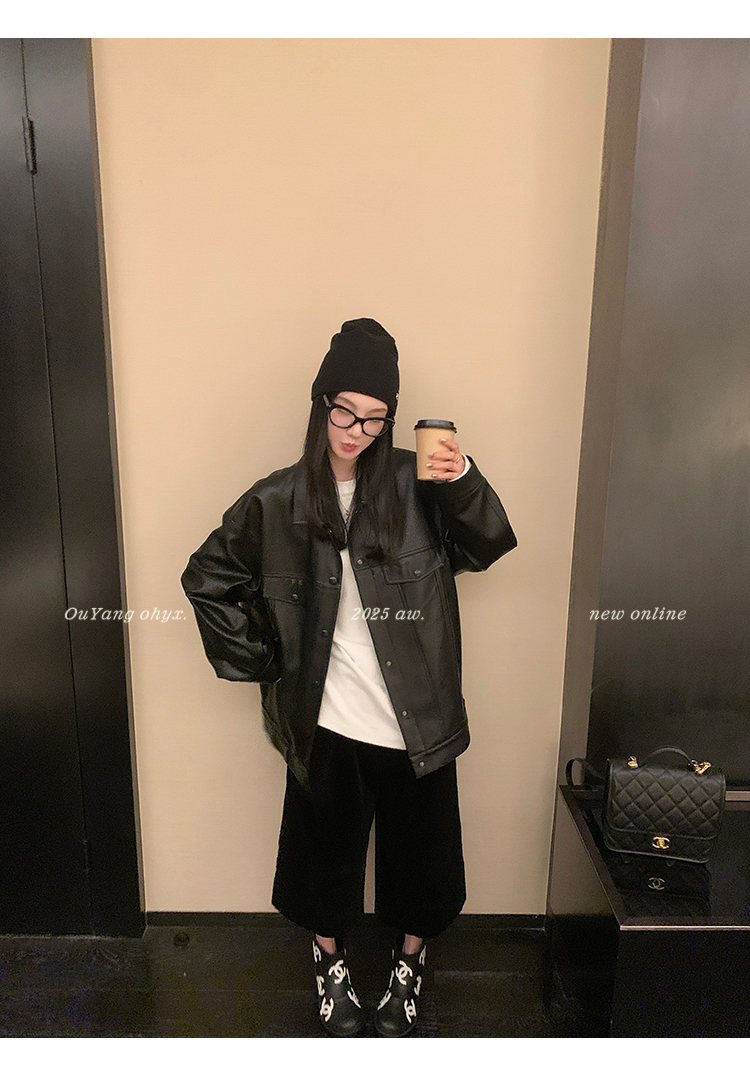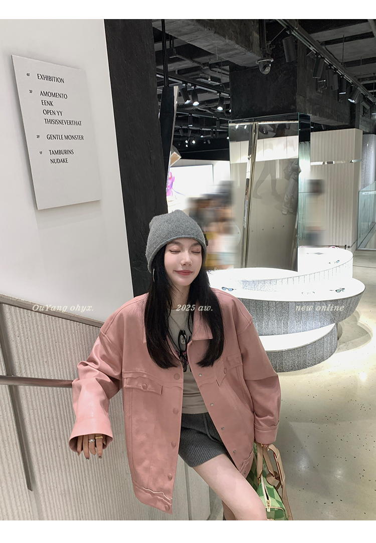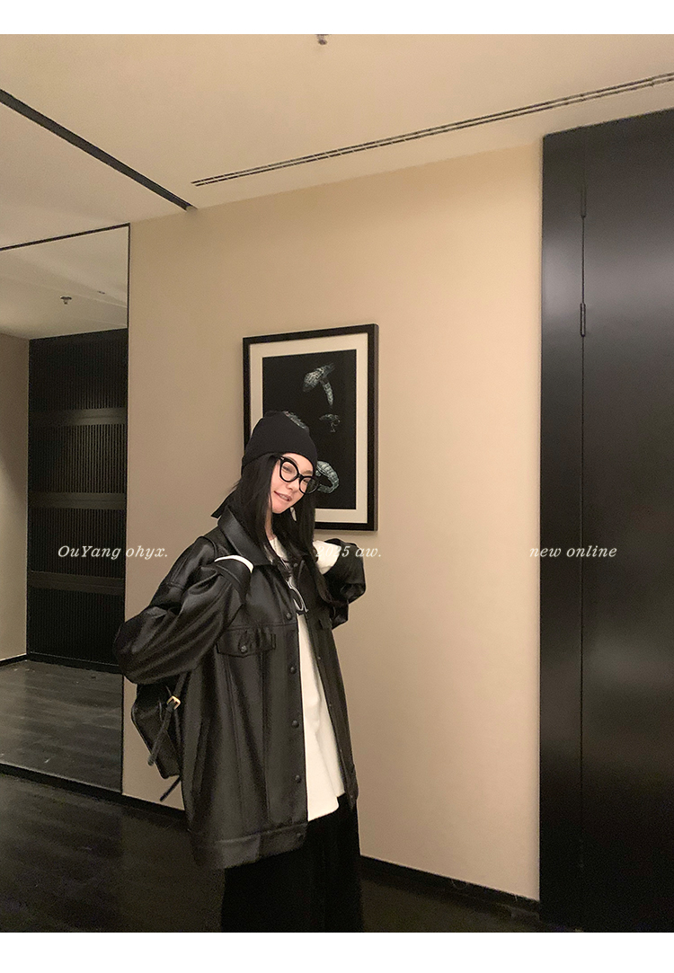 袖口、下摆、前片不规则锯齿状皮条拼接
