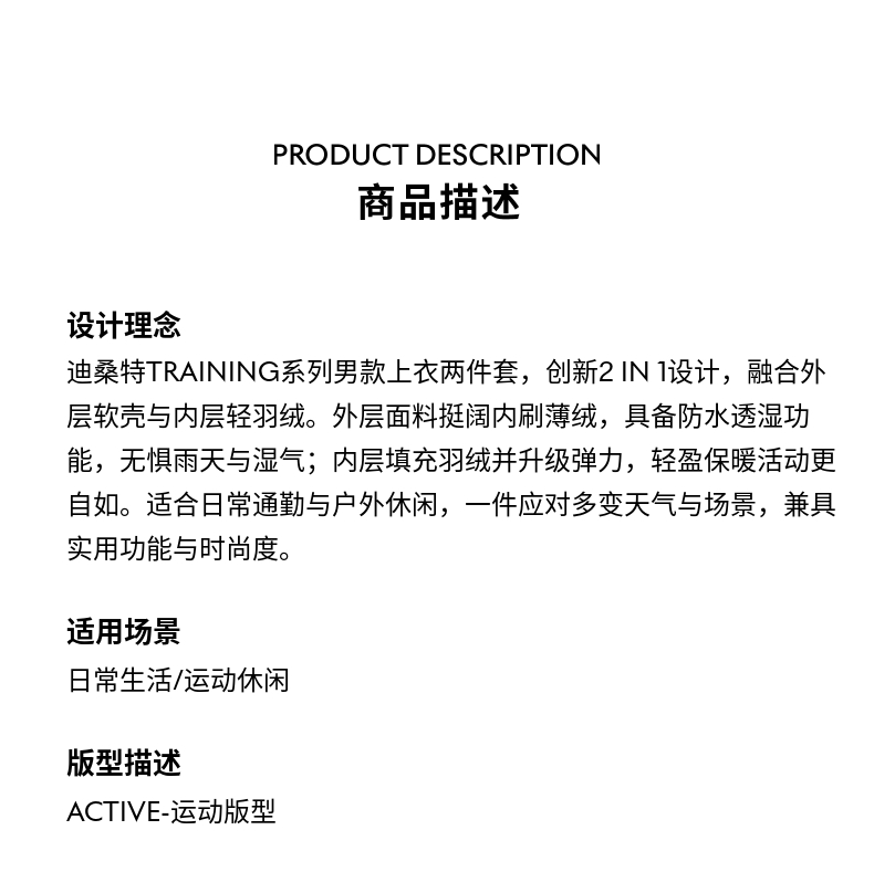 Descente Desante Lightweight down Inner Layer Soft Shell Outer Layer Men's Waterproof and Breathable Three-In-One Top Two-Piece Set
