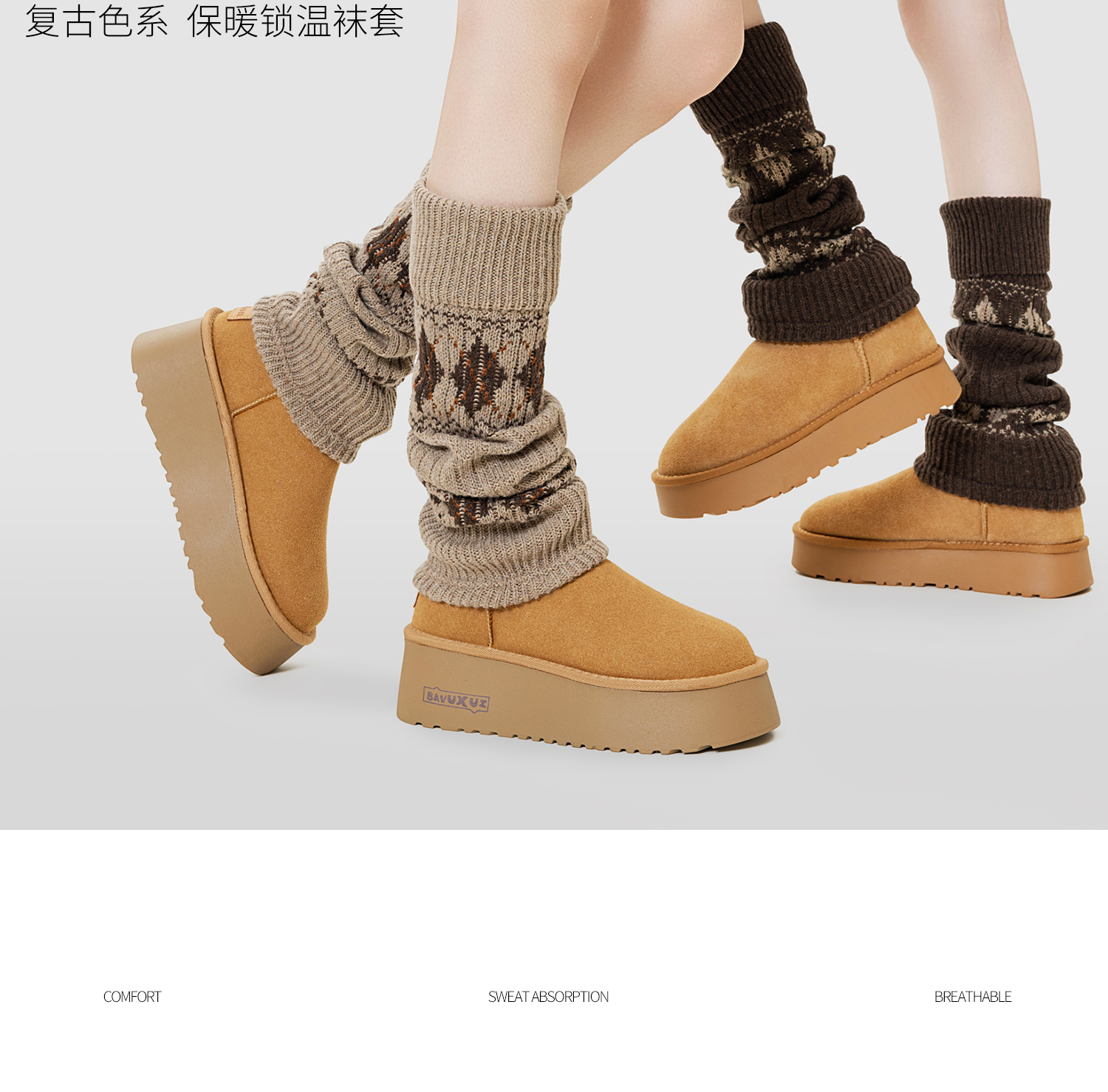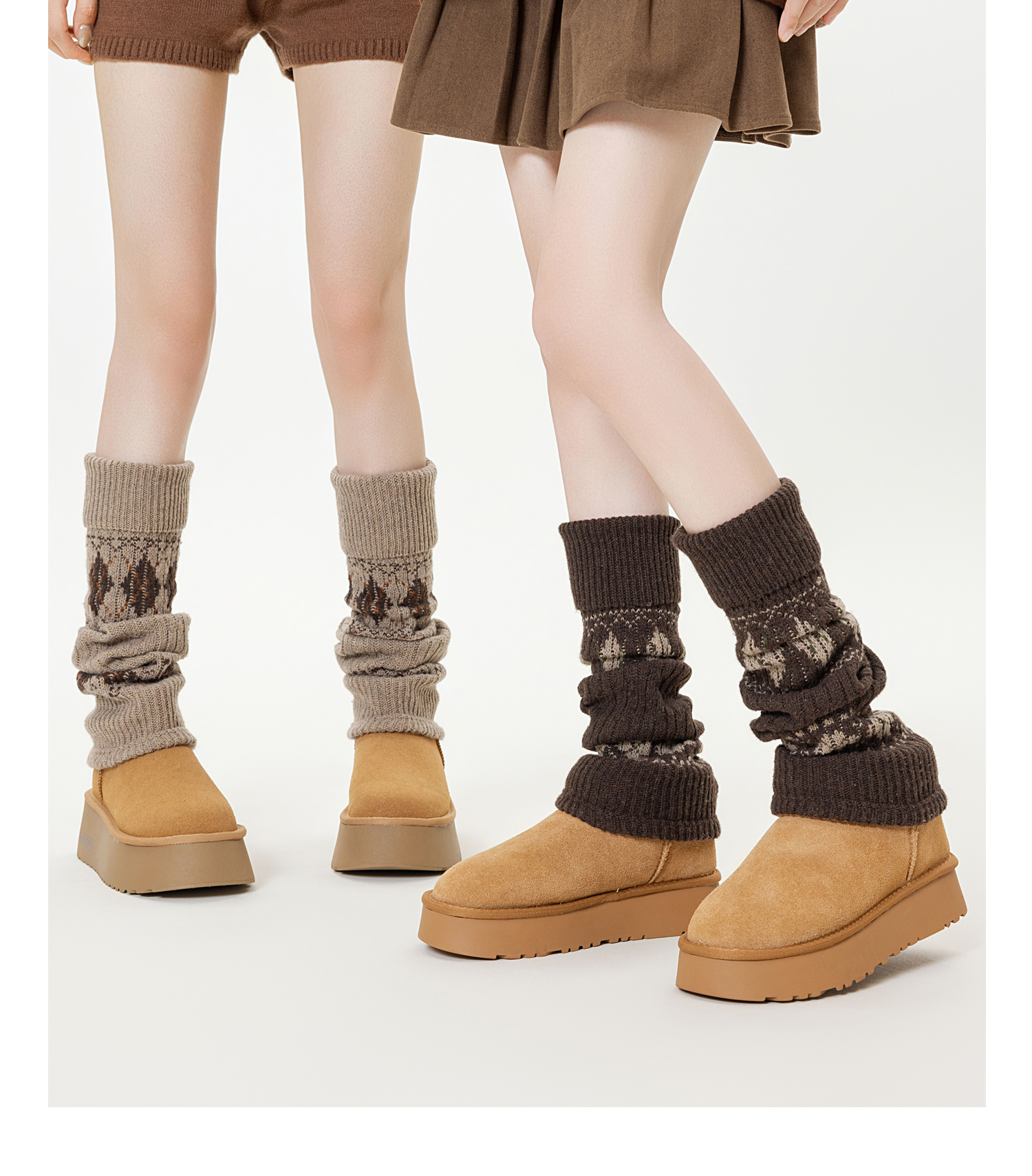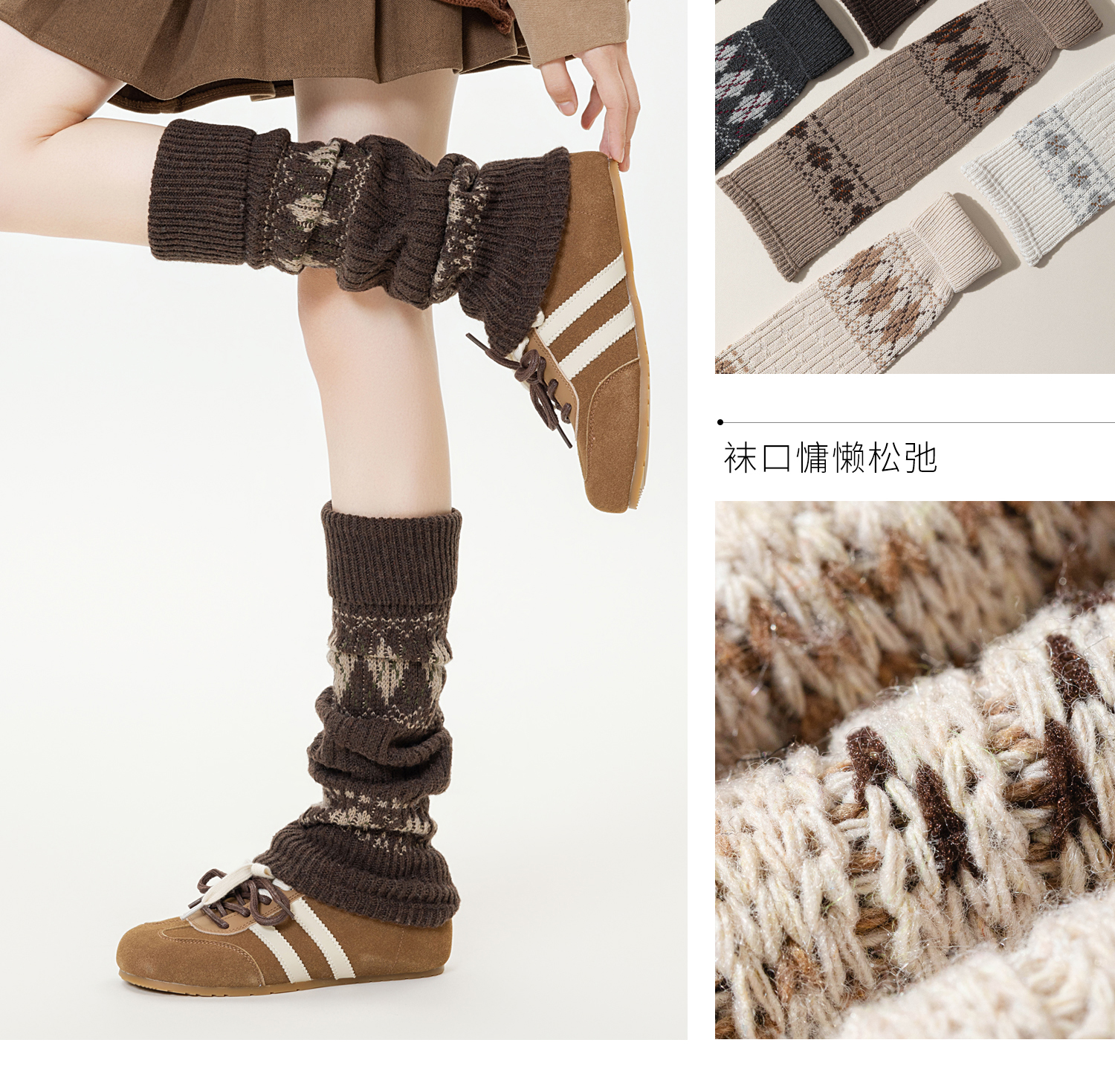 Wool Sock Covers for Autumn and Winter, Fair Isle Style, Suitable for Pairing with Snow Boots, Y2K Calf Socks for Women, Warm Leg Warmers, Mid-Calf Leg Covers