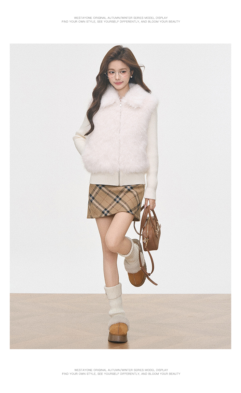10.7 New Product Westayone Furry Knitted Cotton Jacket Women's 2025 New Style + Short Skirt + Raw Leather