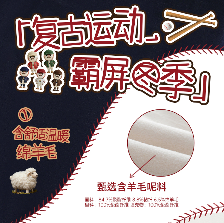 Bjhg Reckless Quilted Baseball Jacket Thick Coat Cotton Jacket Men's Winter American Style Sports Cotton Coat Wool Top Women's