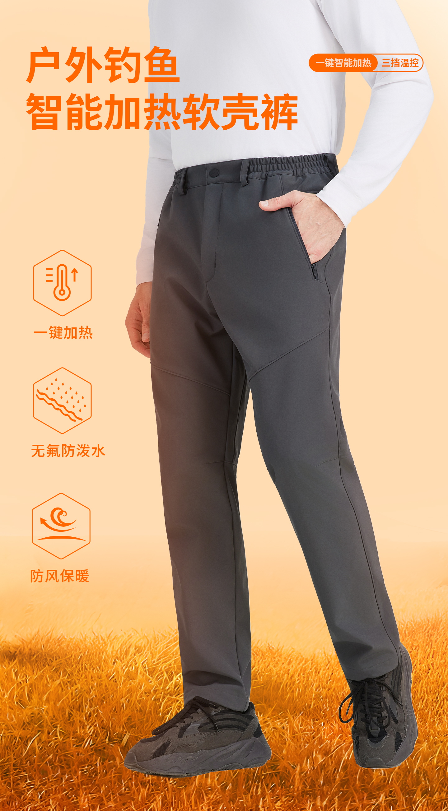 Amadeus Heated Softshell Pants for Men, Outdoor Fleece-Lined, Thickened, Waterproof, Warm, Autumn and Winter Hiking Pants
