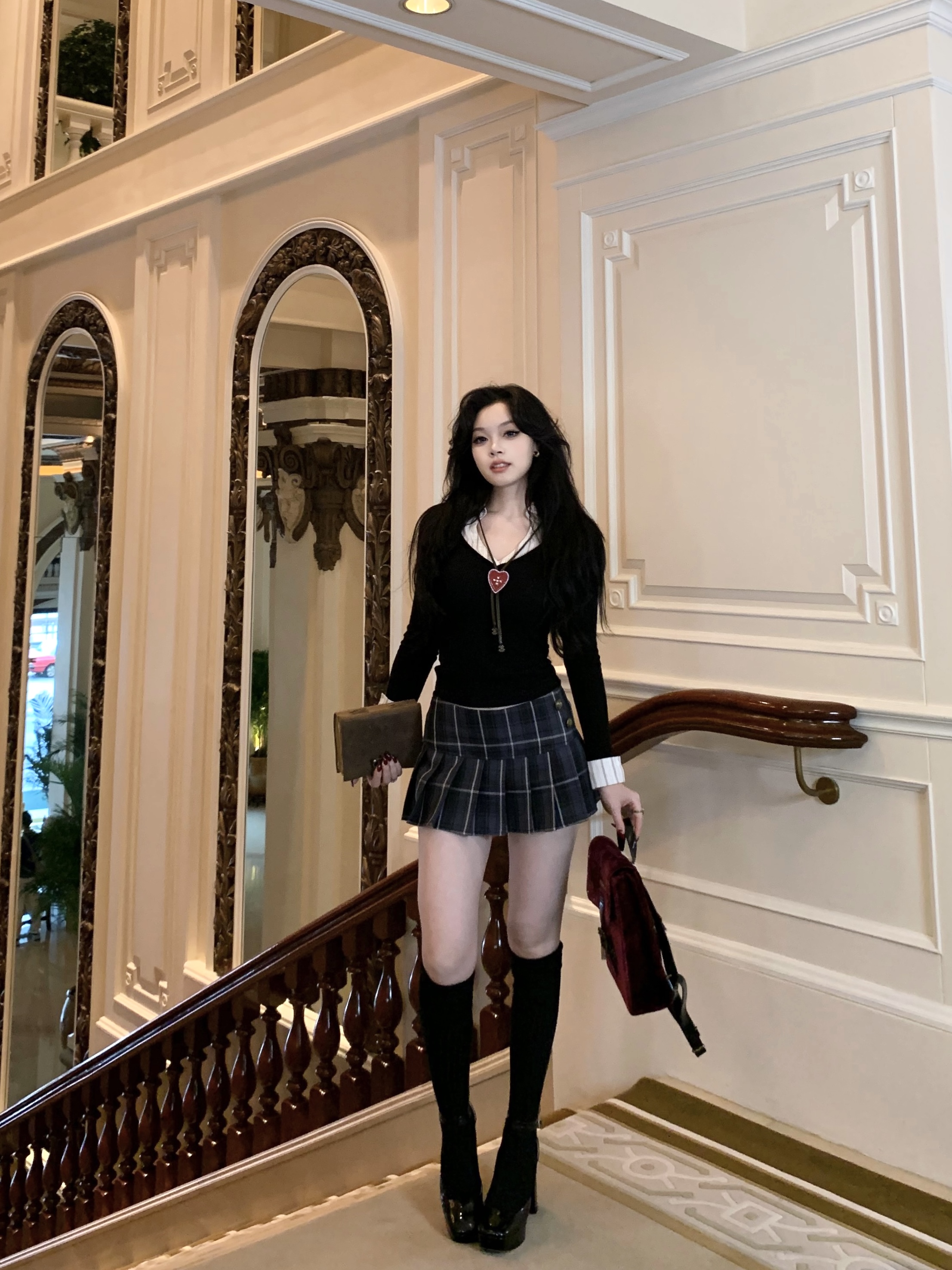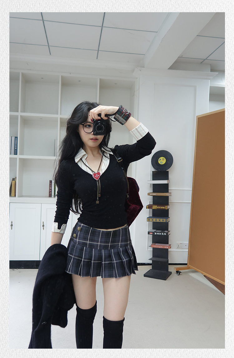 Popchee|Magic Top Student|A Versatile Pleated Skirt in Two Colors! the Skirt Length Is Designed to Prevent Exposure~