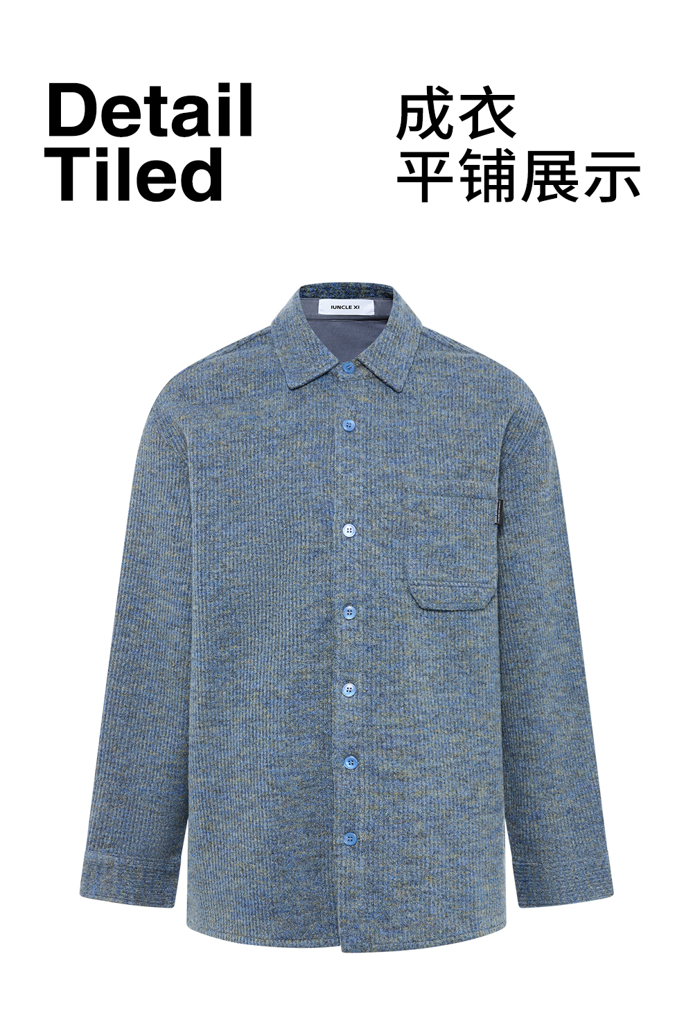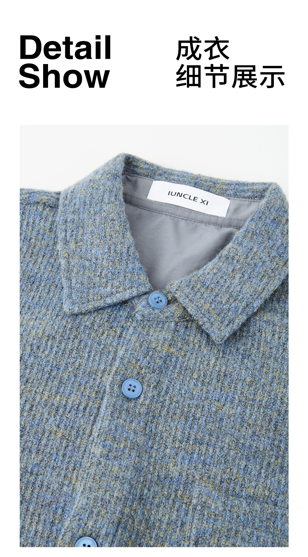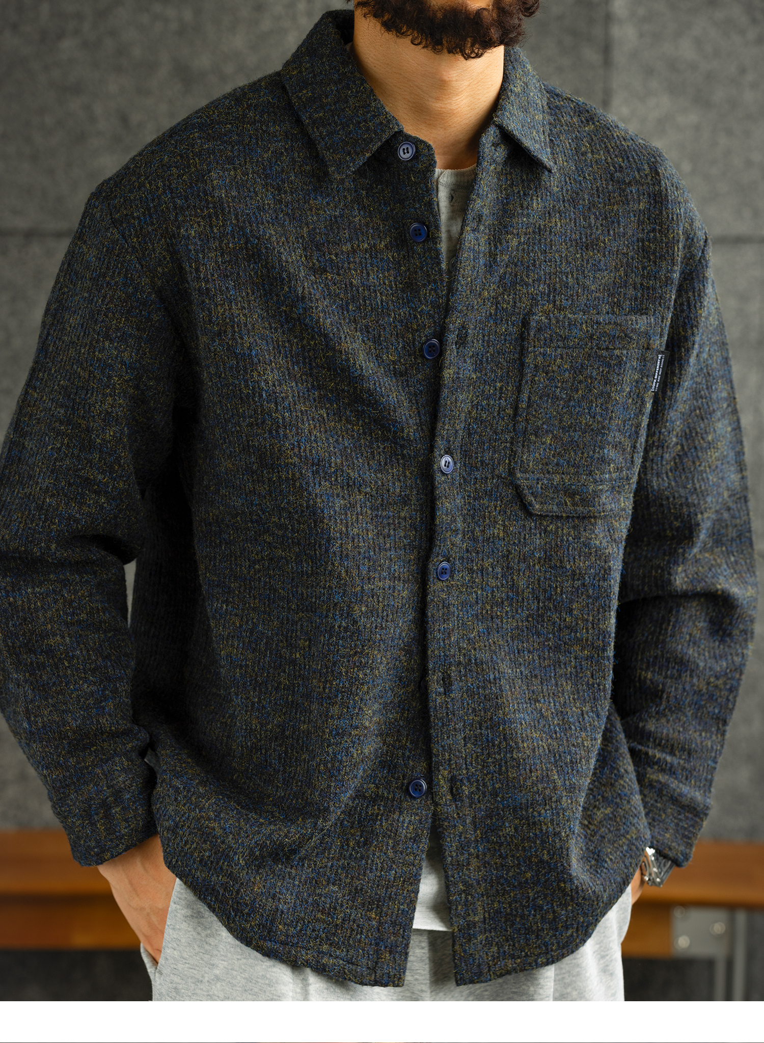 Iunclexi【Colorful Memory】Two-Tone Lapel Heavy Woolen Long-Sleeve Shirt for Men, Textured Autumn and Winter Jacket