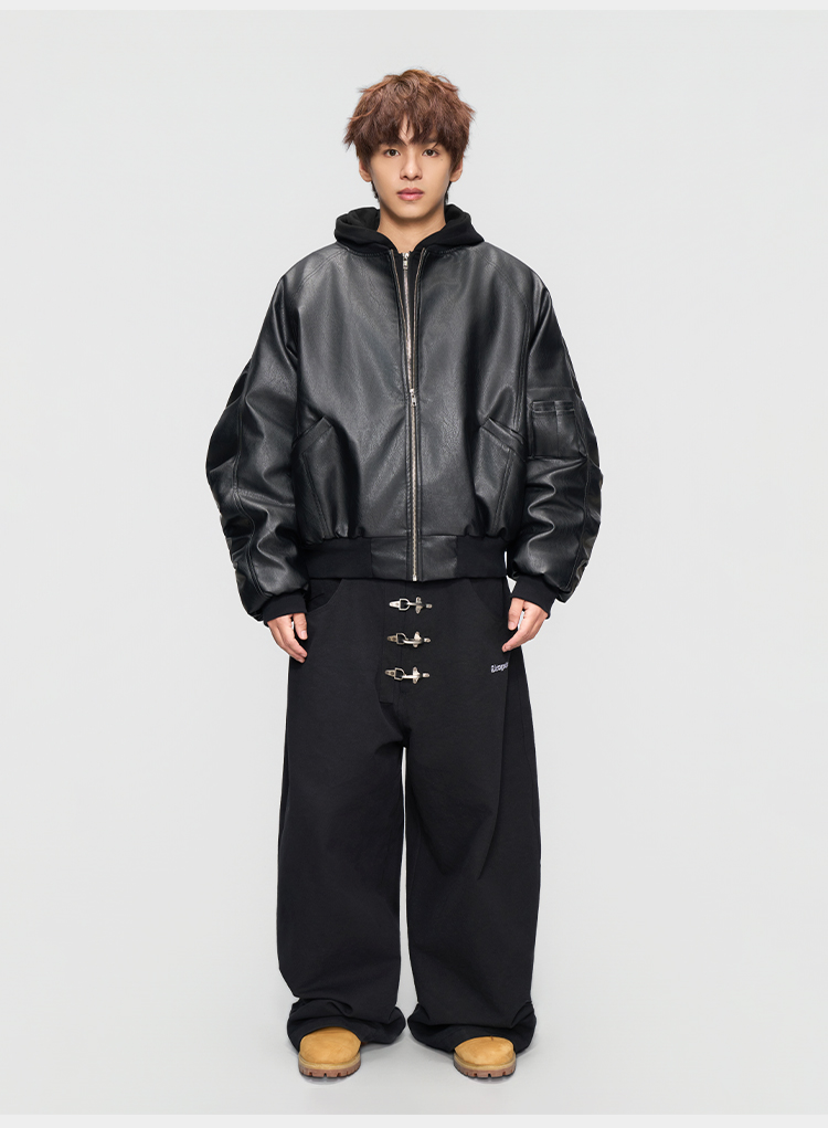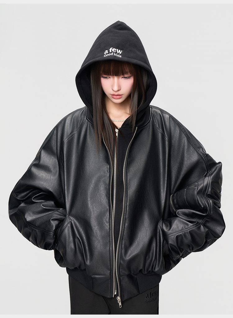 Afgk25Fw Fake Two-Piece Leather Jacket Ma1 Pilot Quilted Cotton Jacket Autumn and Winter American Style Pu Leather Thickened Cotton Coat