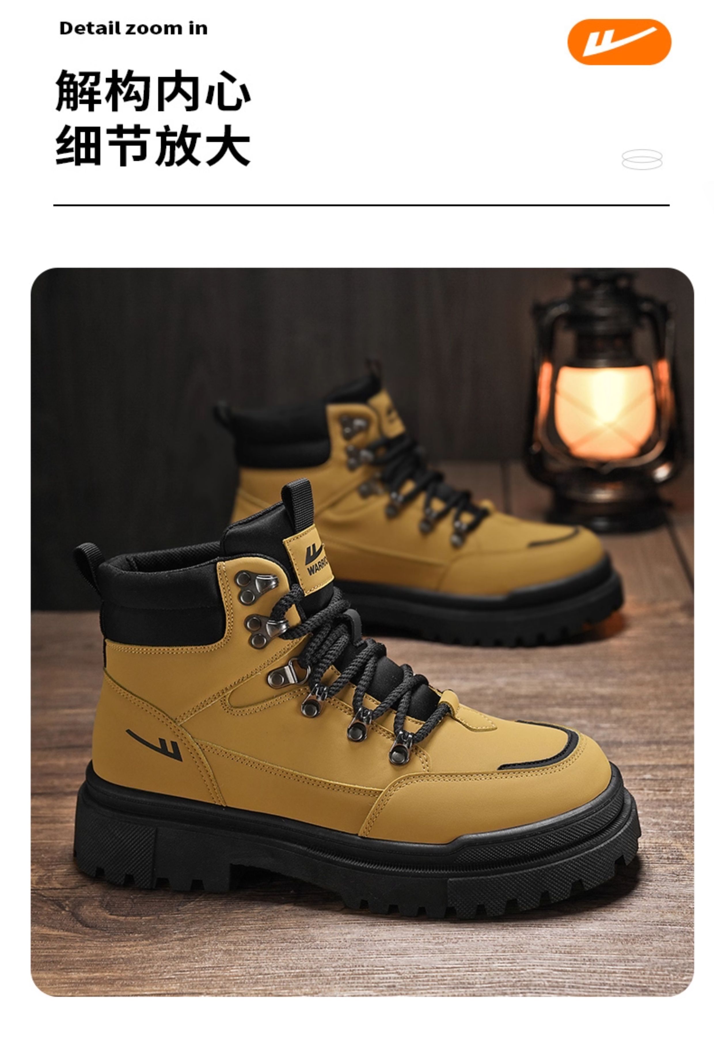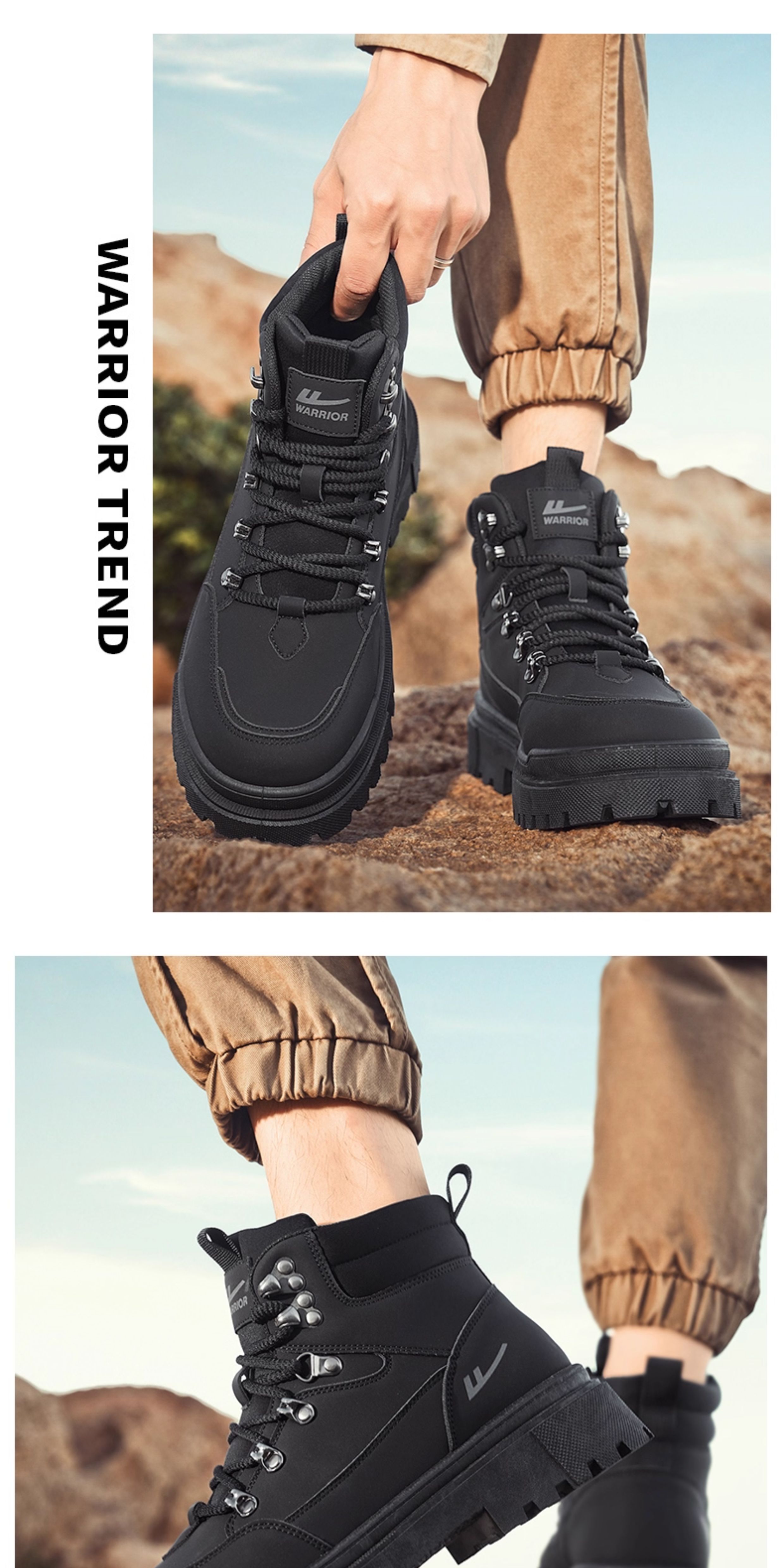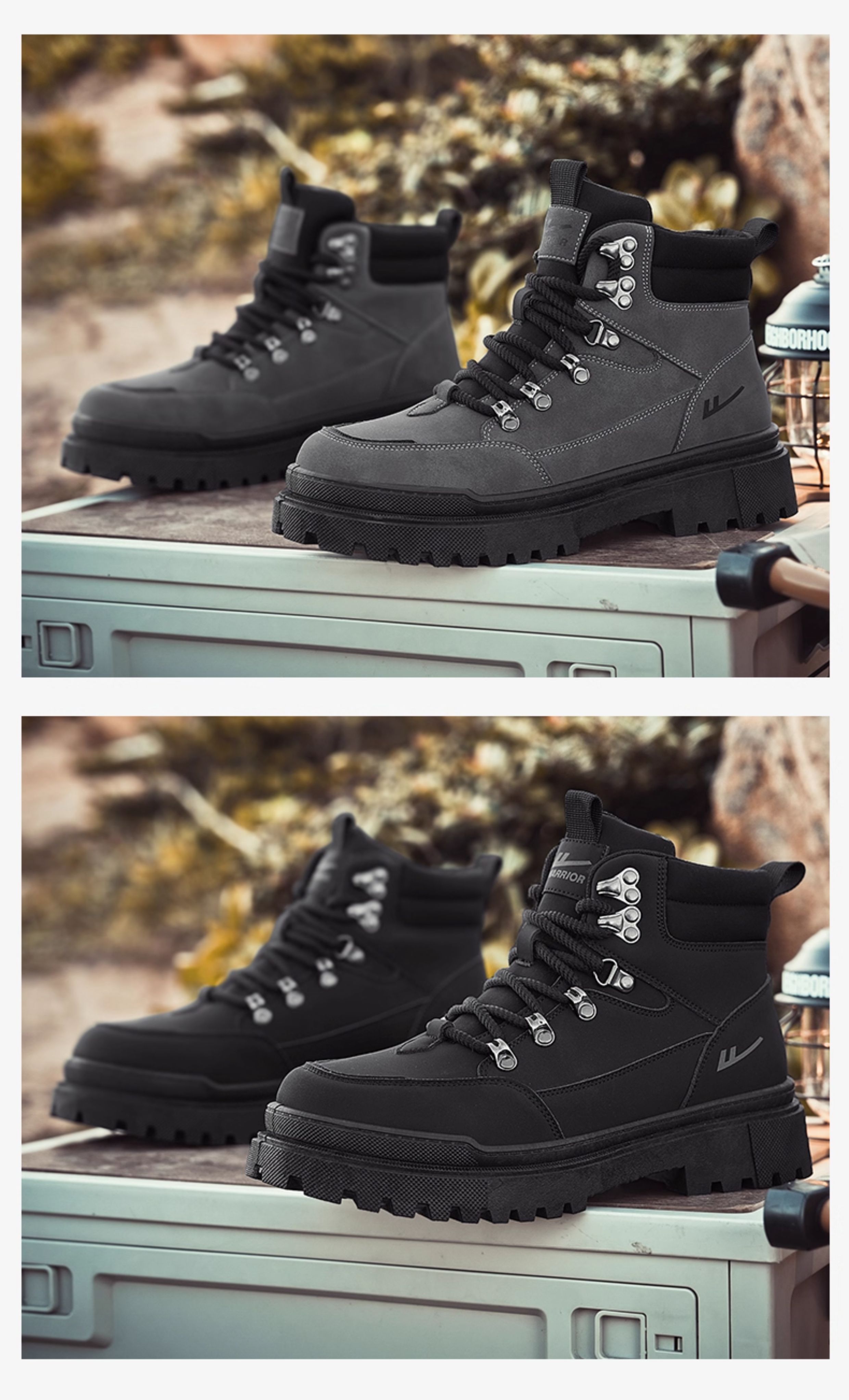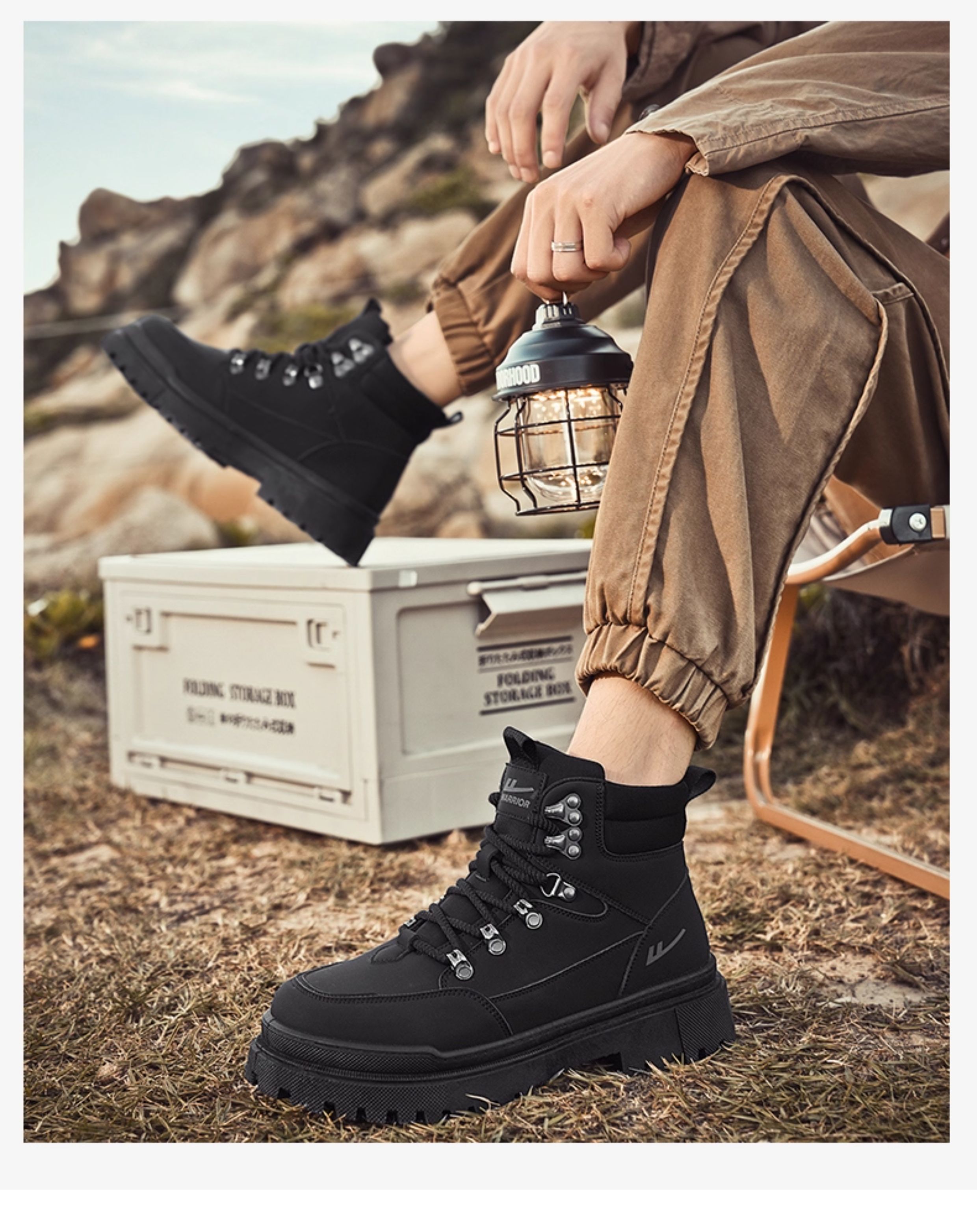 Pull-Back High-Top Men's Shoes, Winter Fleece-Lined Cotton Shoes, Black Non-Slip Hiking Shoes, Sports Thick-Soled Work Safety Boots, Martin Boots