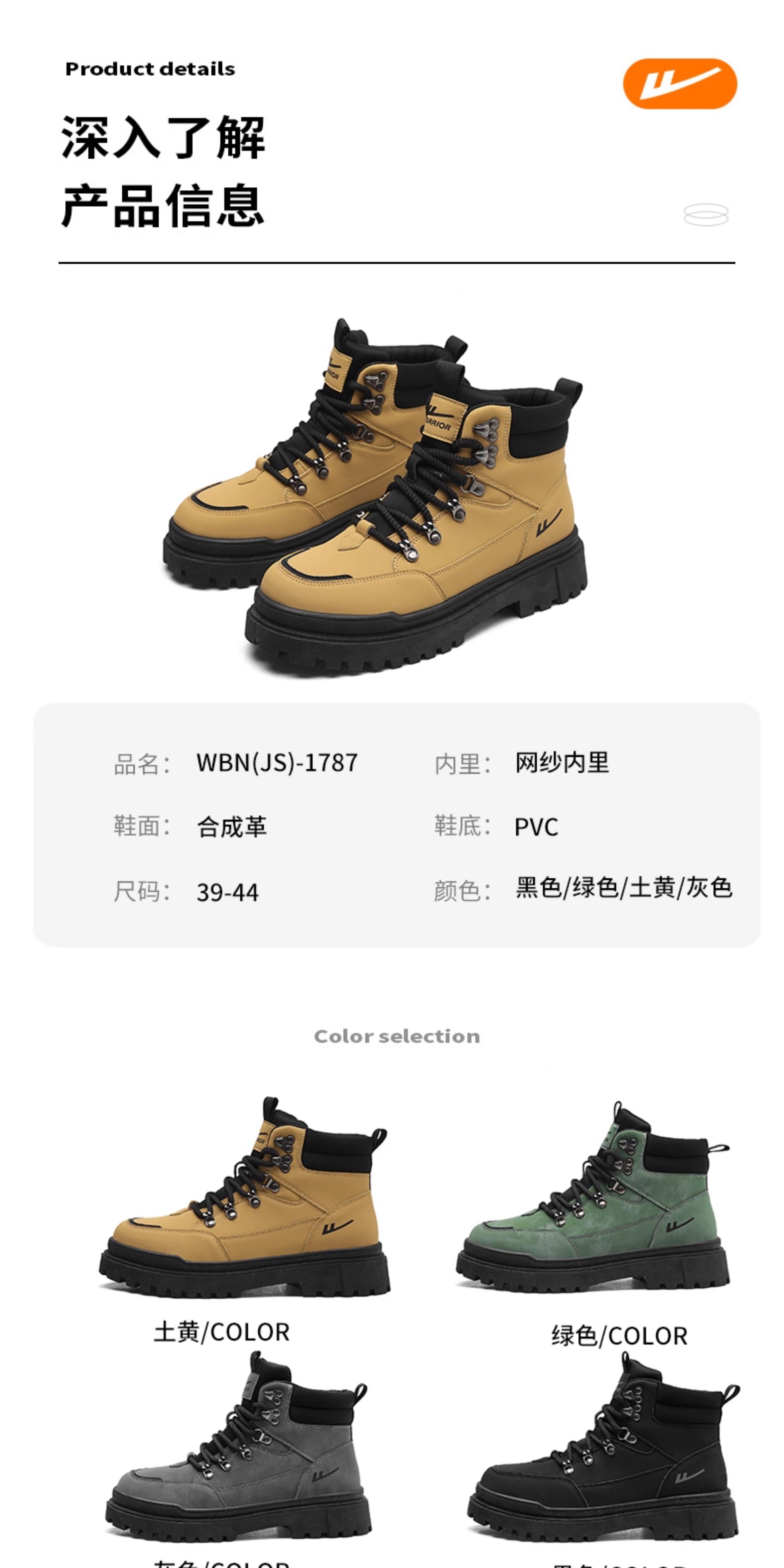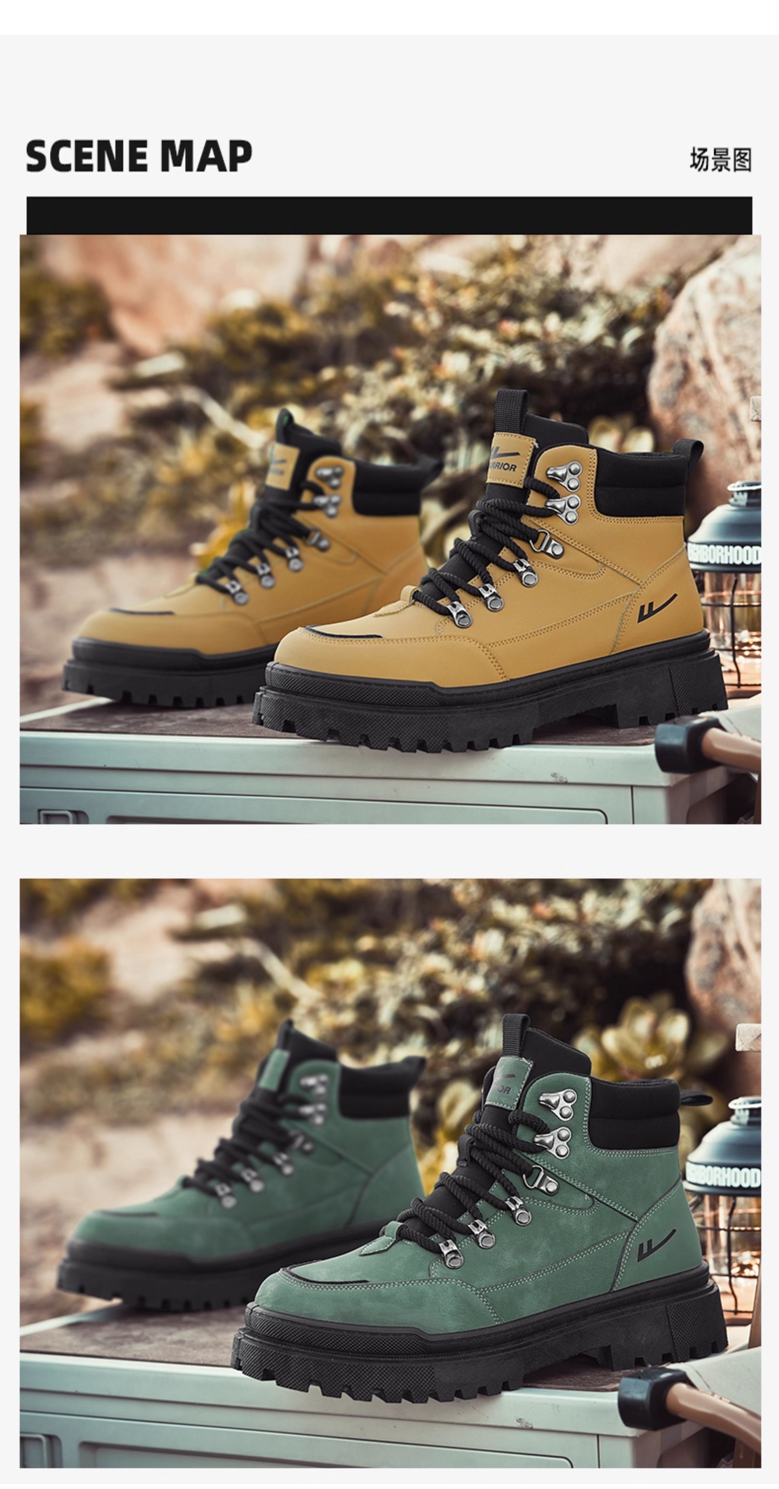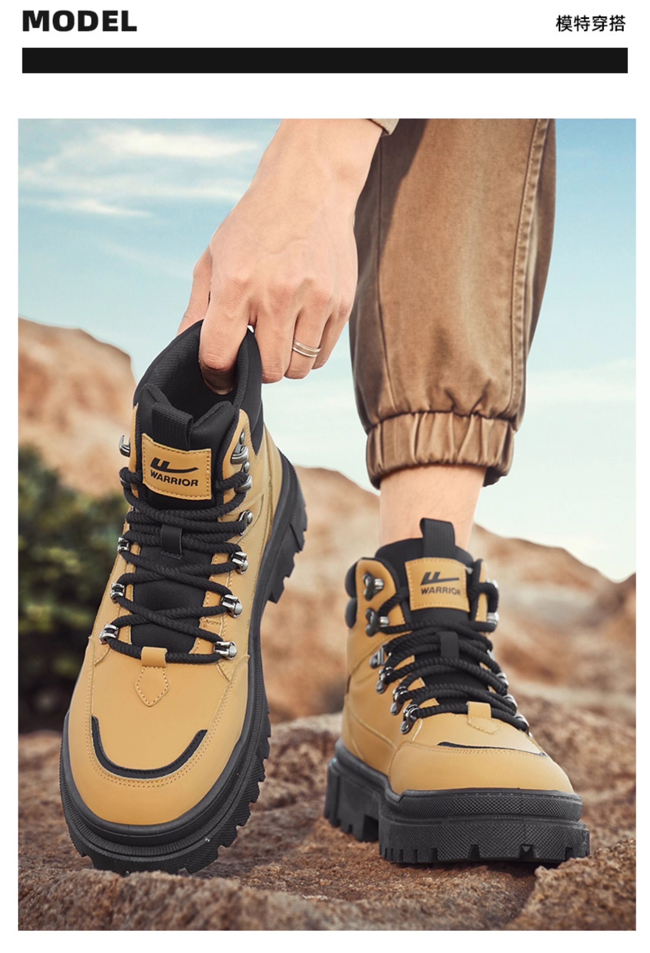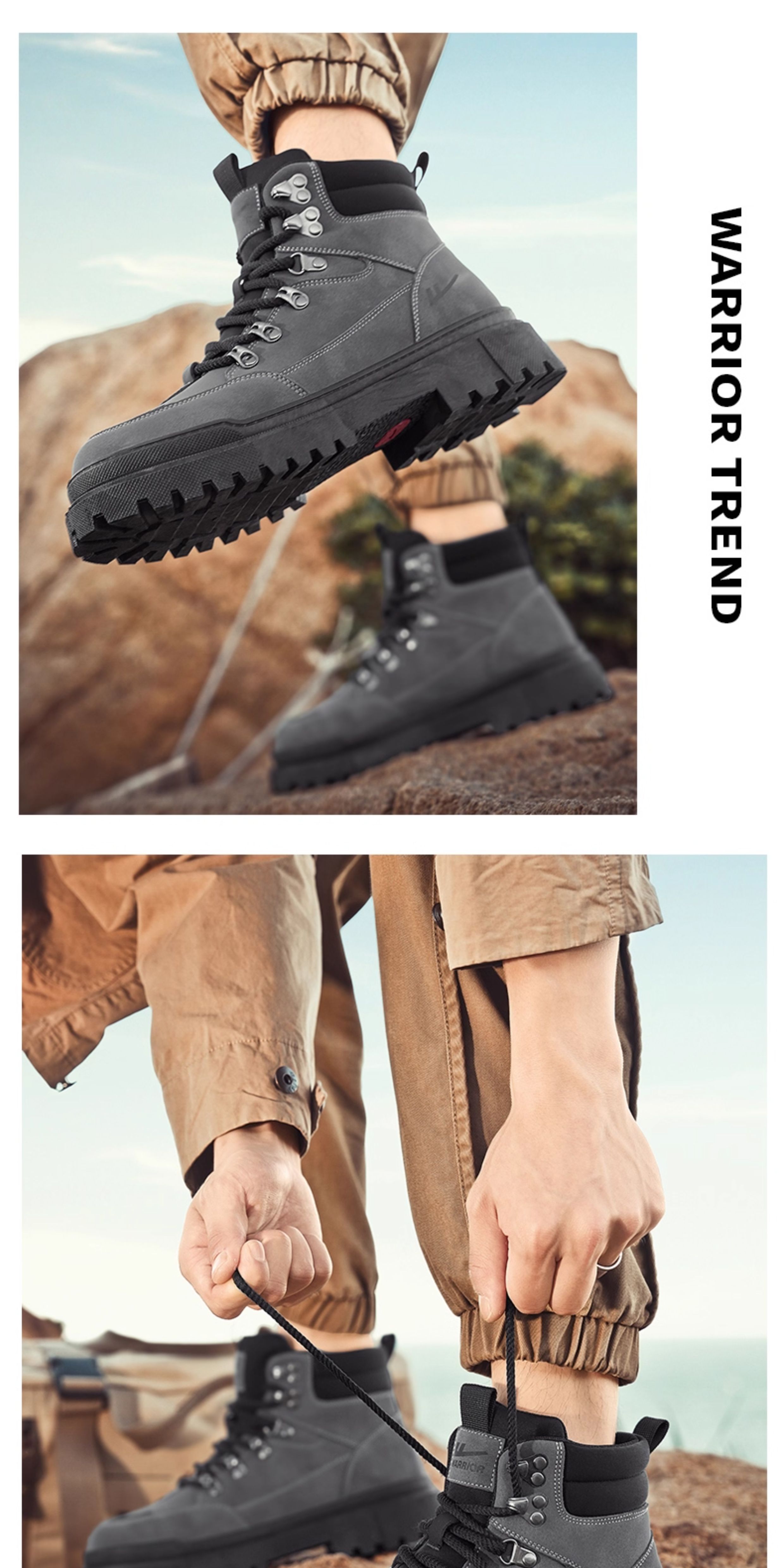 Pull-Back High-Top Men's Shoes, Winter Fleece-Lined Cotton Shoes, Black Non-Slip Hiking Shoes, Sports Thick-Soled Work Safety Boots, Martin Boots