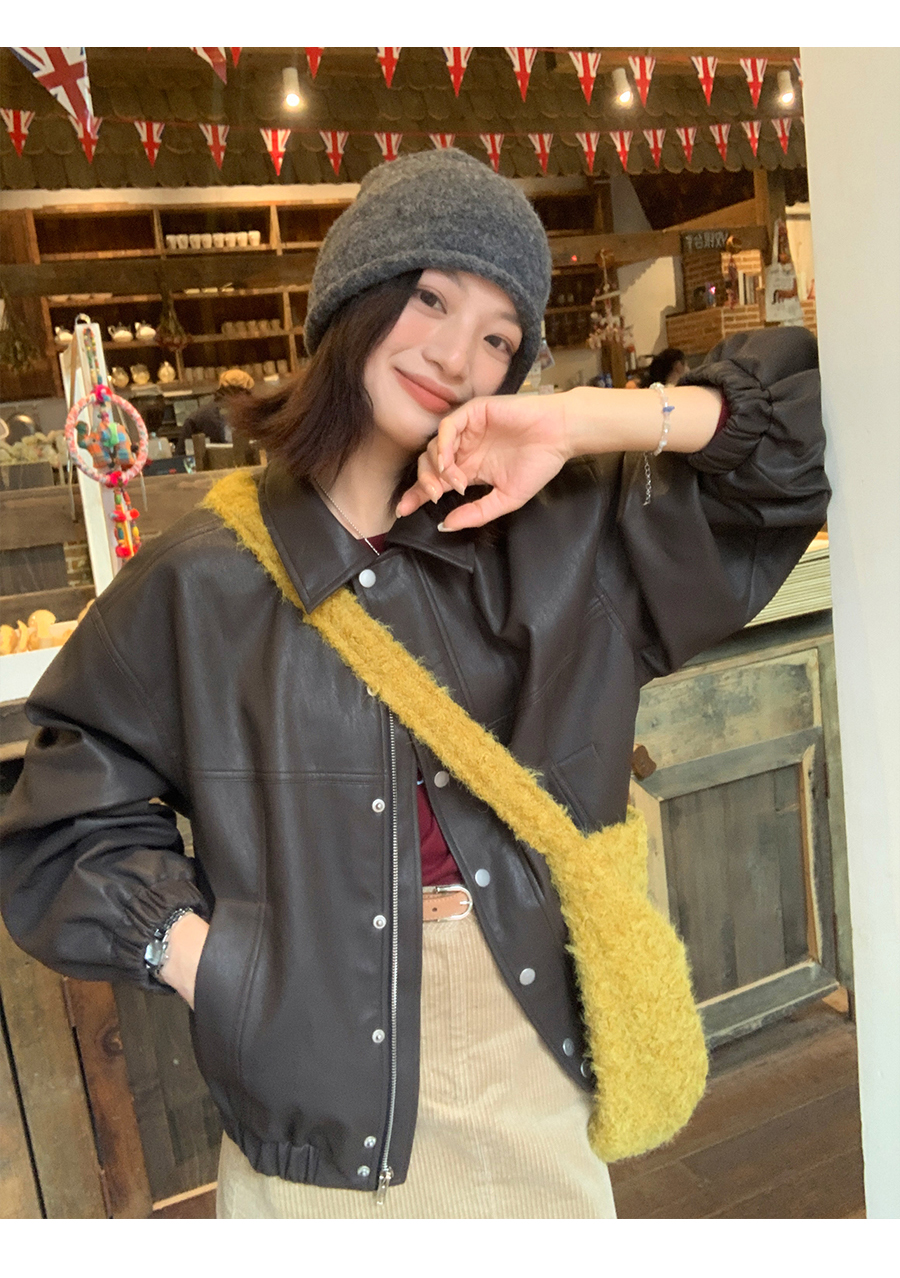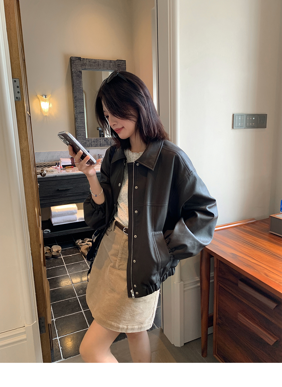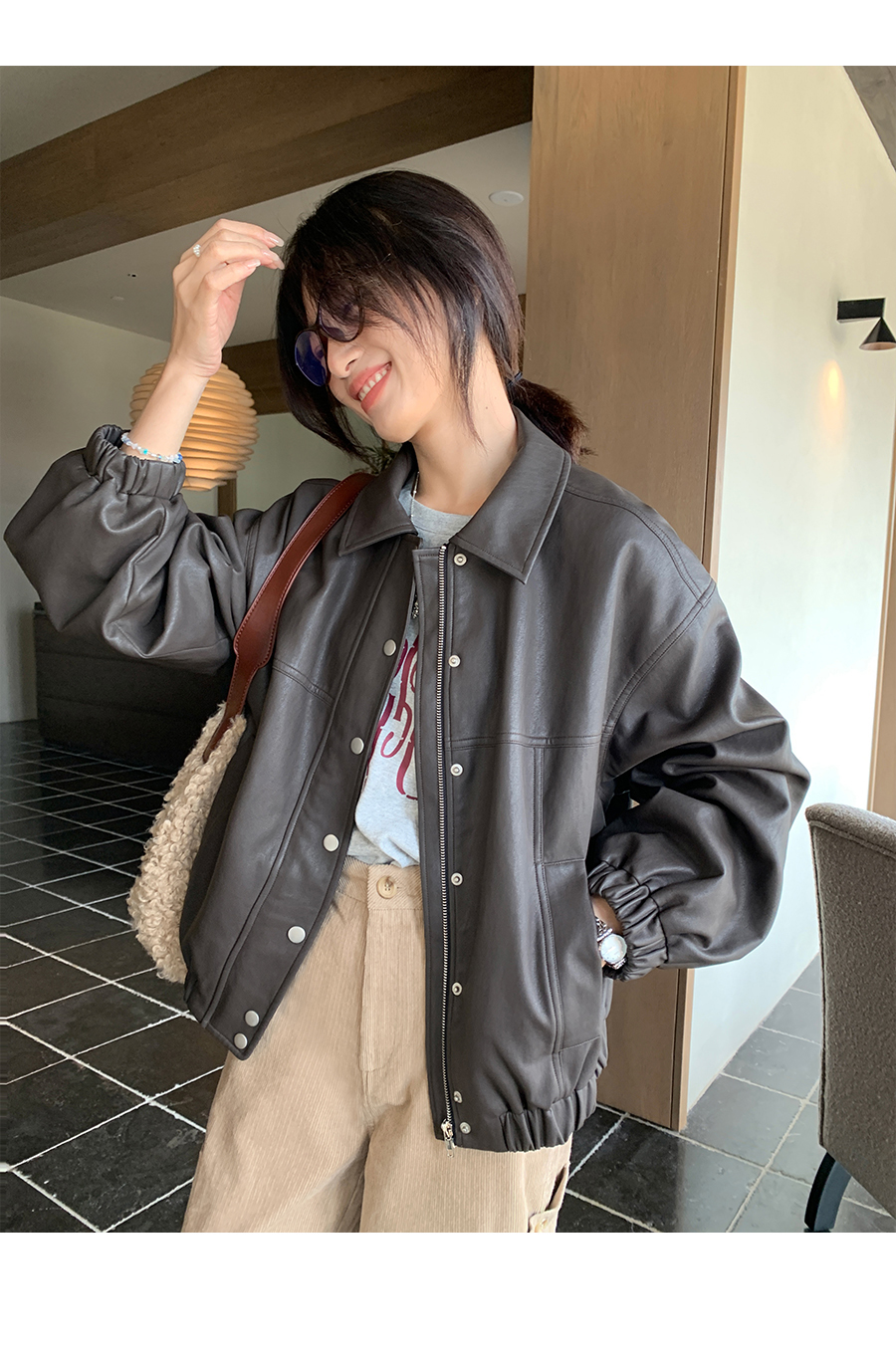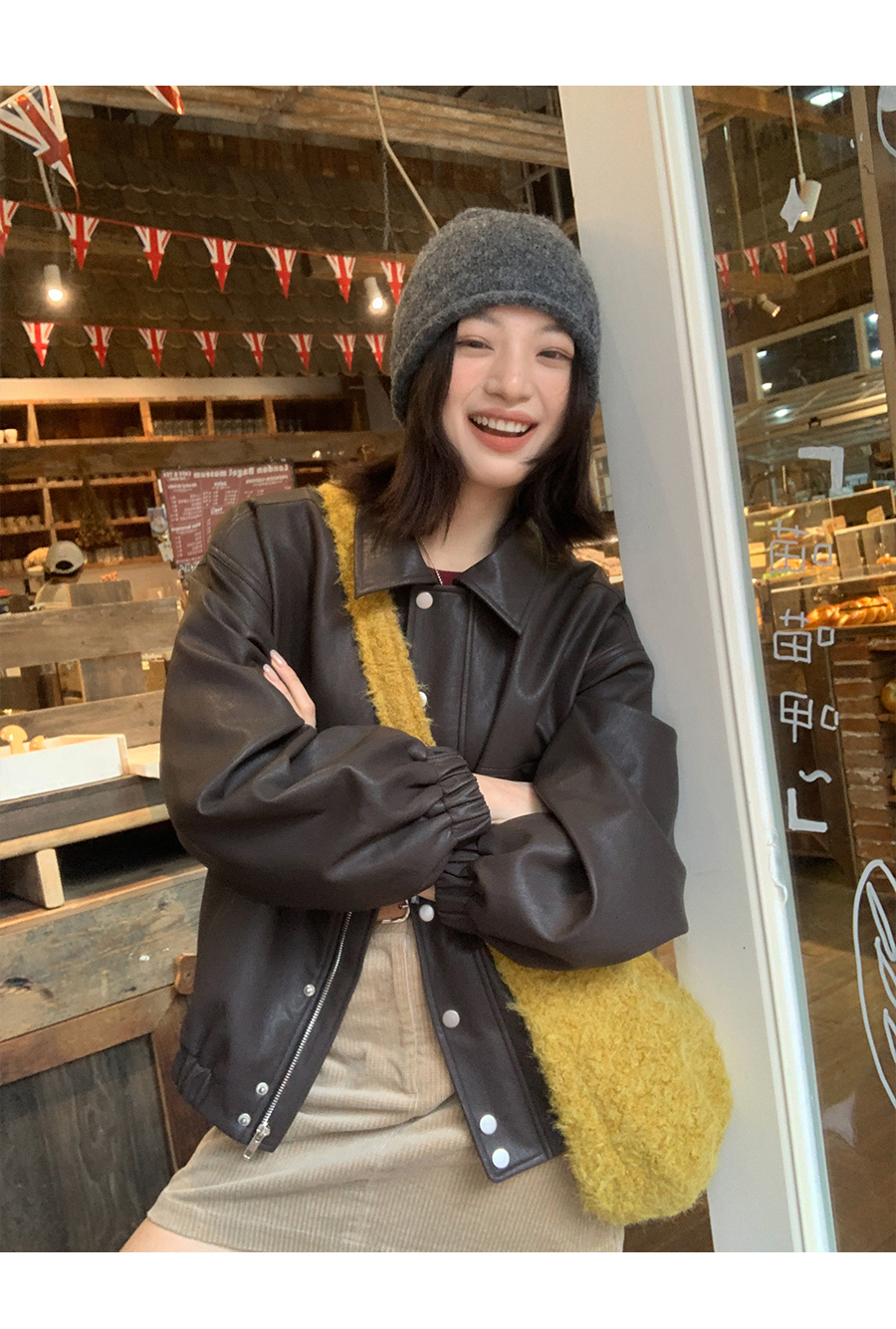 Sisilyon Special Black Leather Jacket ~ Korean Style Retro Soft Light Leather Jacket for Women, Autumn and Winter, Petite Casual Jacket