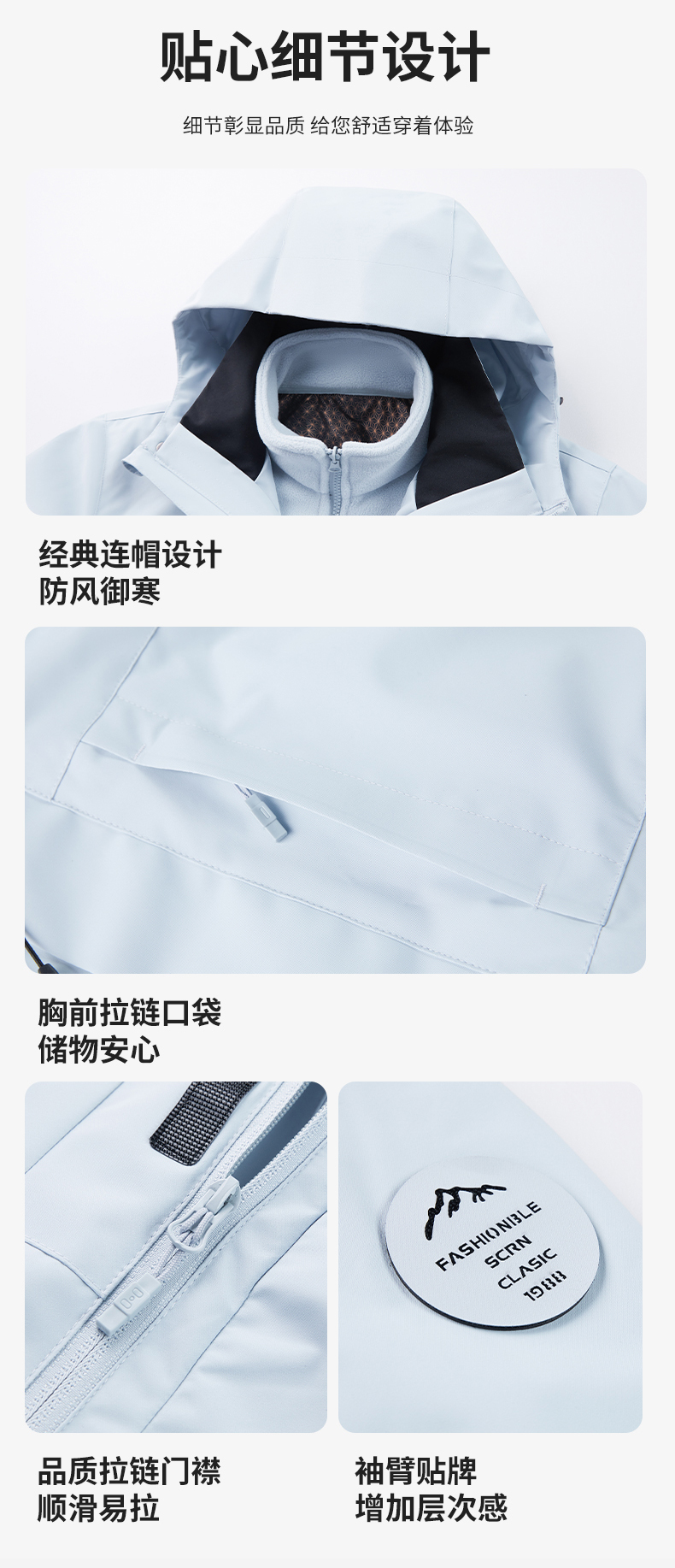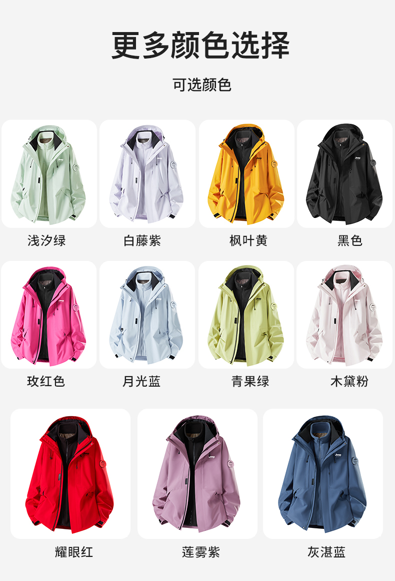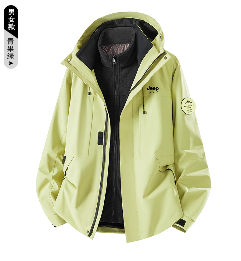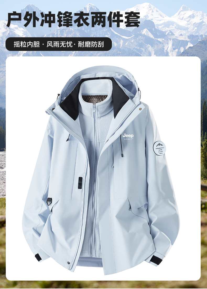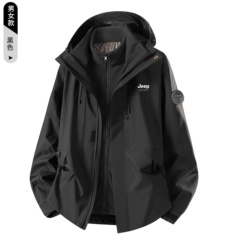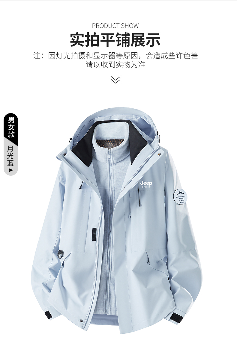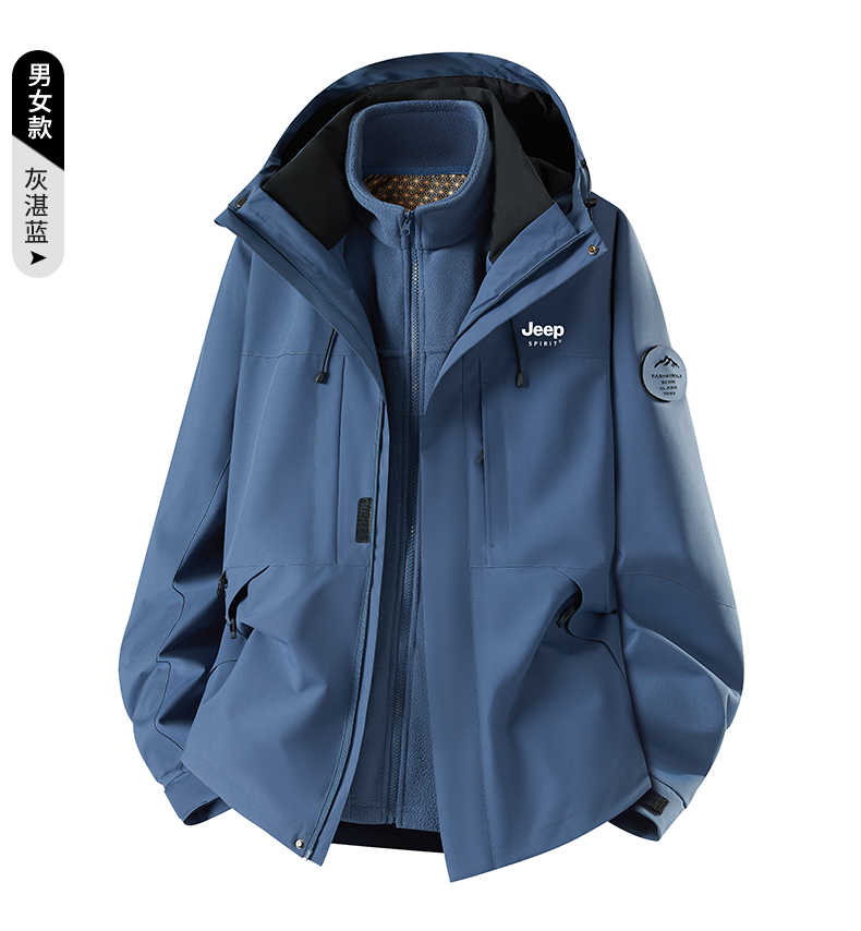 Jeep Blue Jacket for Men and Women 2025 New Autumn and Winter Outdoor Three-In-One Windproof Thickened Mountaineering Clothing